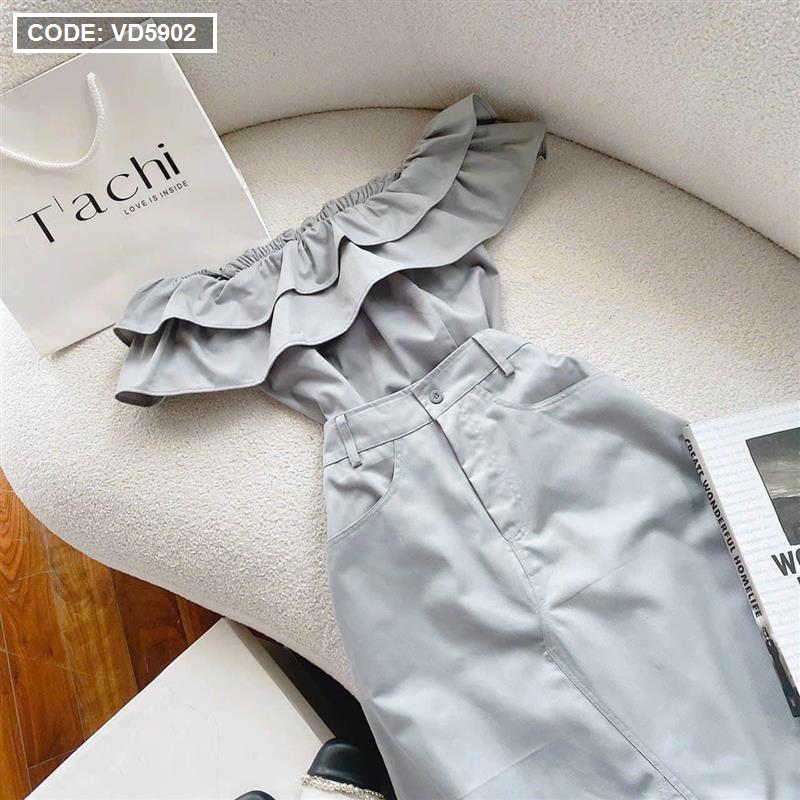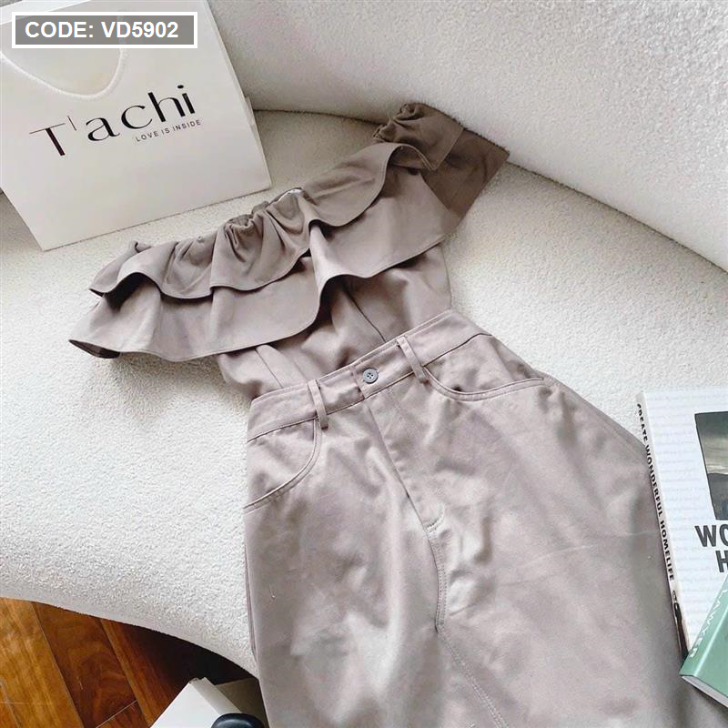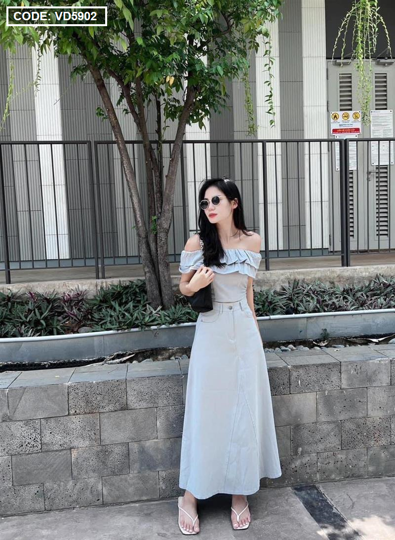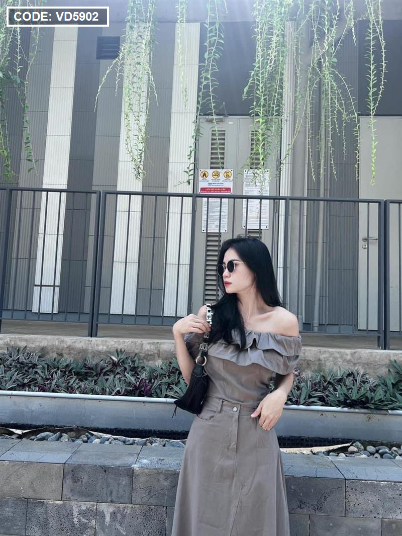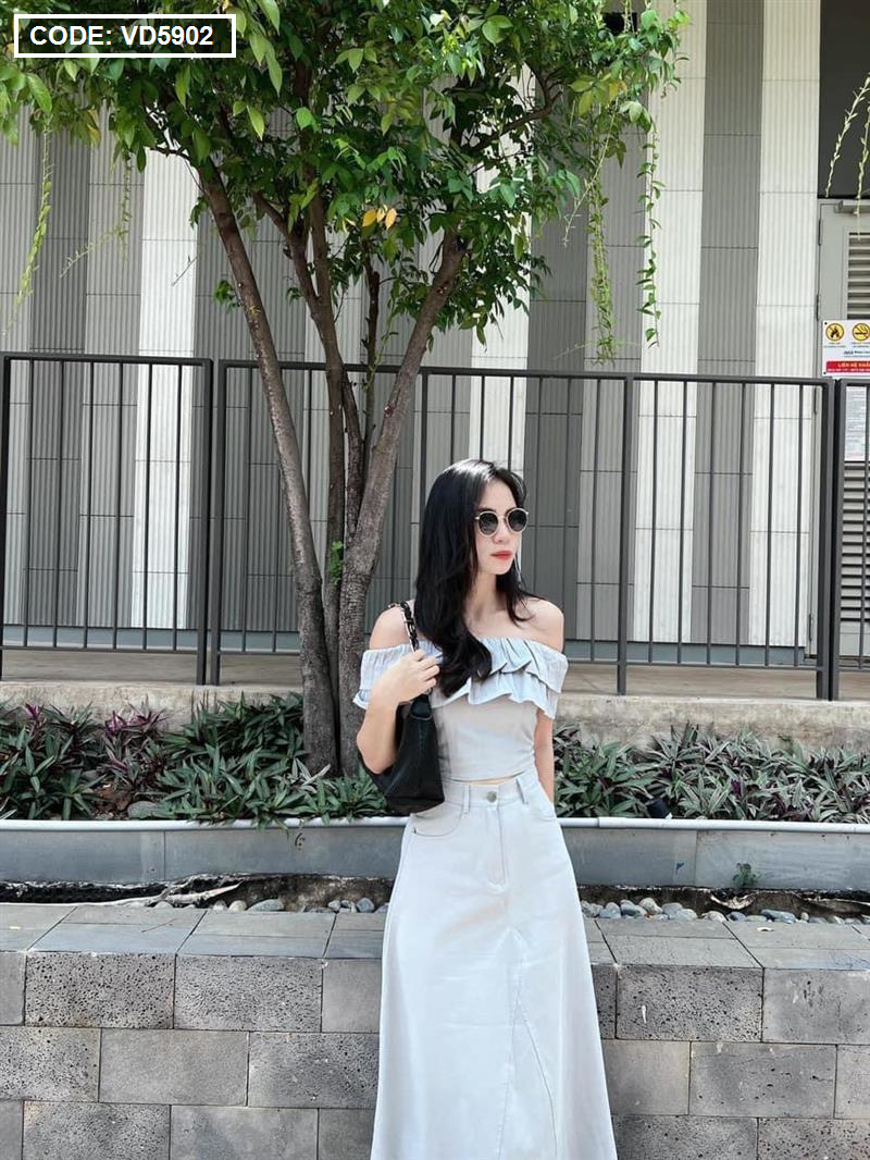 Chuyên sỉ sét crop kaki bèo trễ vai + chân váy midi kaki