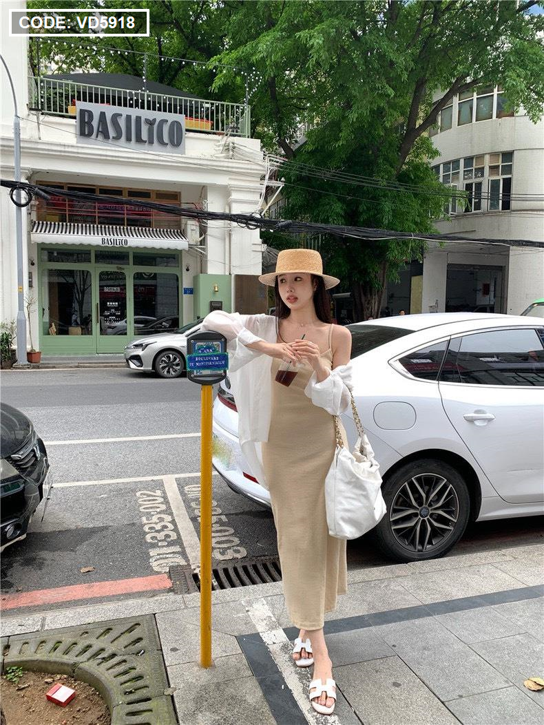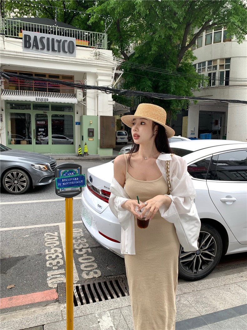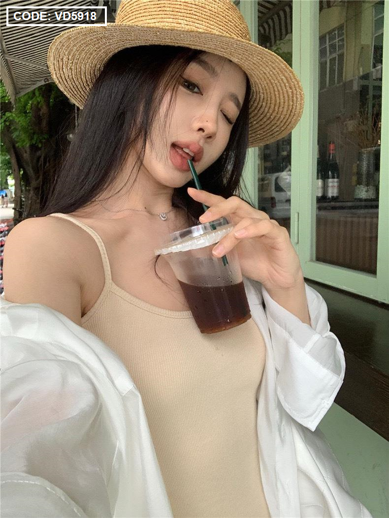 Chuyên sỉ sét sơ mi đầm 2 dây nude