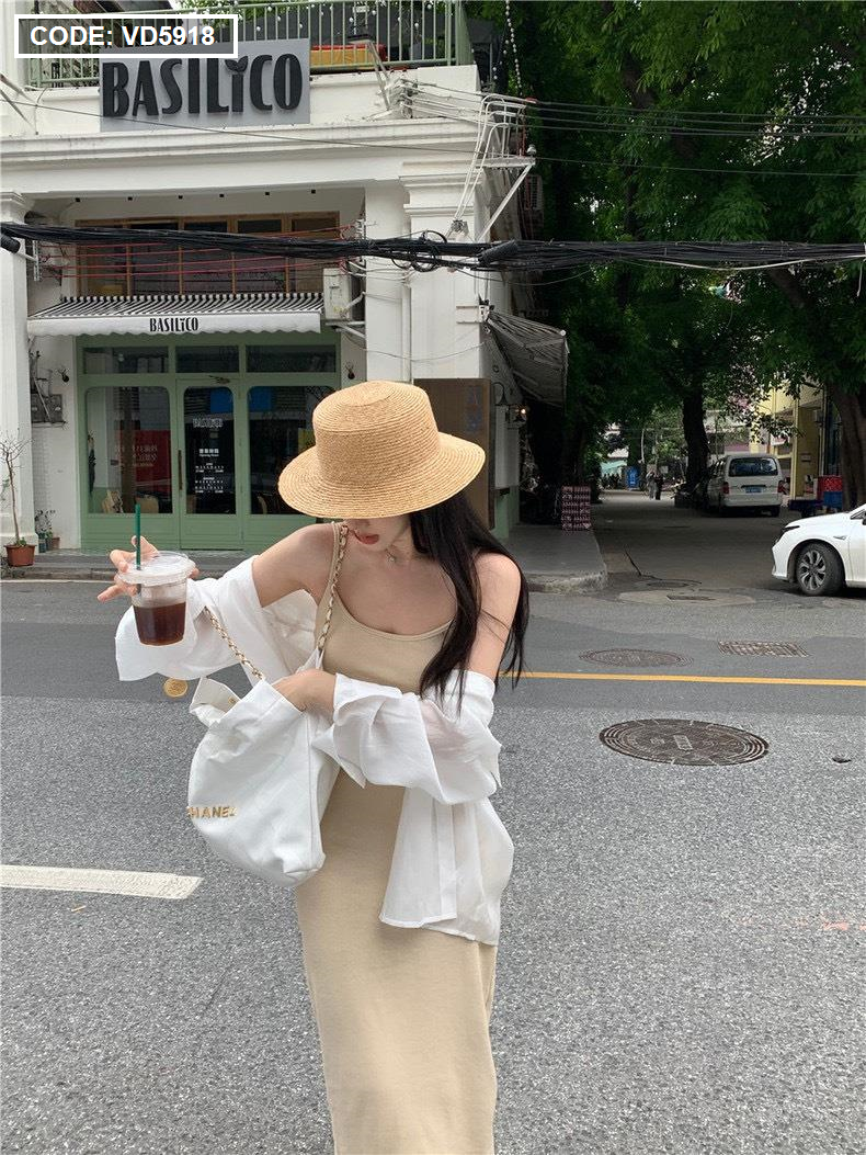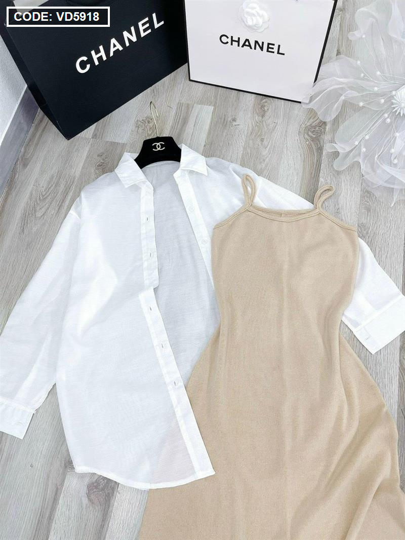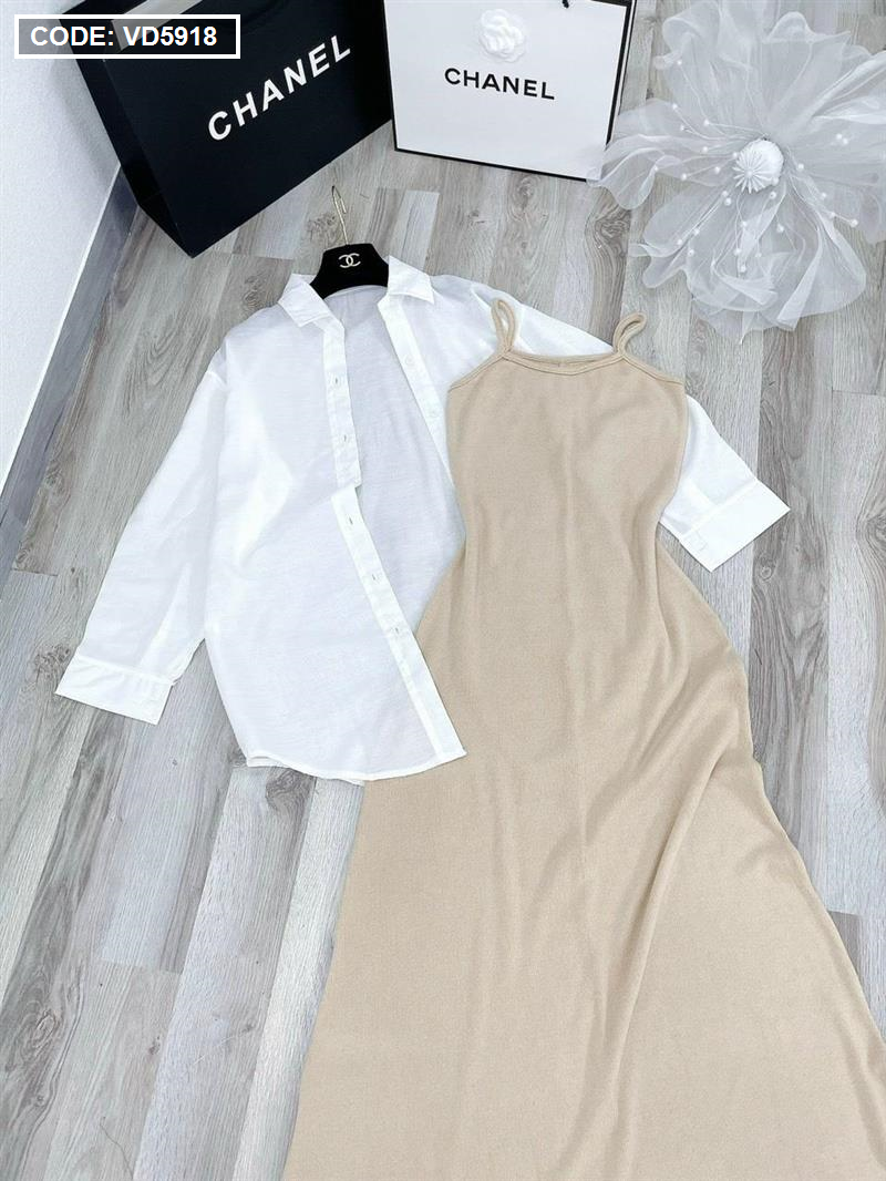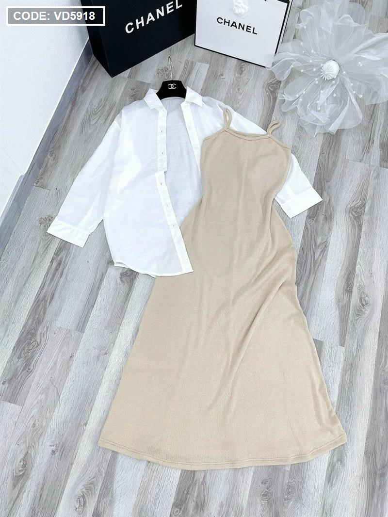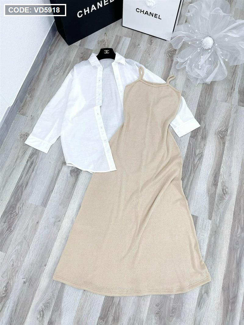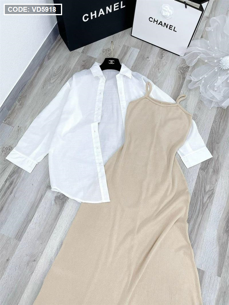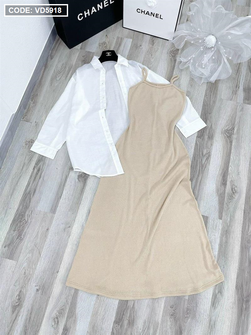 Sét sơ mi đầm 2 dây nude
