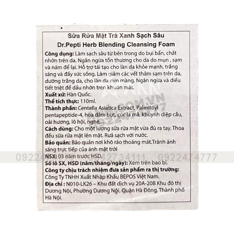 Chuyên sỉ sữa Rửa Mặt Dr.Pepti Hàn Quốc Herb Blending Chiết Xuất Trà Xanh 110ml phù hợp da dầu mụn, da nhạy cảm