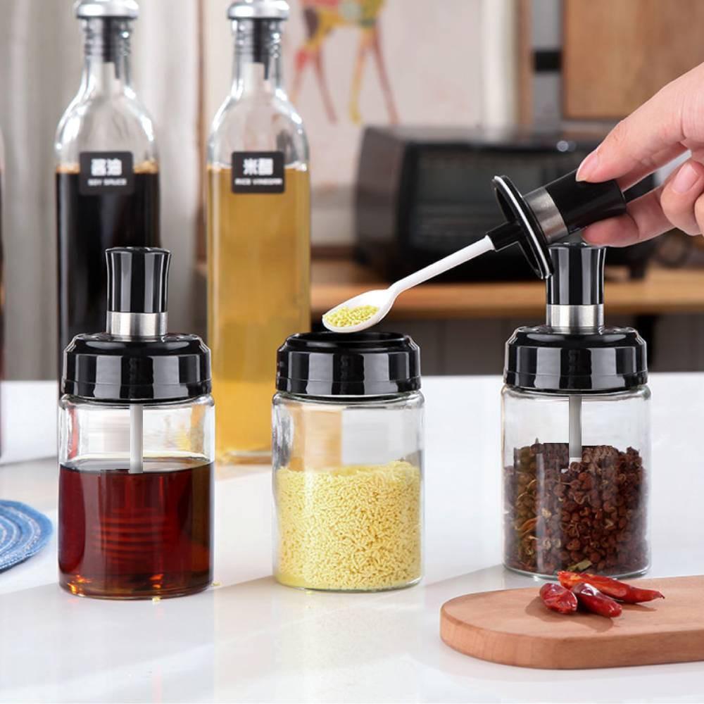 Combo 5 Hũ Đựng Gia Vị Bằng Thuỷ Tinh – Lọ Đựng Gia Vị Thuỷ Tinh Có Nắp Đậy Kèm Thìa Nhà Bếp 13x5cm