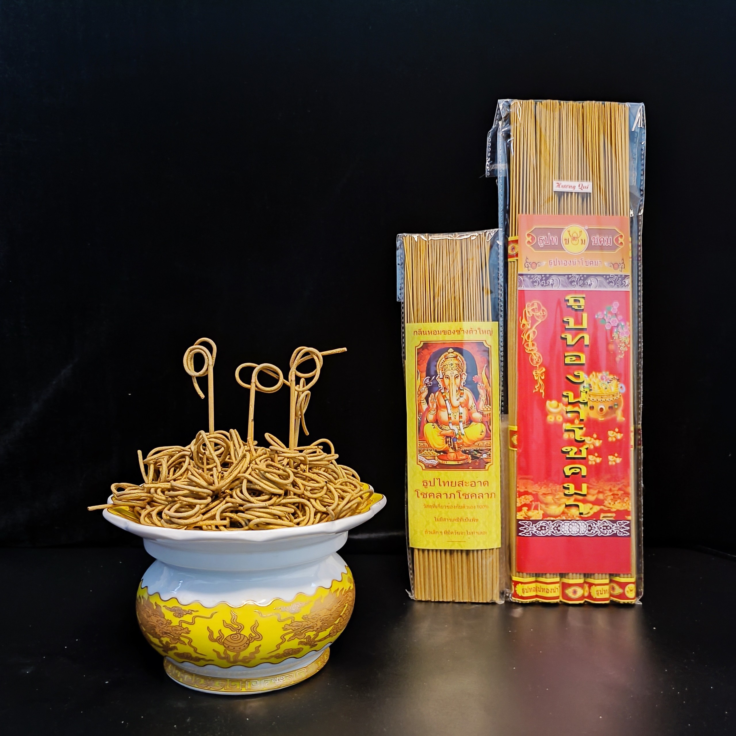 ⛩ Tàn cuốn màu vàng cứng cáp không gây bụi, rất đẹp và sạch sẽ. Nhang thần tài khi thắp xoắn lộc rất đẹp không bụi bẩn ít khói.