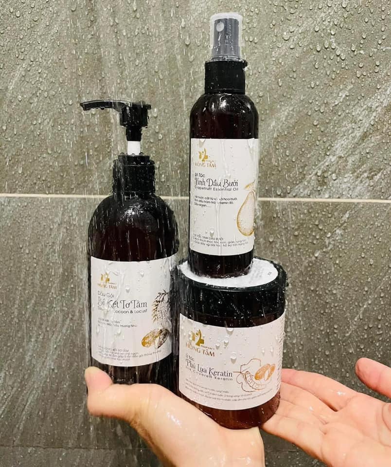 Combo Dầu Gội Xả Xịt Bồ Kết Tơ Tằm Hồng Tâm