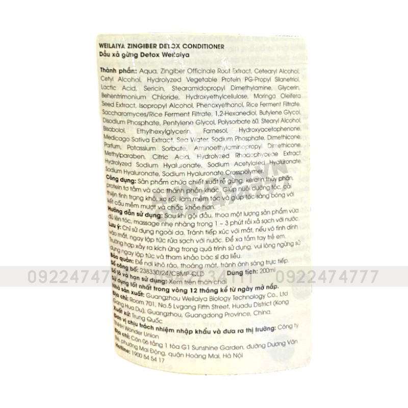 Combo Dầu Gội Xả Gừng Weilaiya Màu Xanh Zingiber Detox X2 Ginger Essence Giúp Tóc Bóng Khỏe Giảm Gãy Rụng