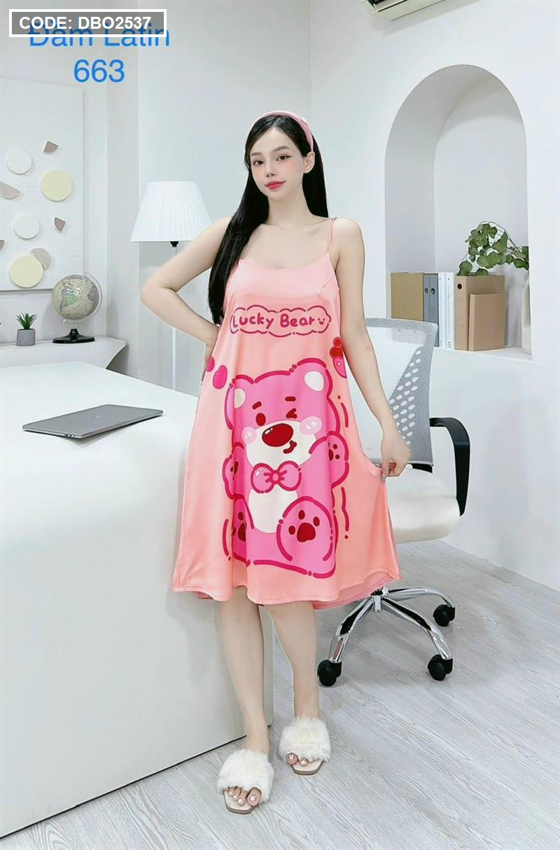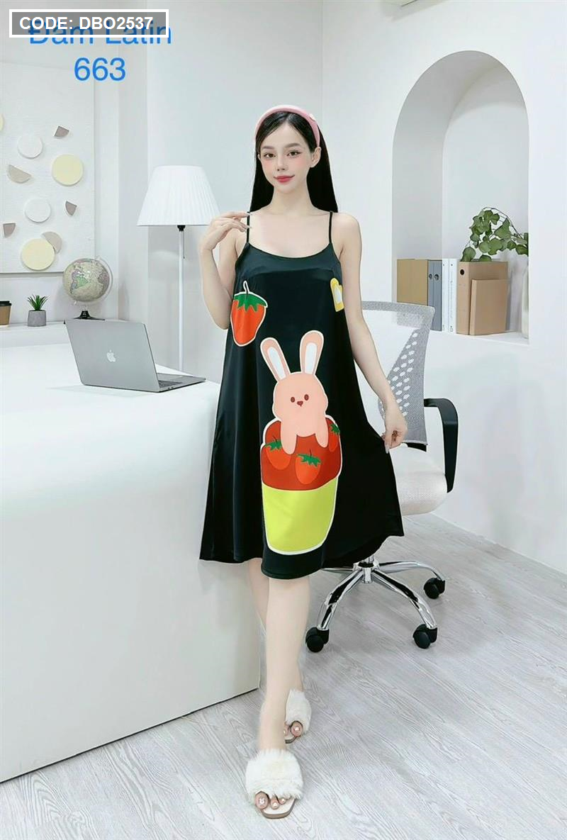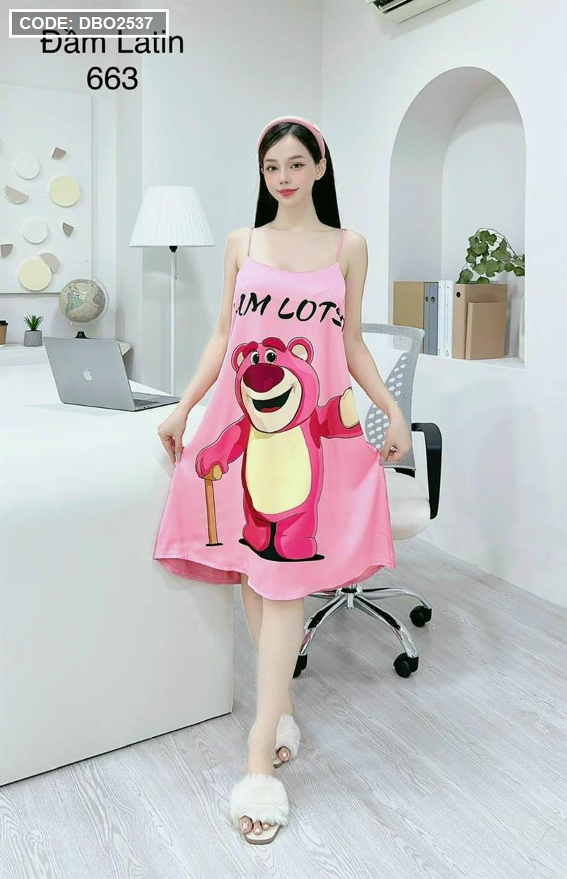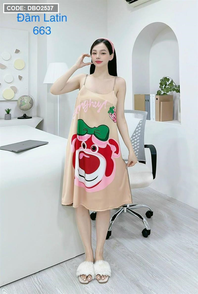 Đầm form suông 2 dây họa tiết dễ thương mặc nhà