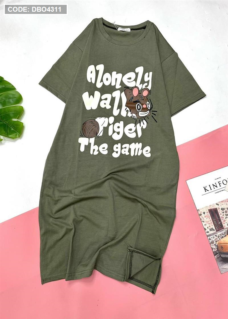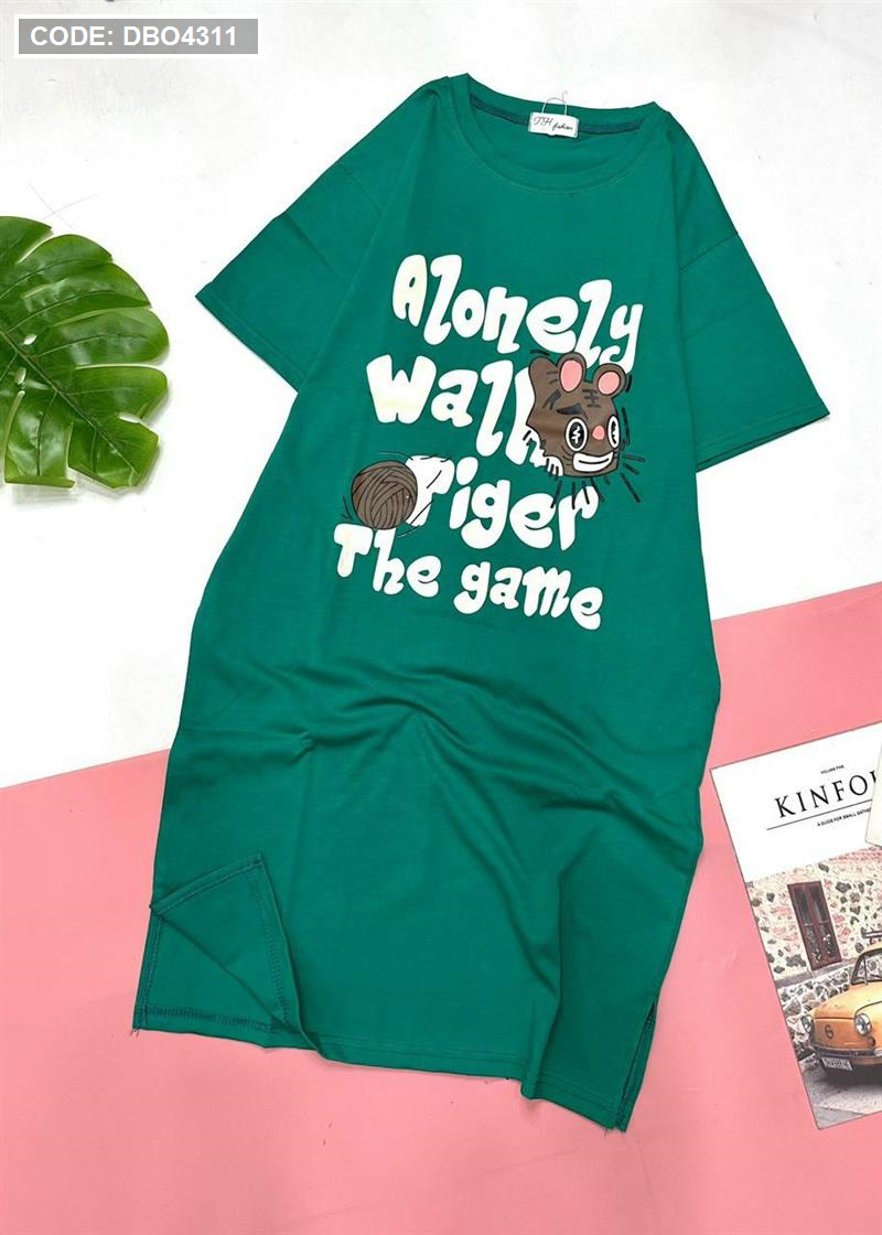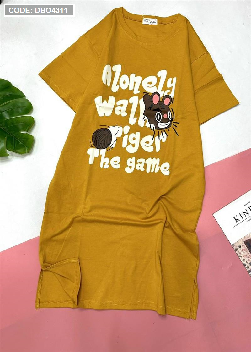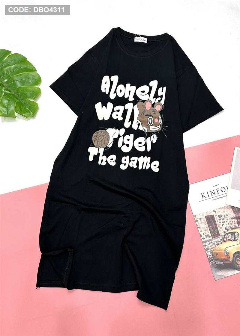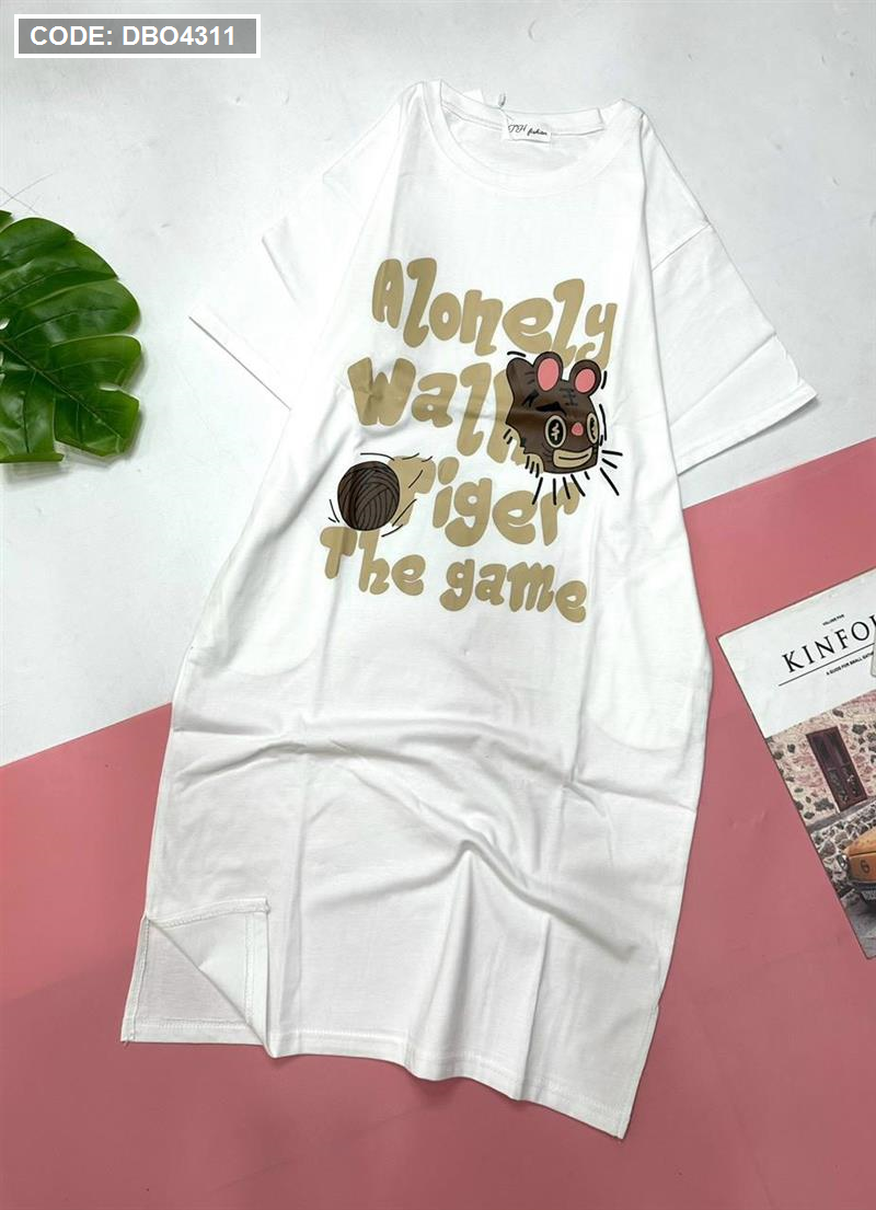 Đầm form suông tay ngắn cổ tròn in chữ