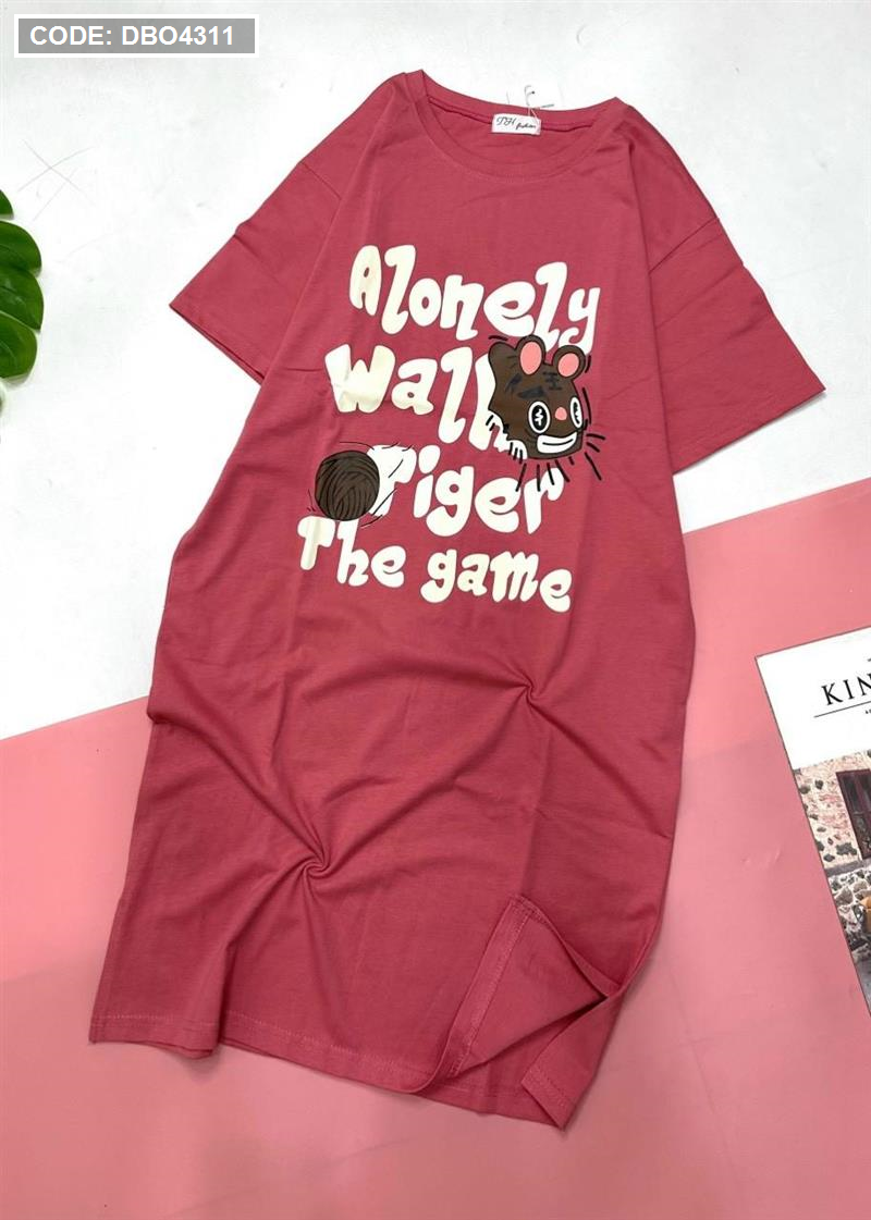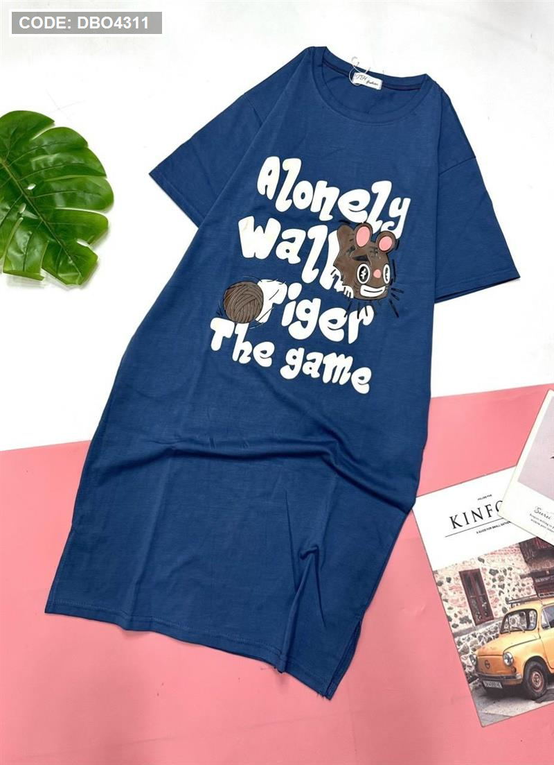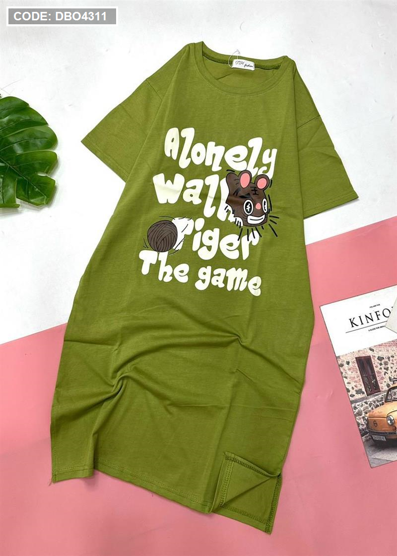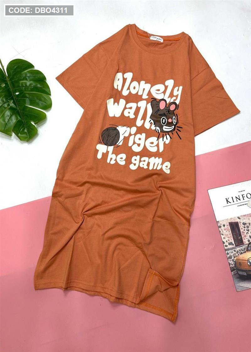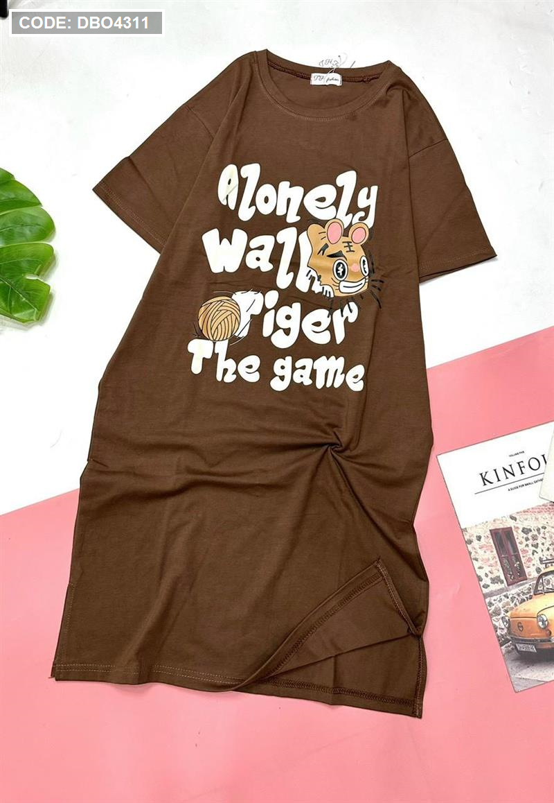 Đầm form suông tay ngắn cổ tròn in chữ