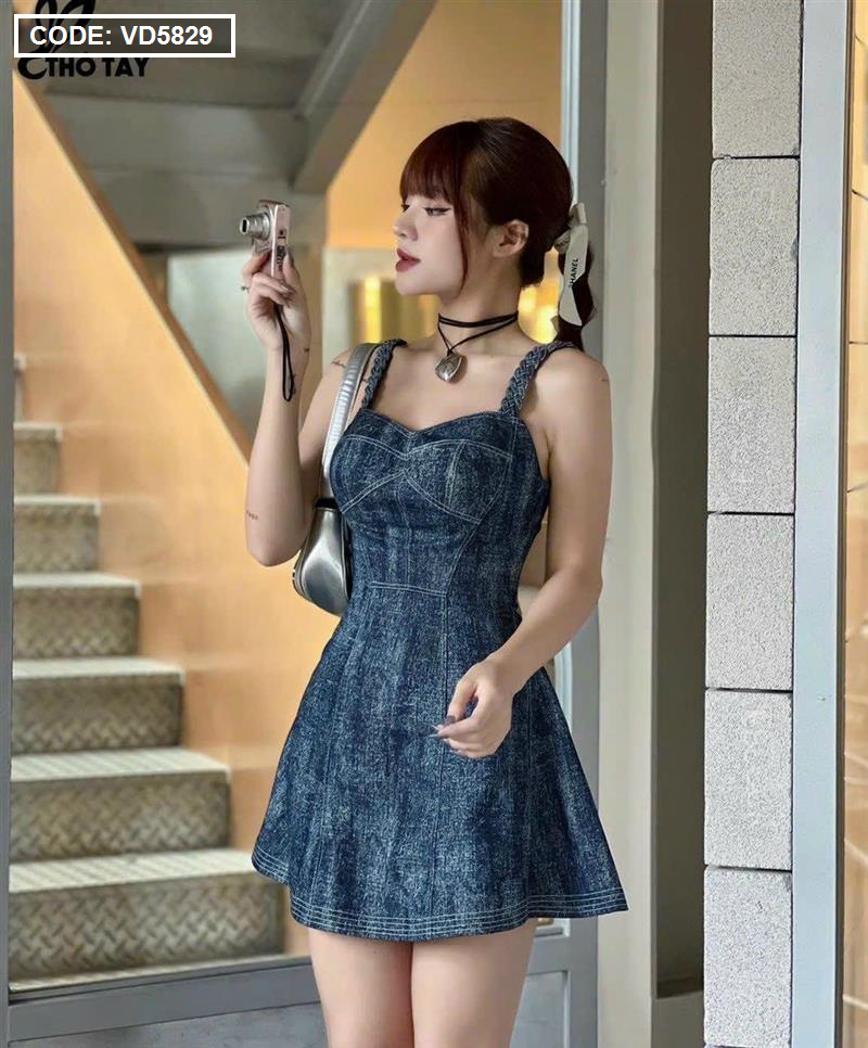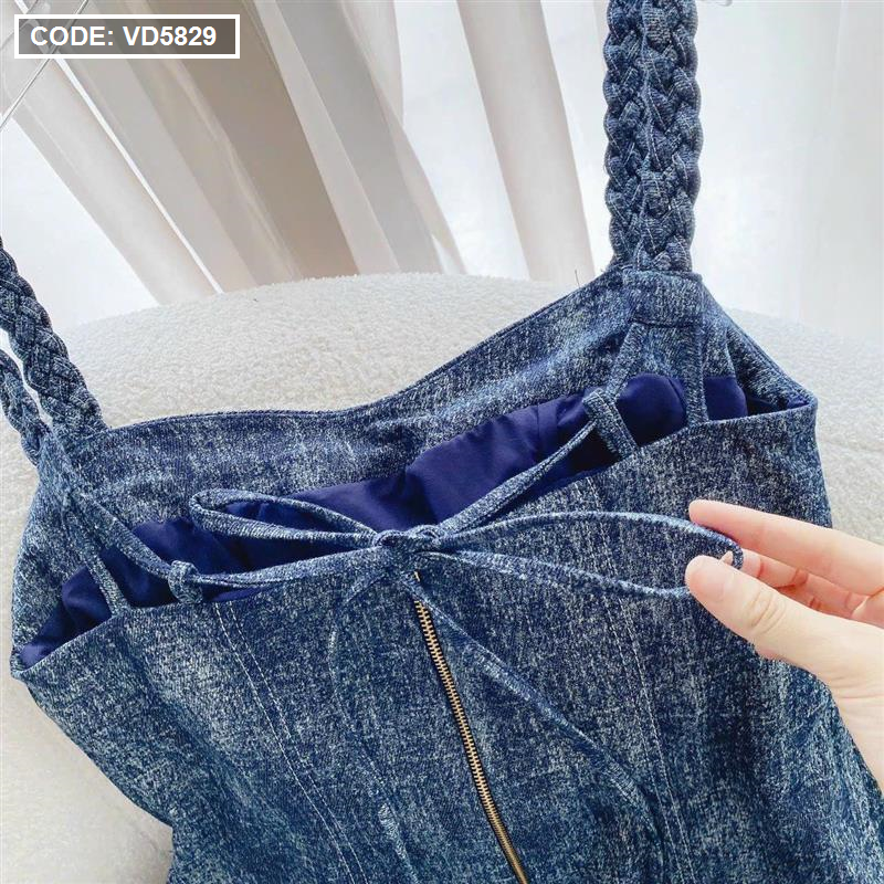 Hãy là người đầu tiên nhận xét “Đầm jean 2 dây thắt bím cúp ngực” Hủy