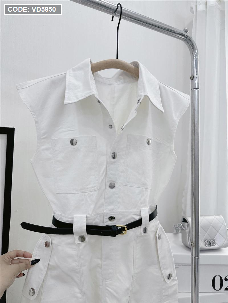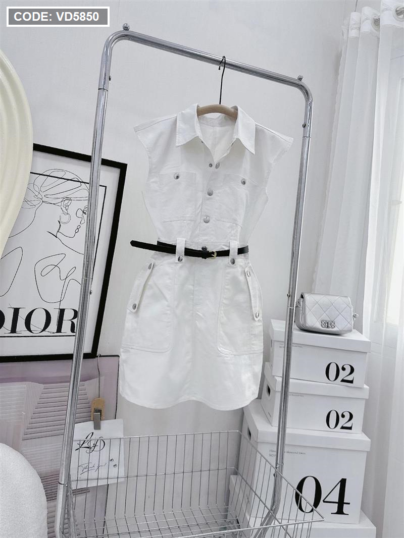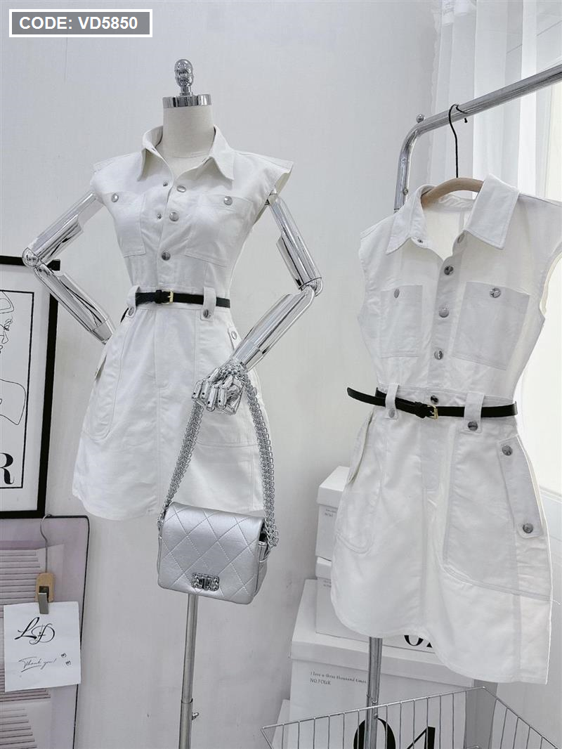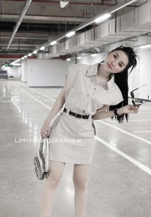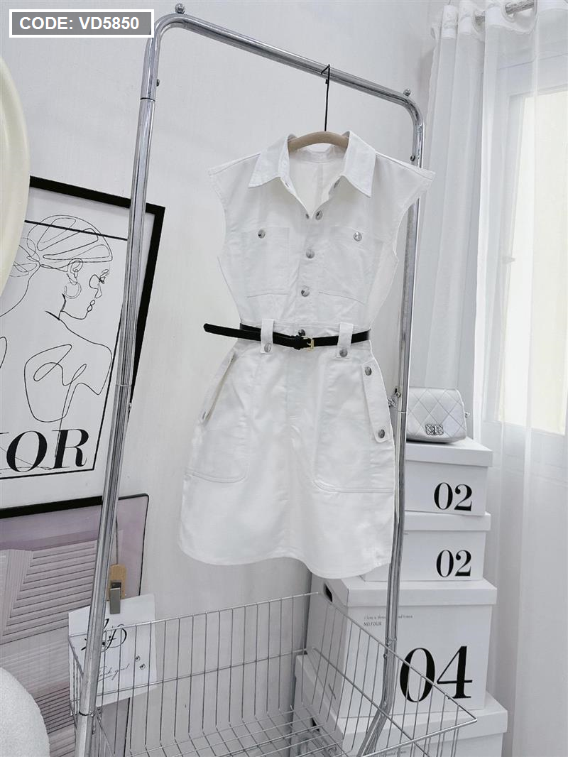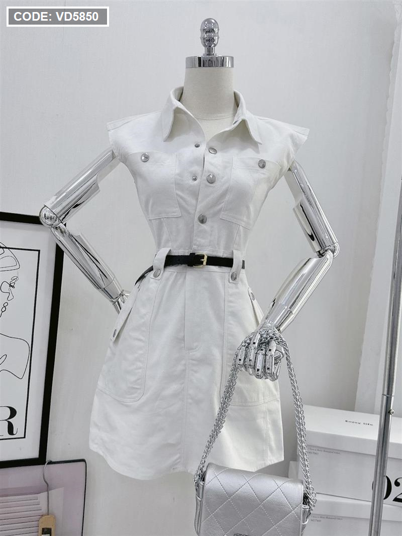 Đầm kaki trắng sữa nút bấm 4 nút kèm nịt