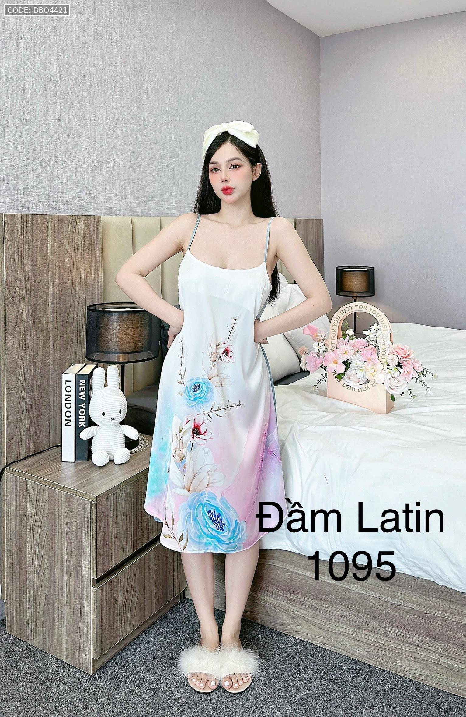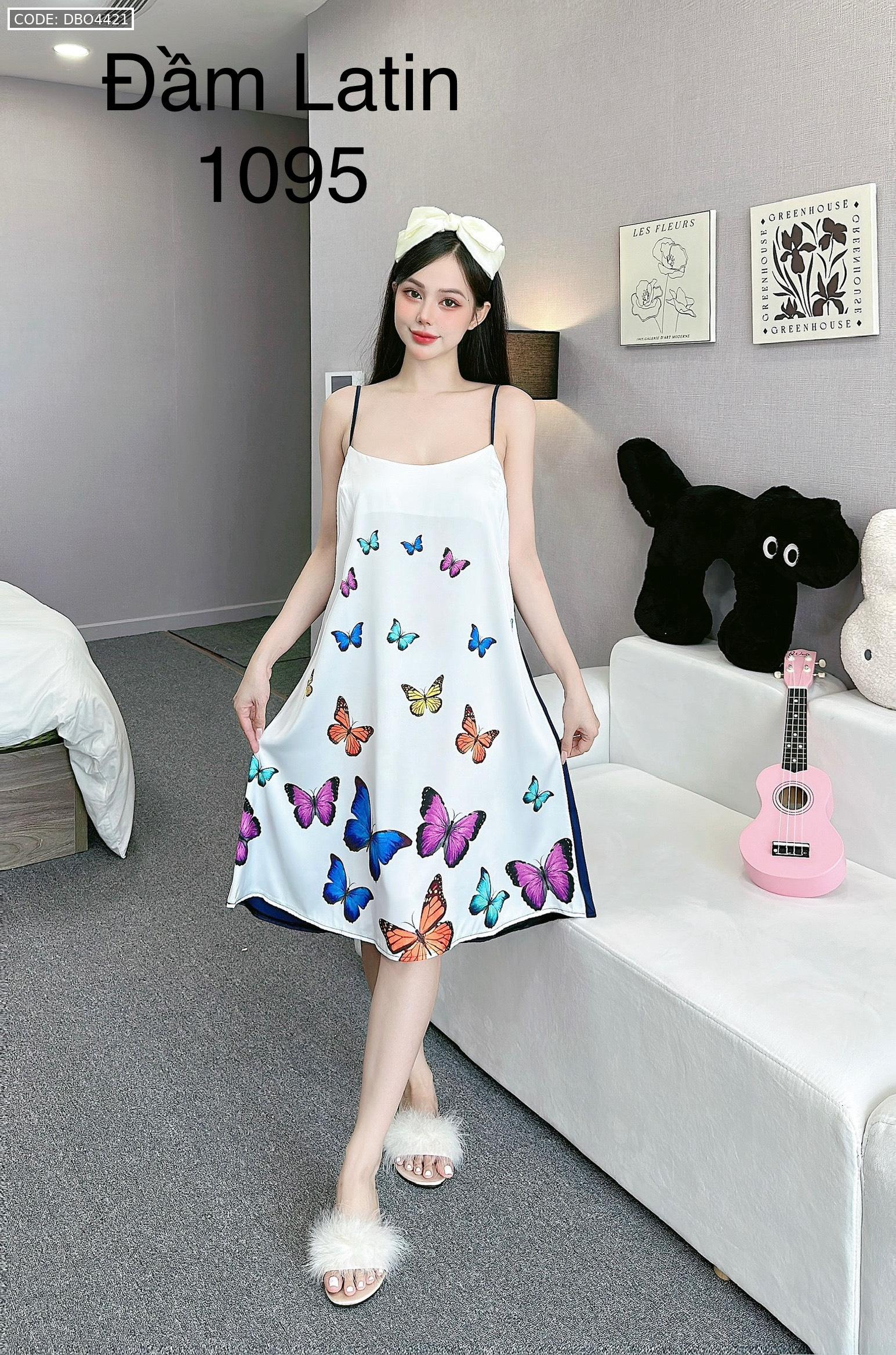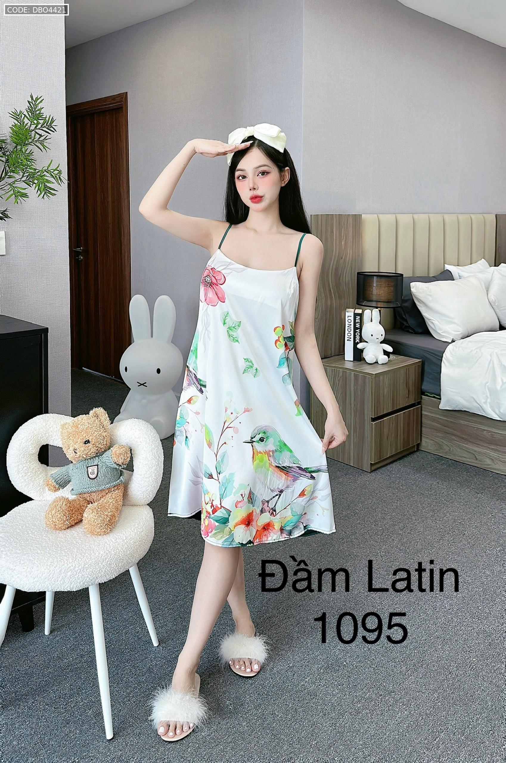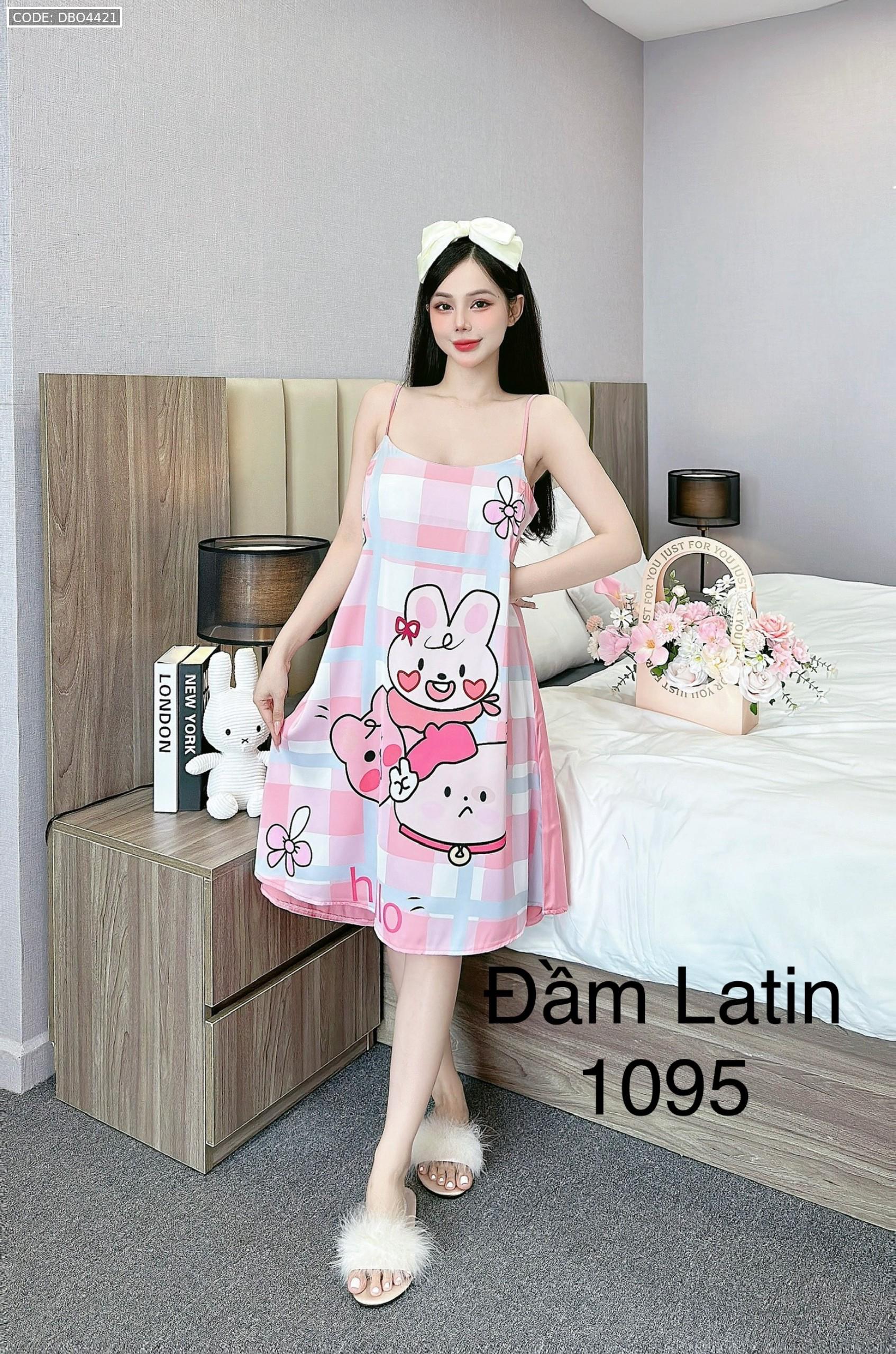 Đầm latin mặc nhà hai dây form chữ A in hình dể thương