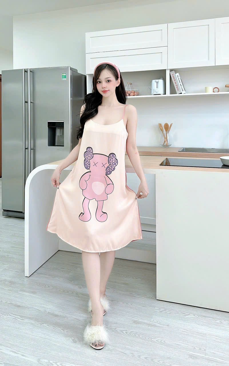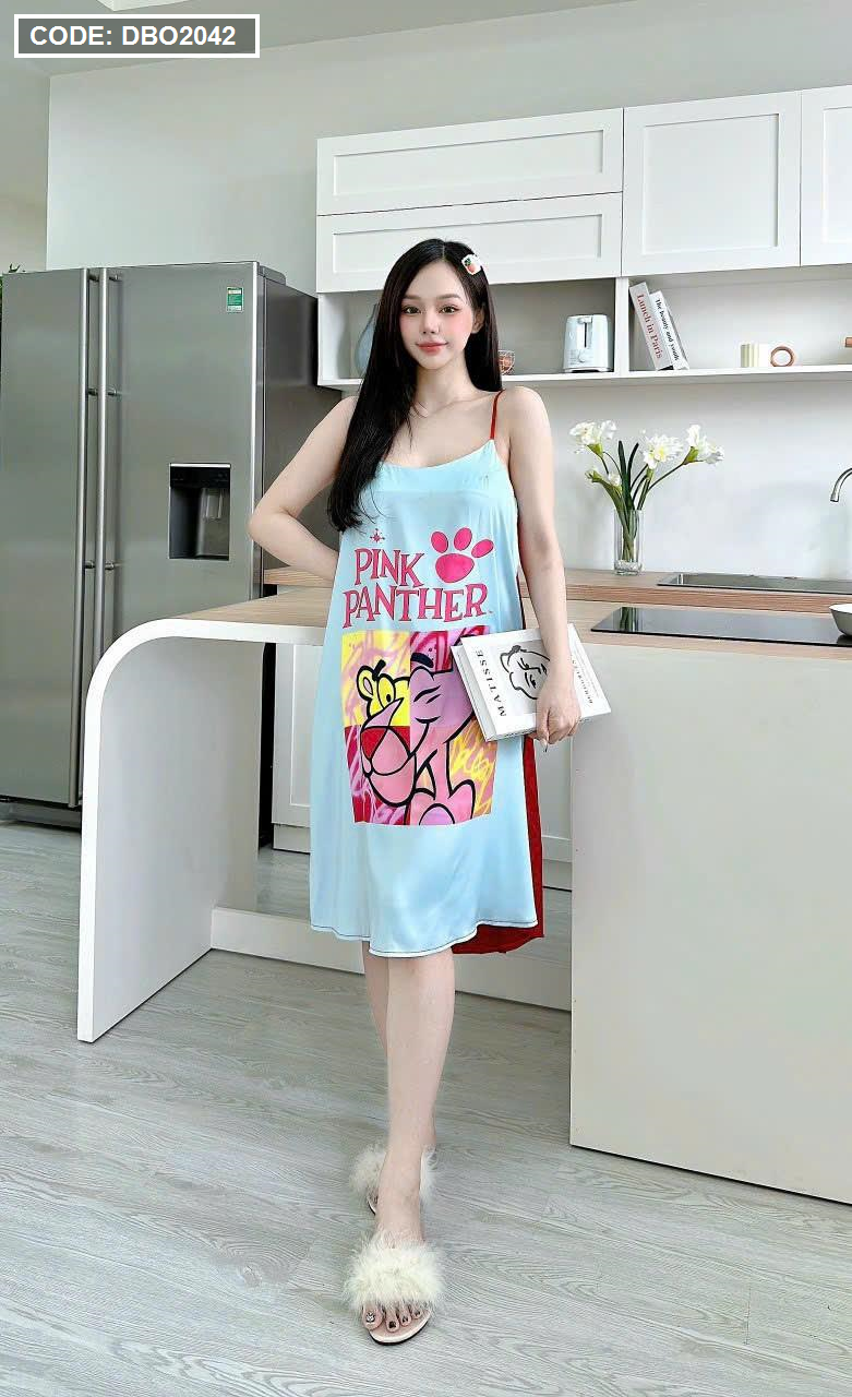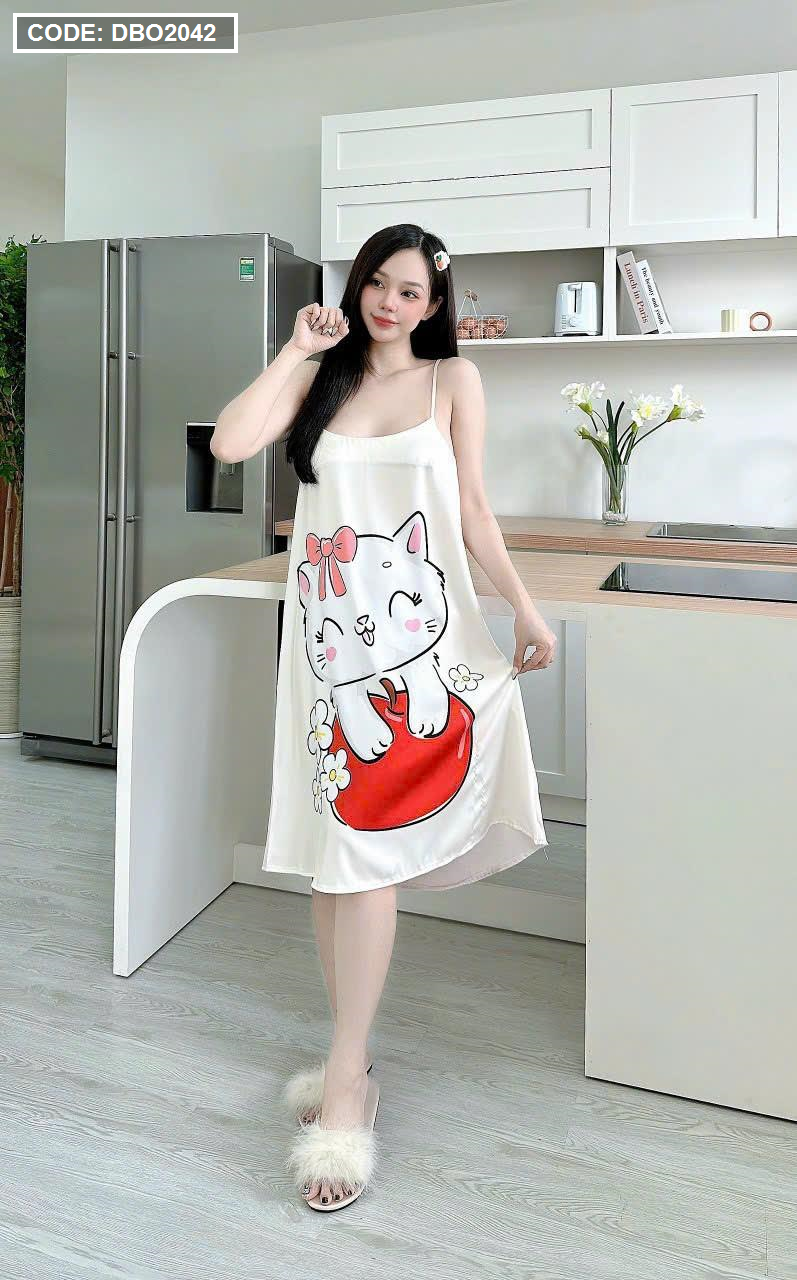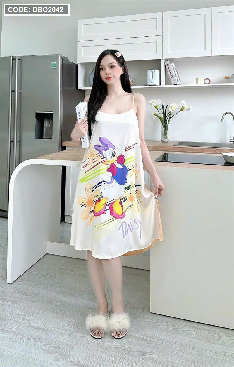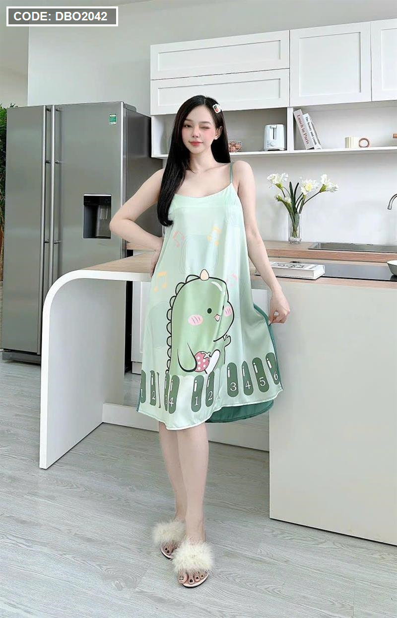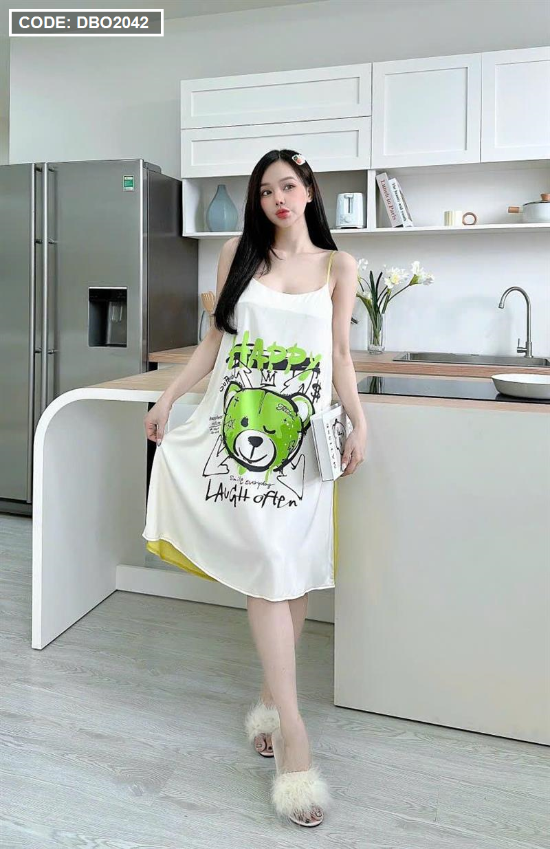 Đầm nữ áo dây form suông họa tiết mặc nhà