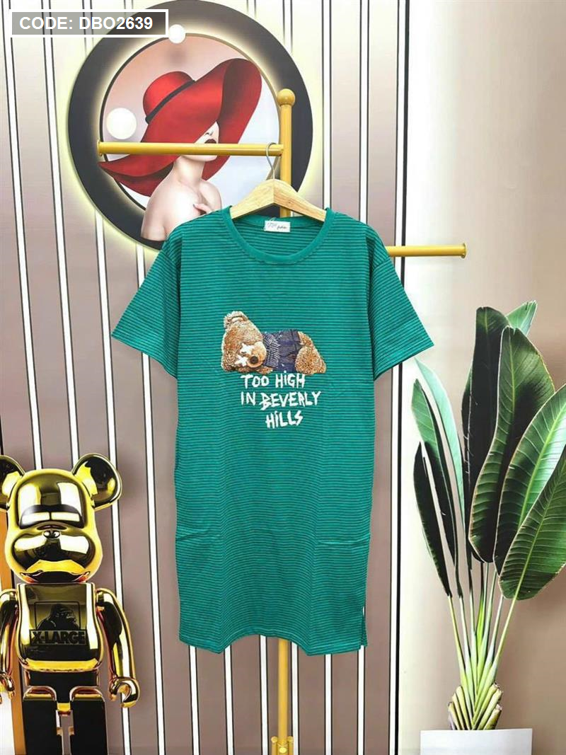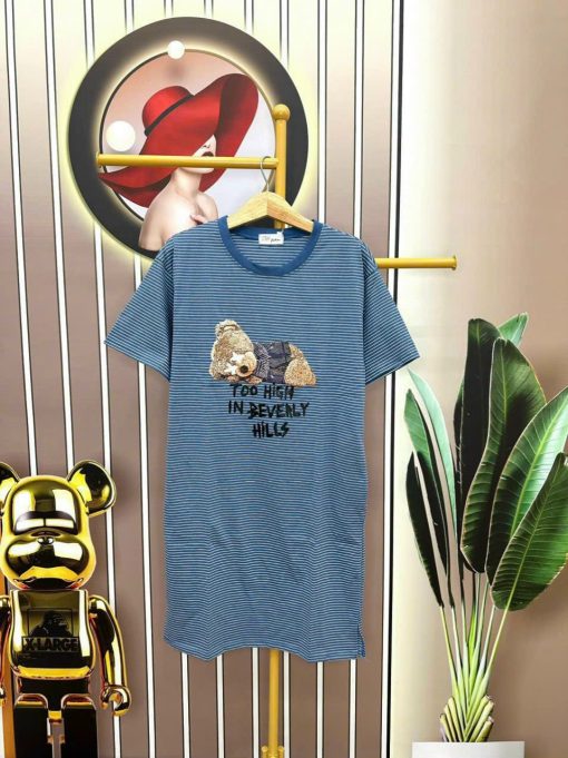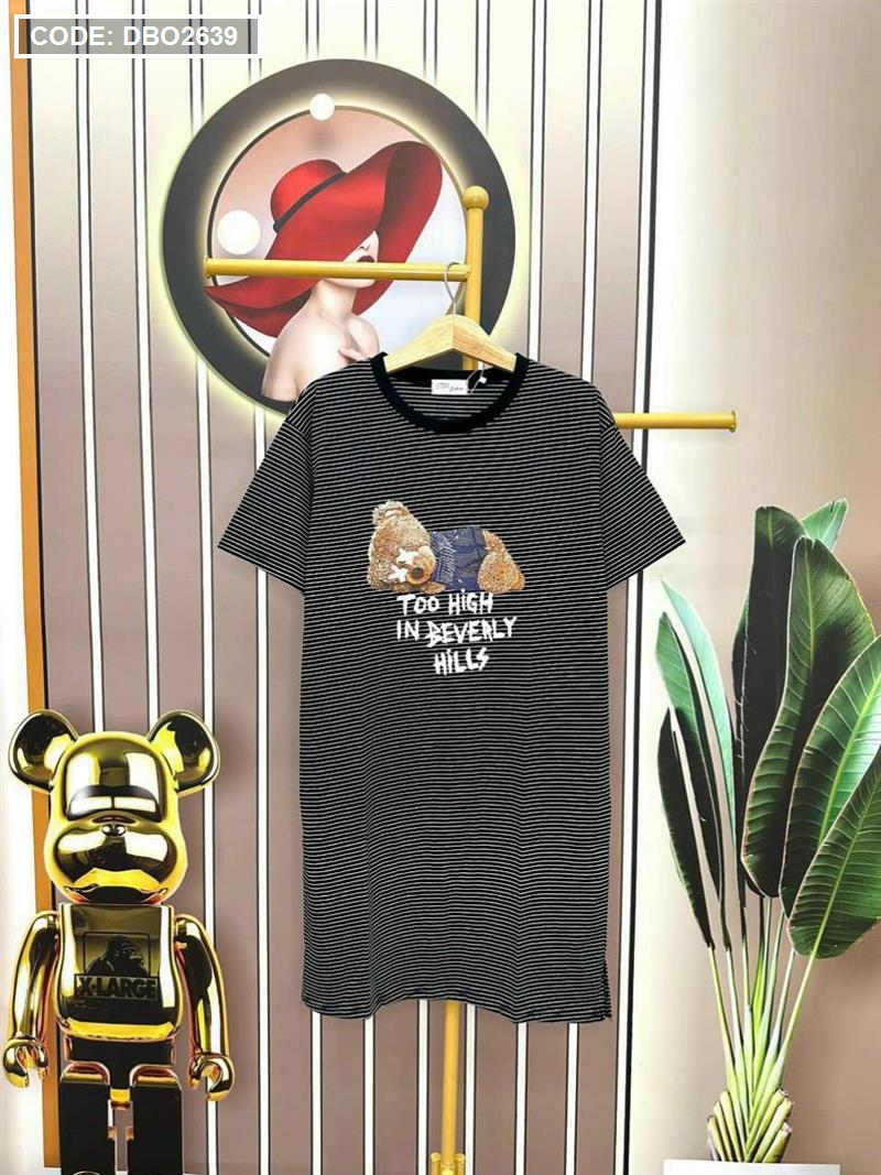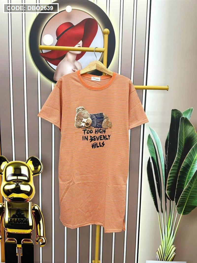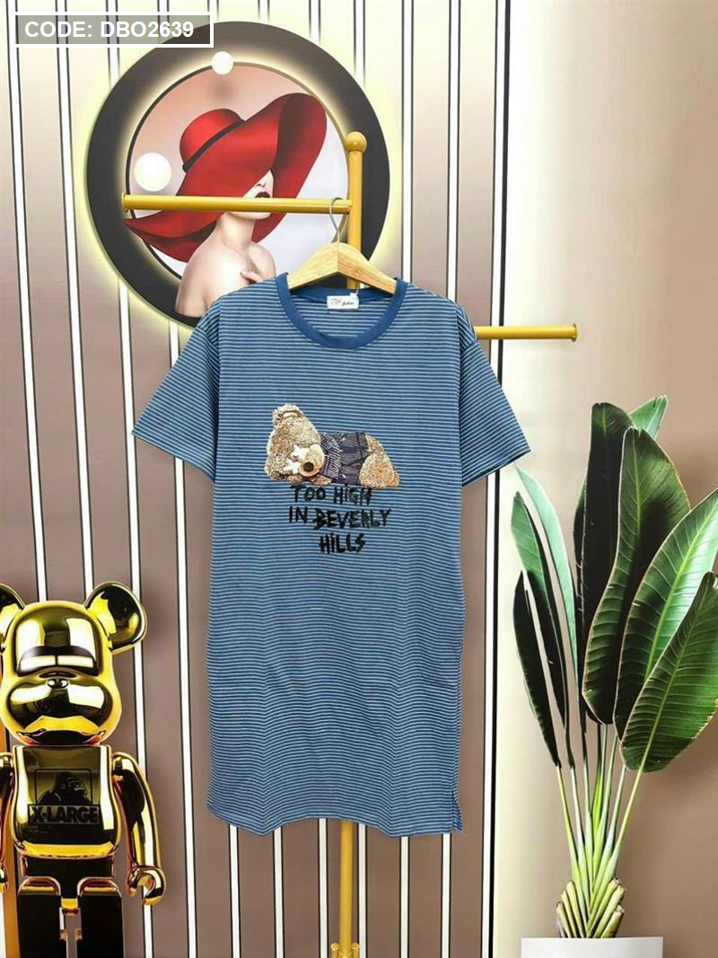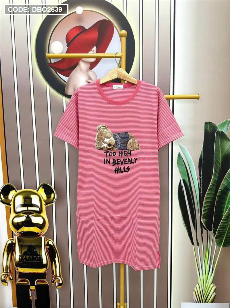 Đầm nữ form suông tay ngắn sọc ngang cổ tròn