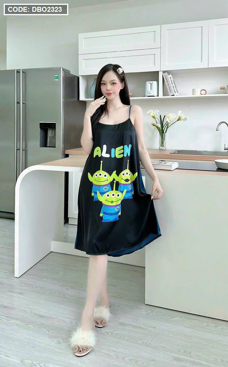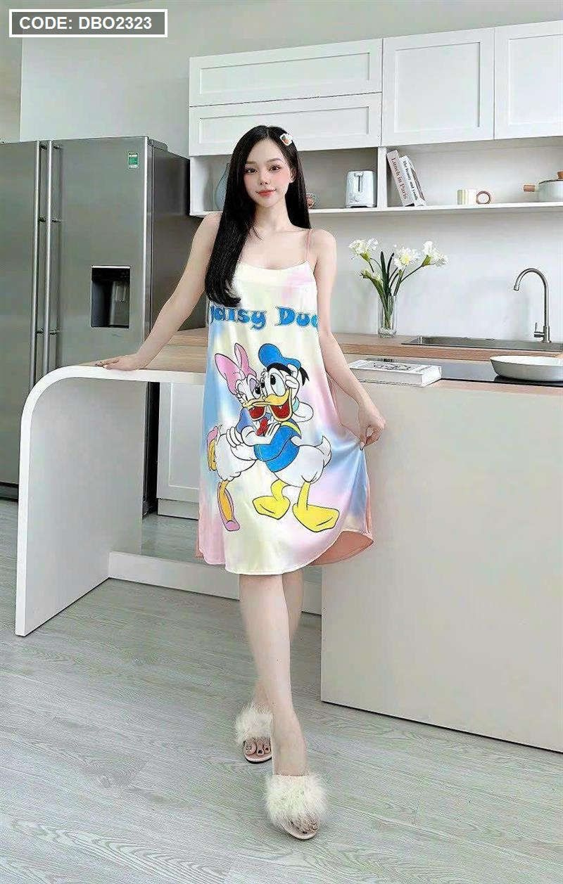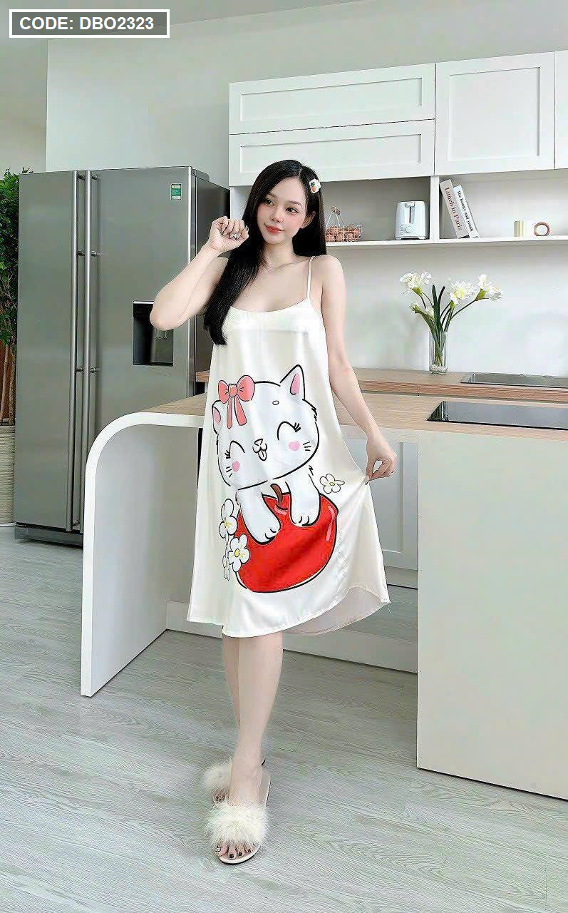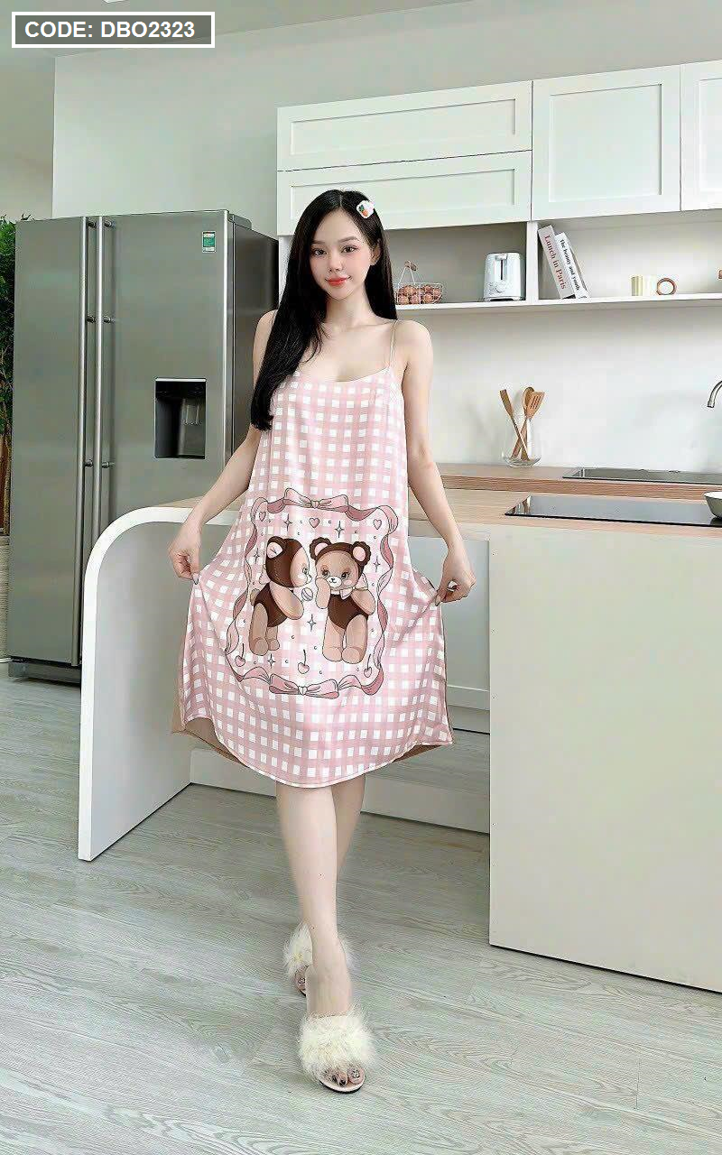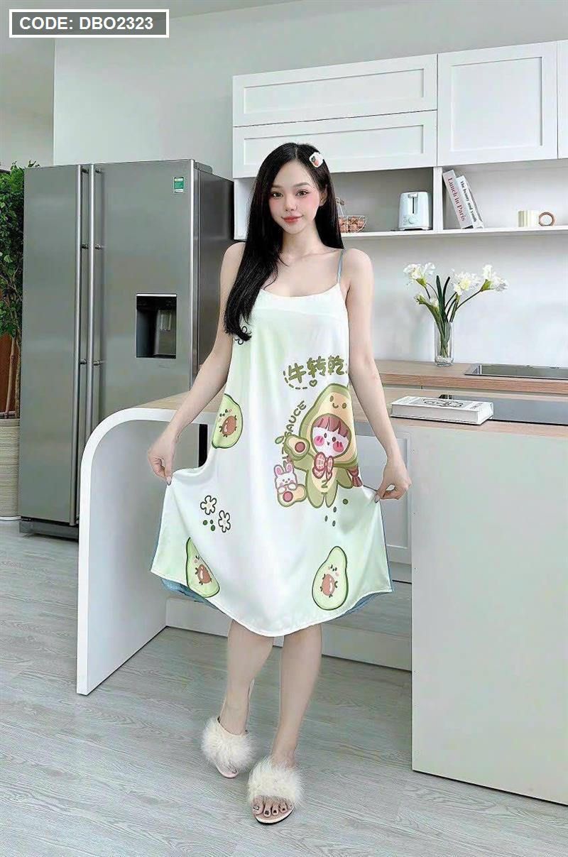 Đầm suông 2 dây họa tiết mặc nhà