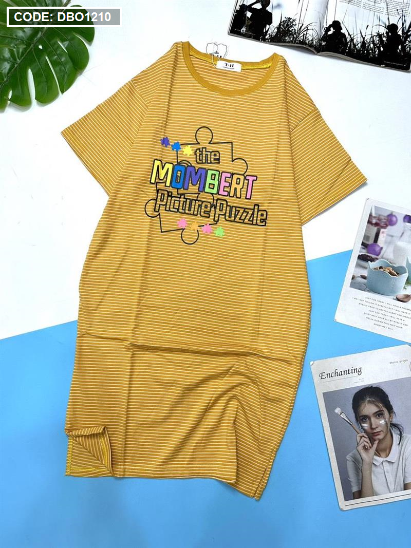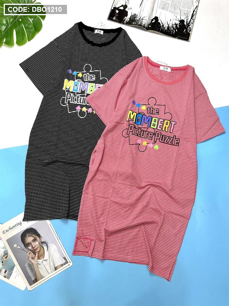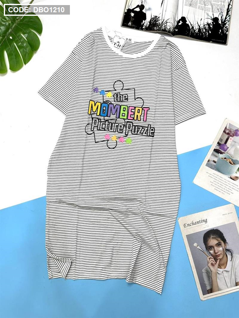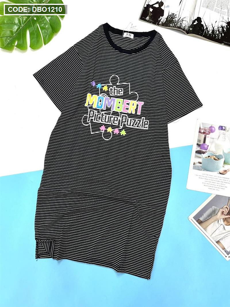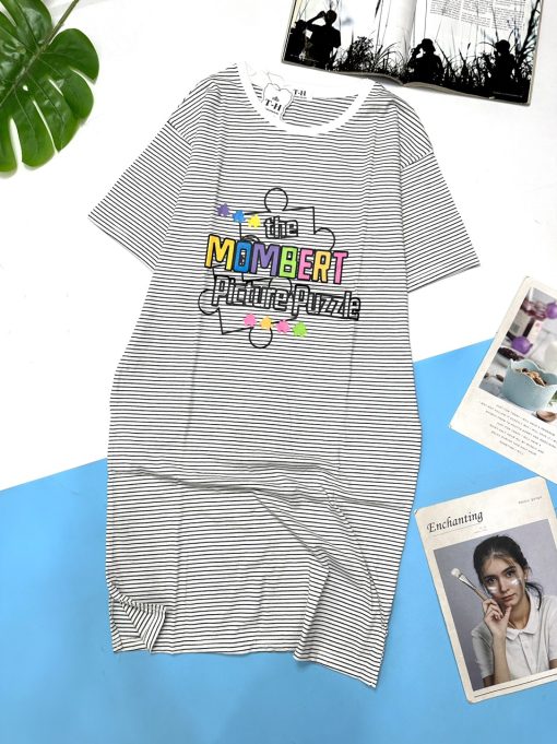 Đầm suông sọc thun cotton in chữ