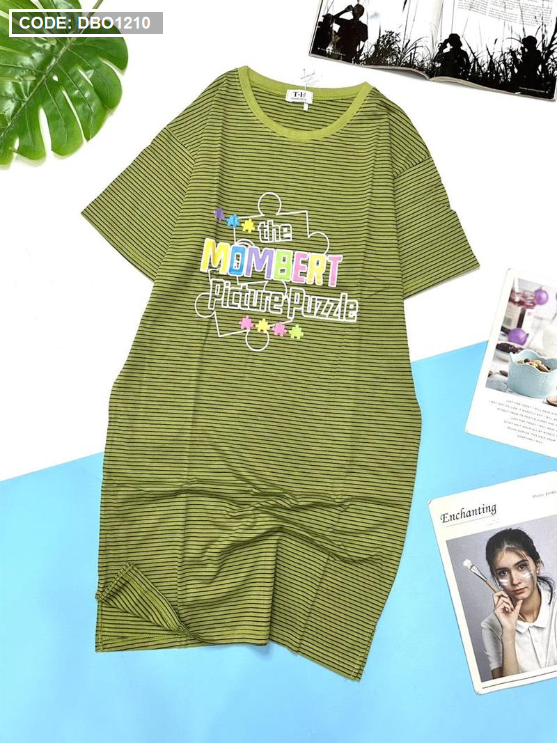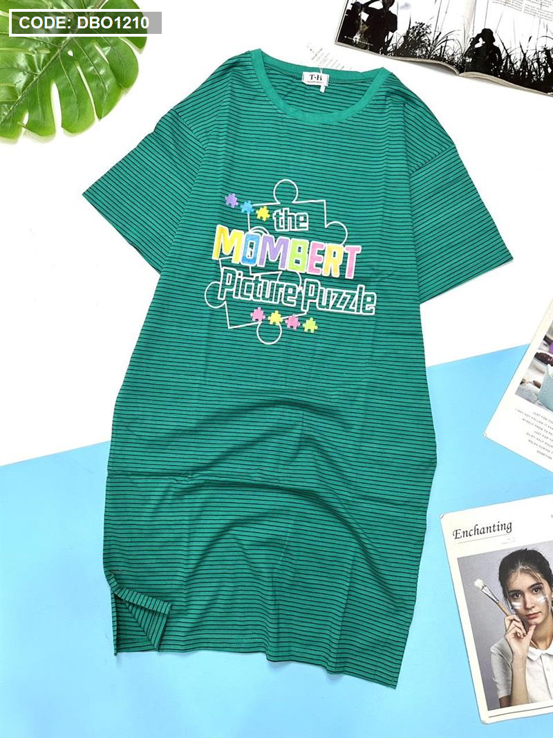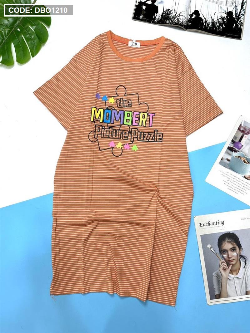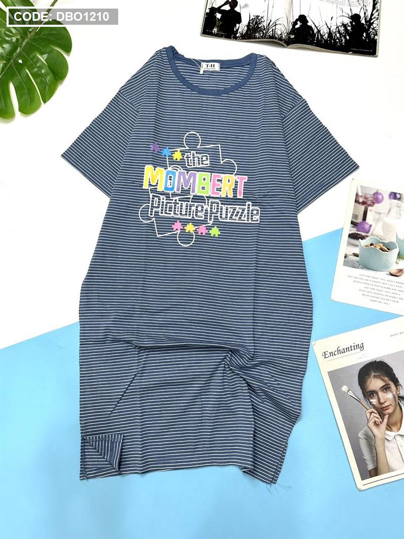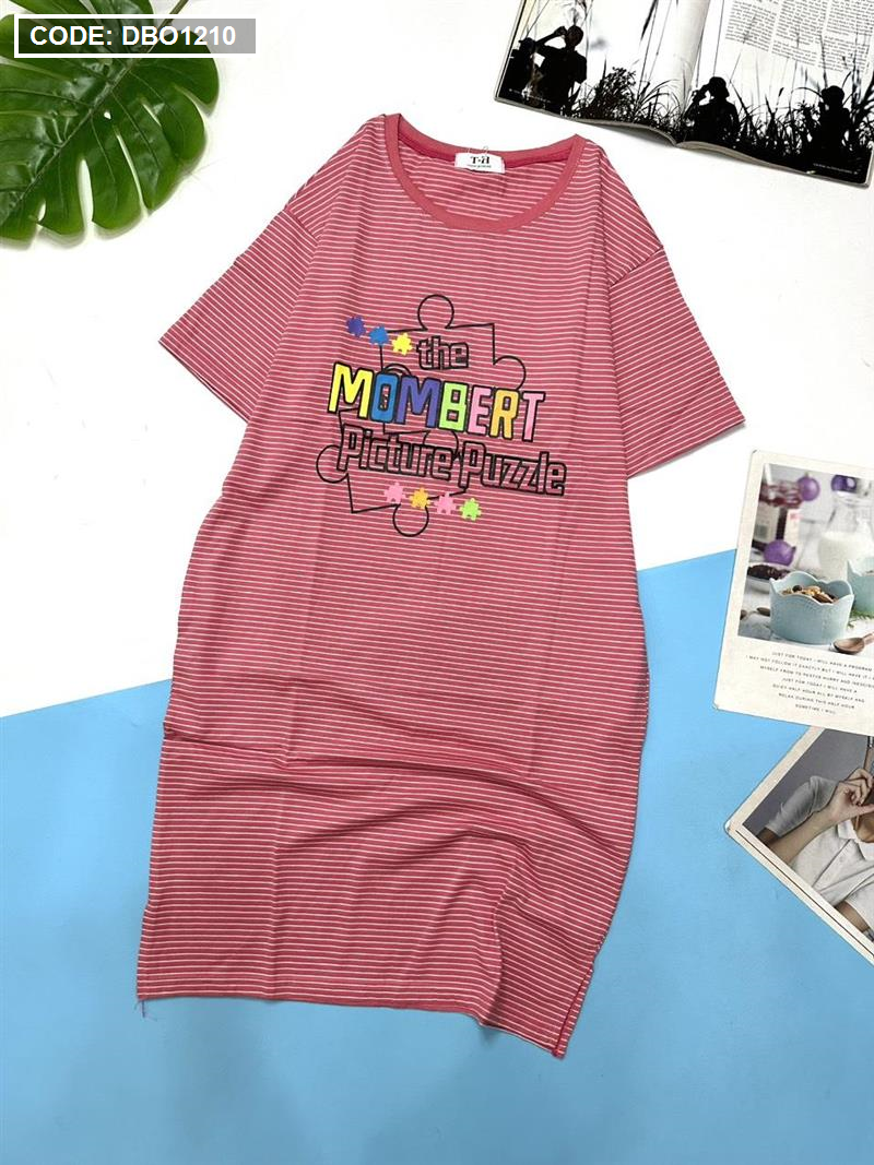 Đầm suông sọc thun cotton in chữ