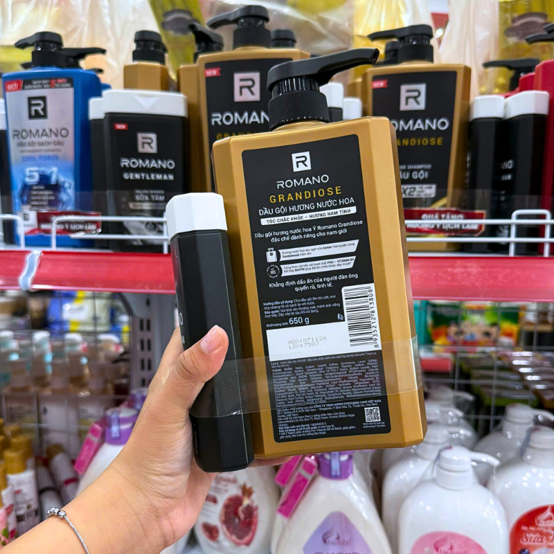 Dầu Gội Romano Grandiose 650g – Dầu Gội Nam Chai Vàng (Tặng Sữa Tắm Sạch Sảng Khoái)