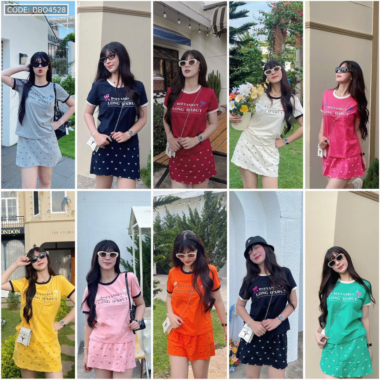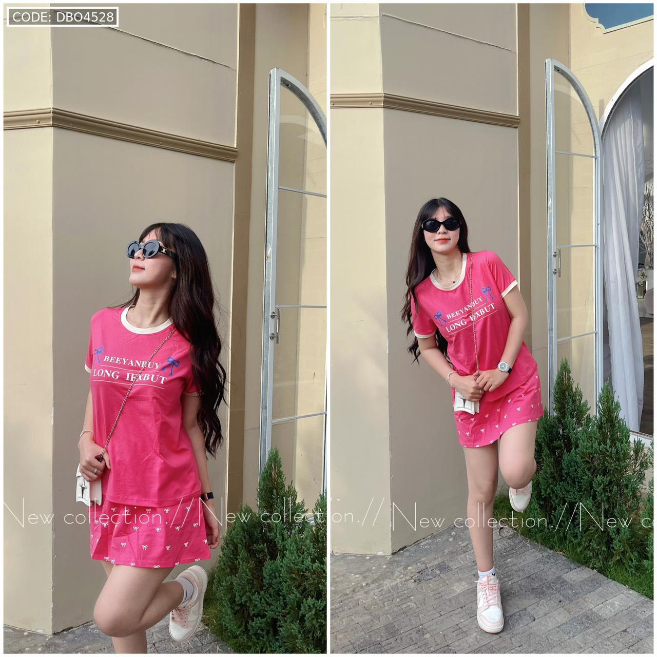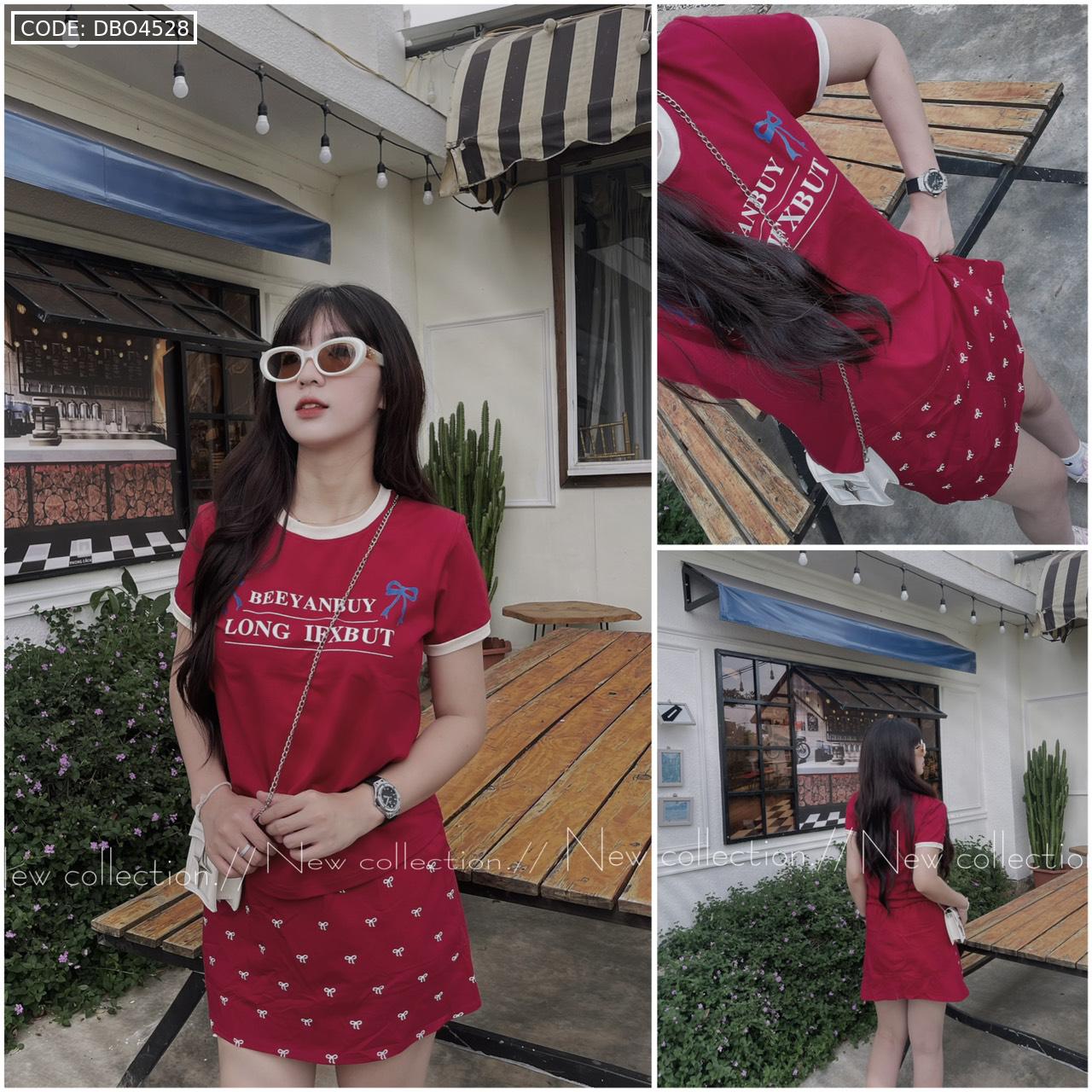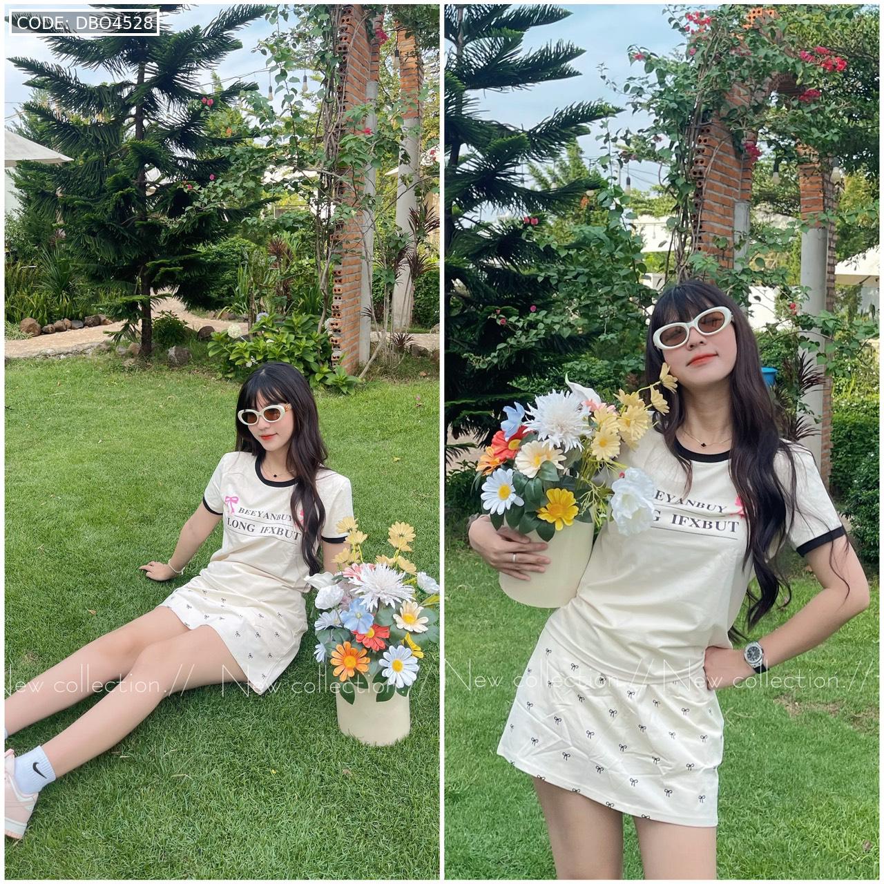 đồ bộ áo thun chất váy in hình nhiều nơ nhỏ