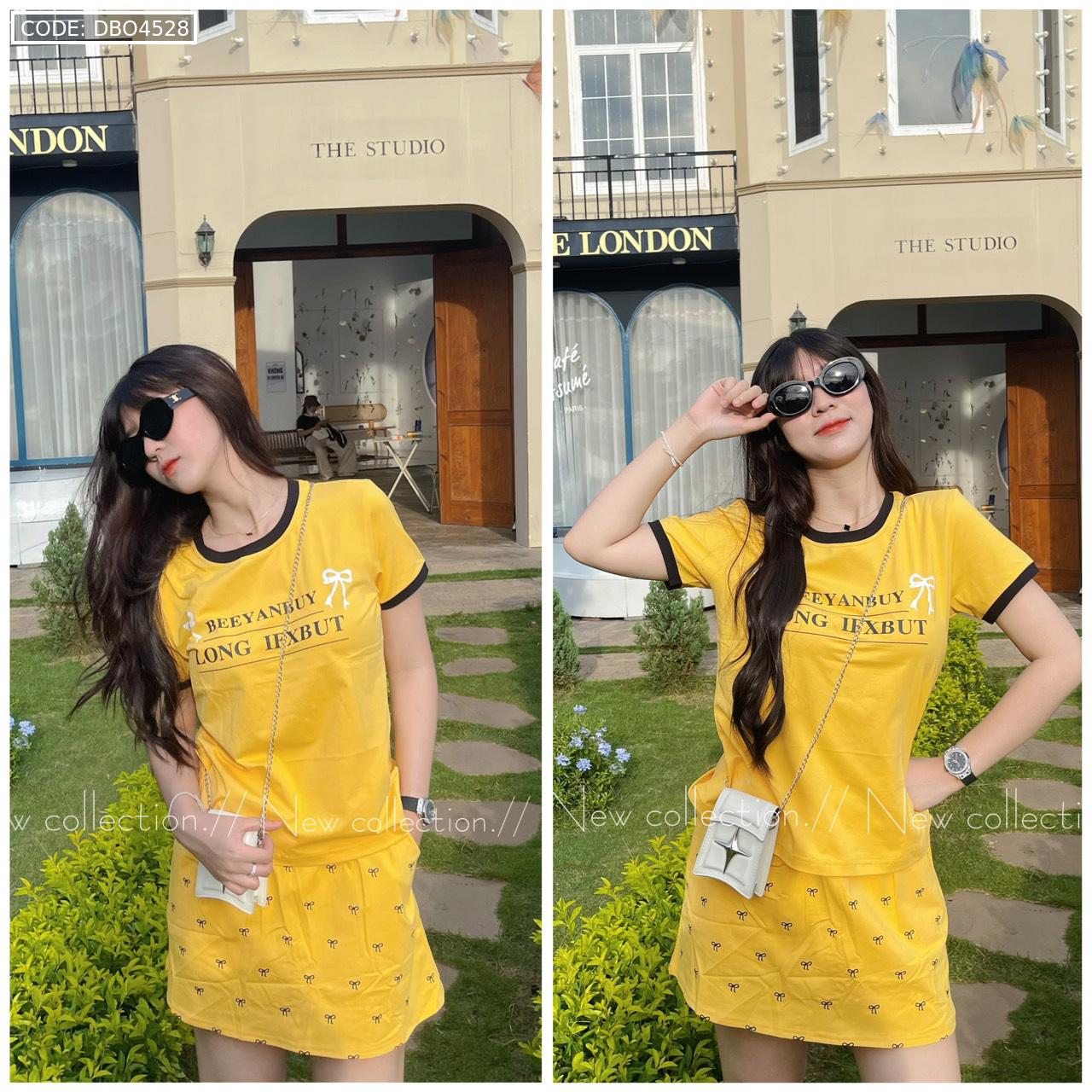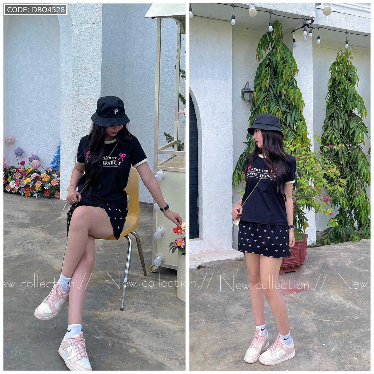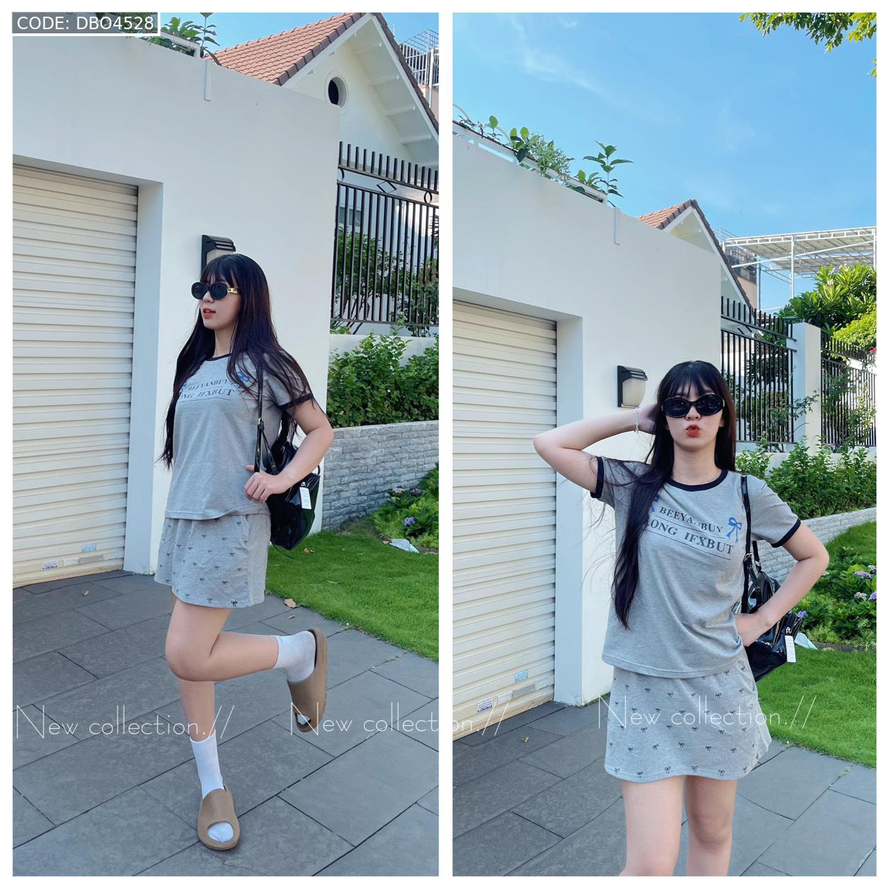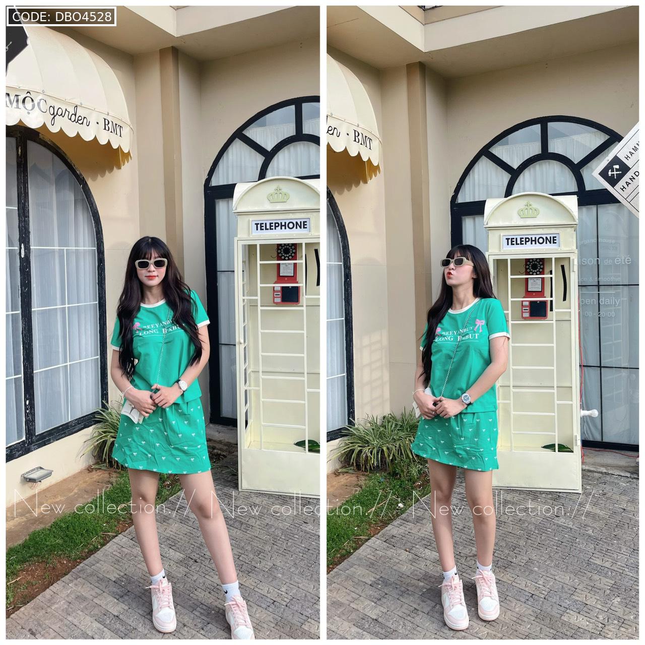 đồ bộ áo thun chất váy in hình nhiều nơ nhỏ