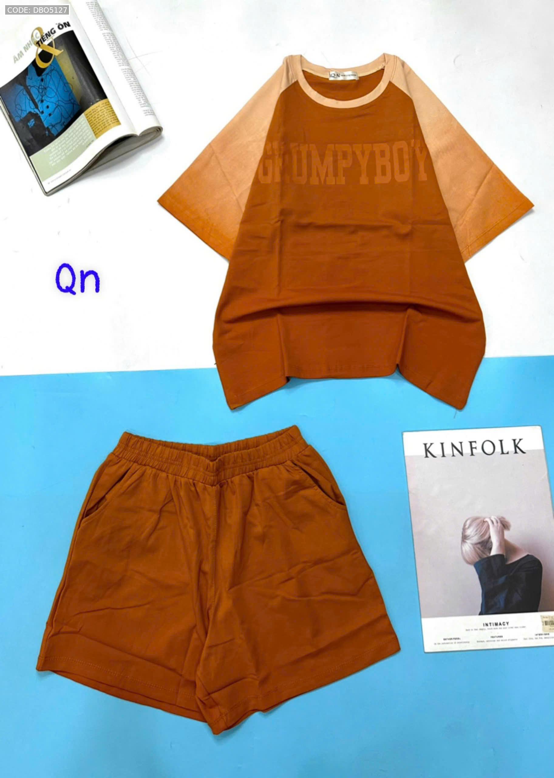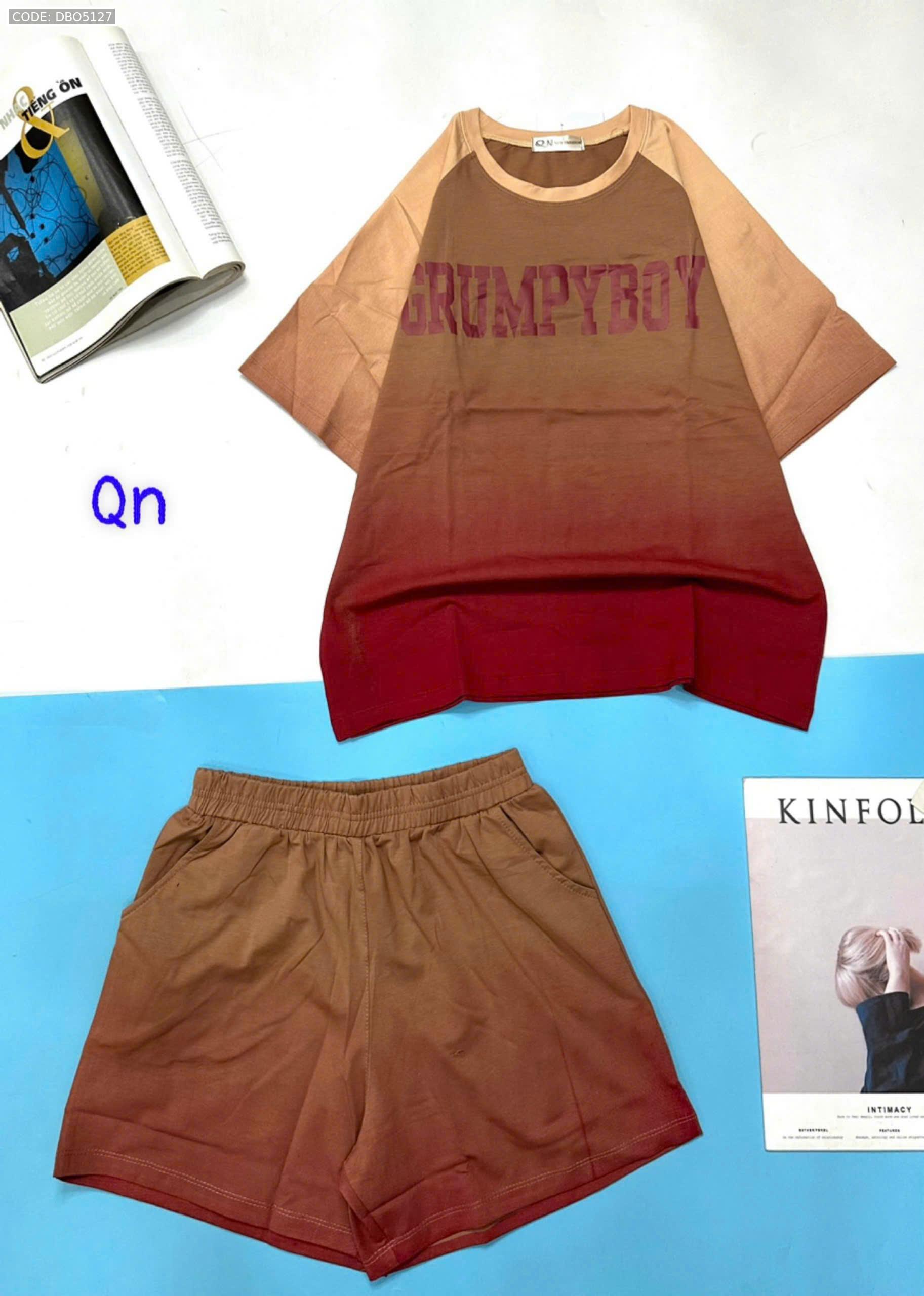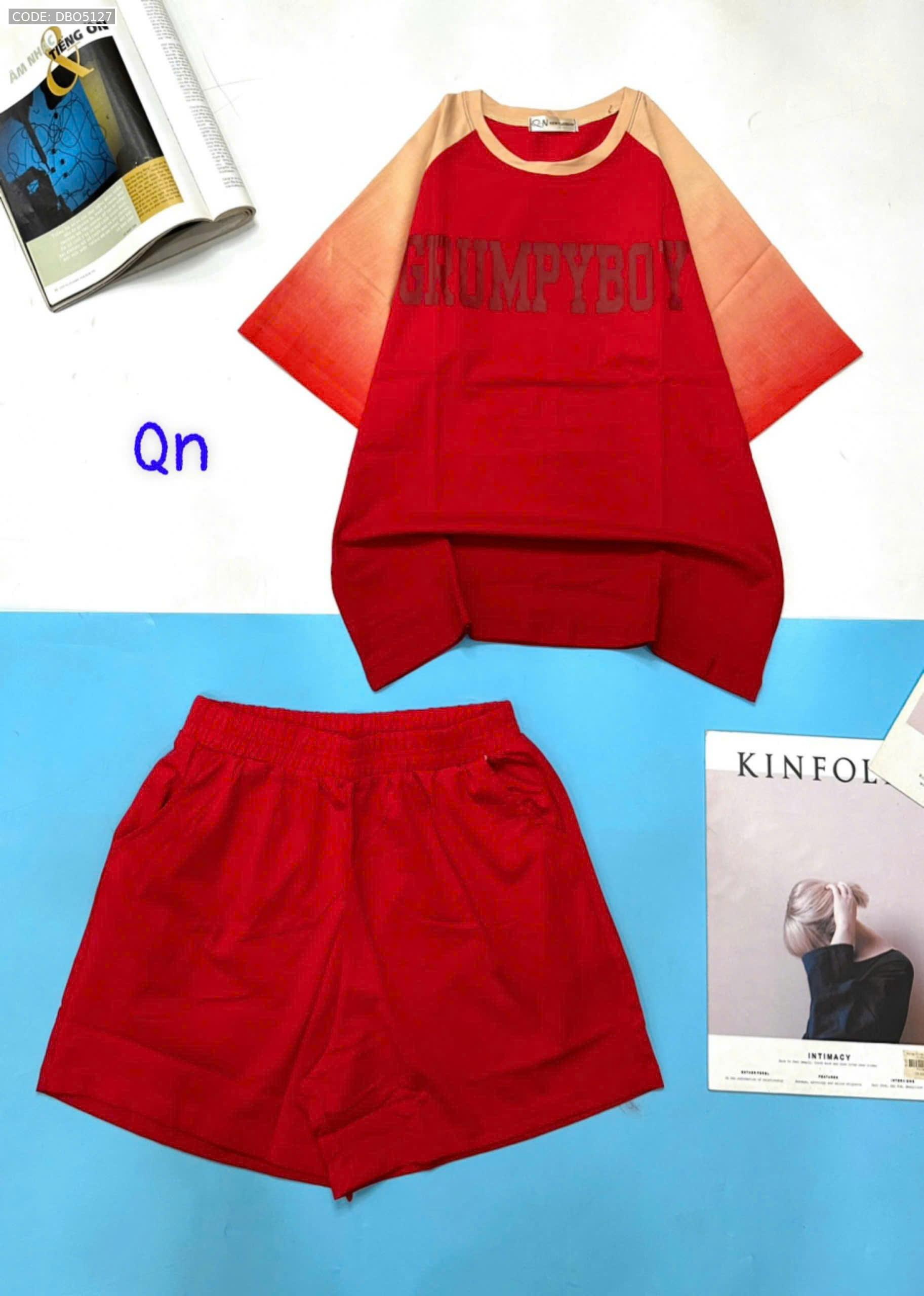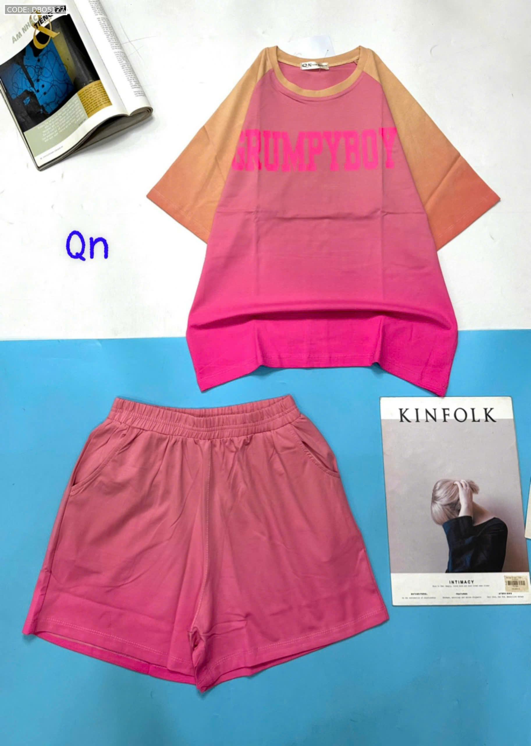 Đồ bộ áo thun quần đùi pha màu in chữ