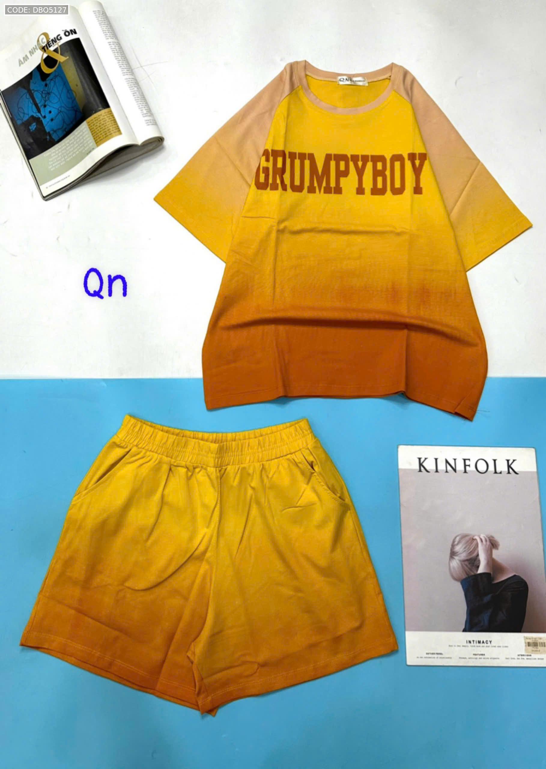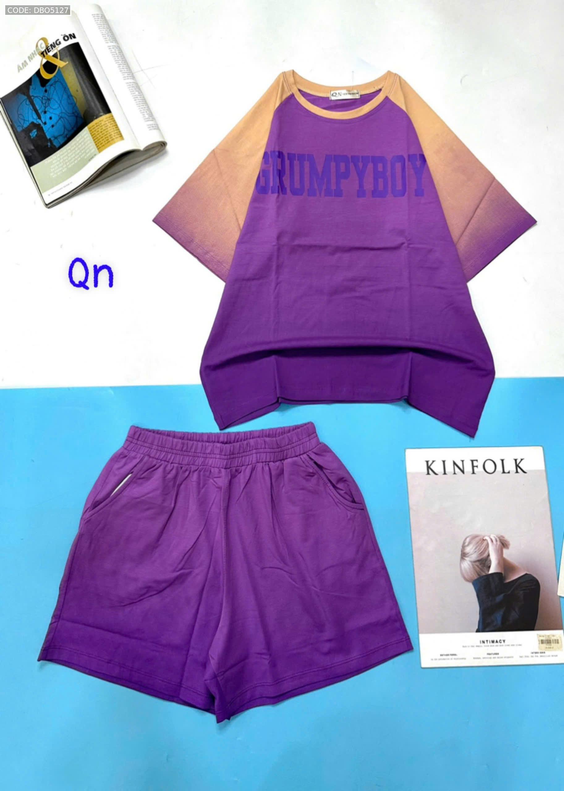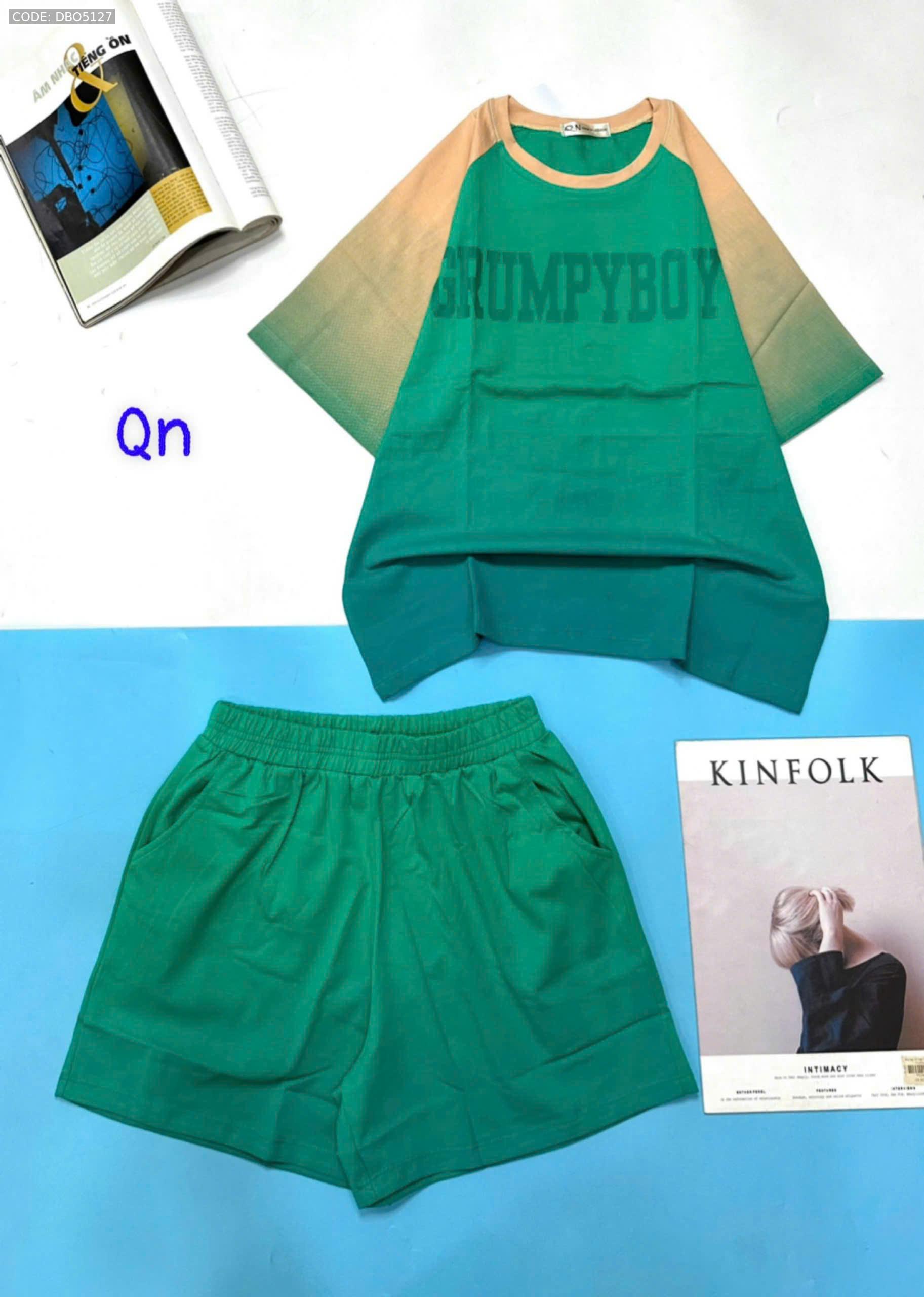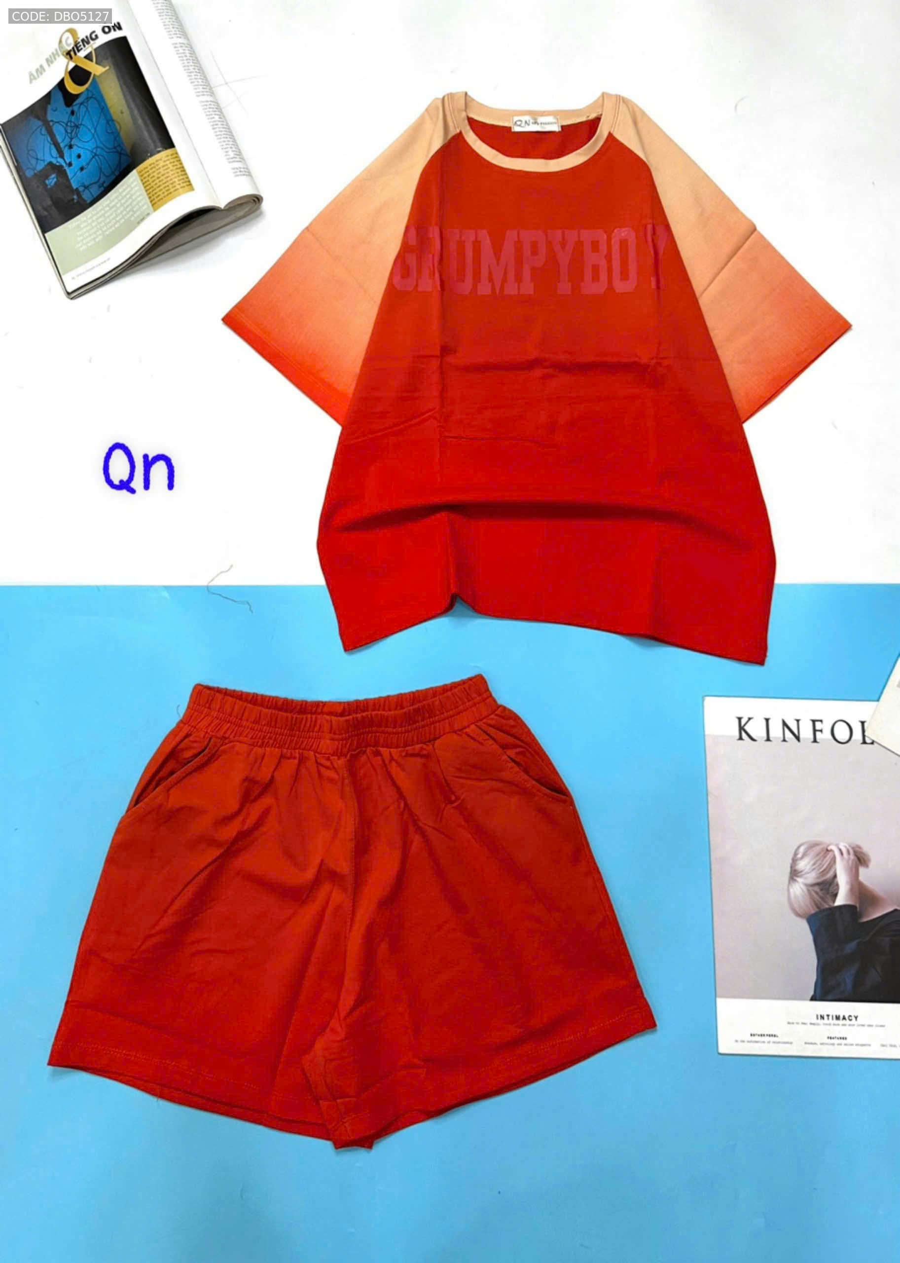 Đồ bộ áo thun quần đùi pha màu in chữ