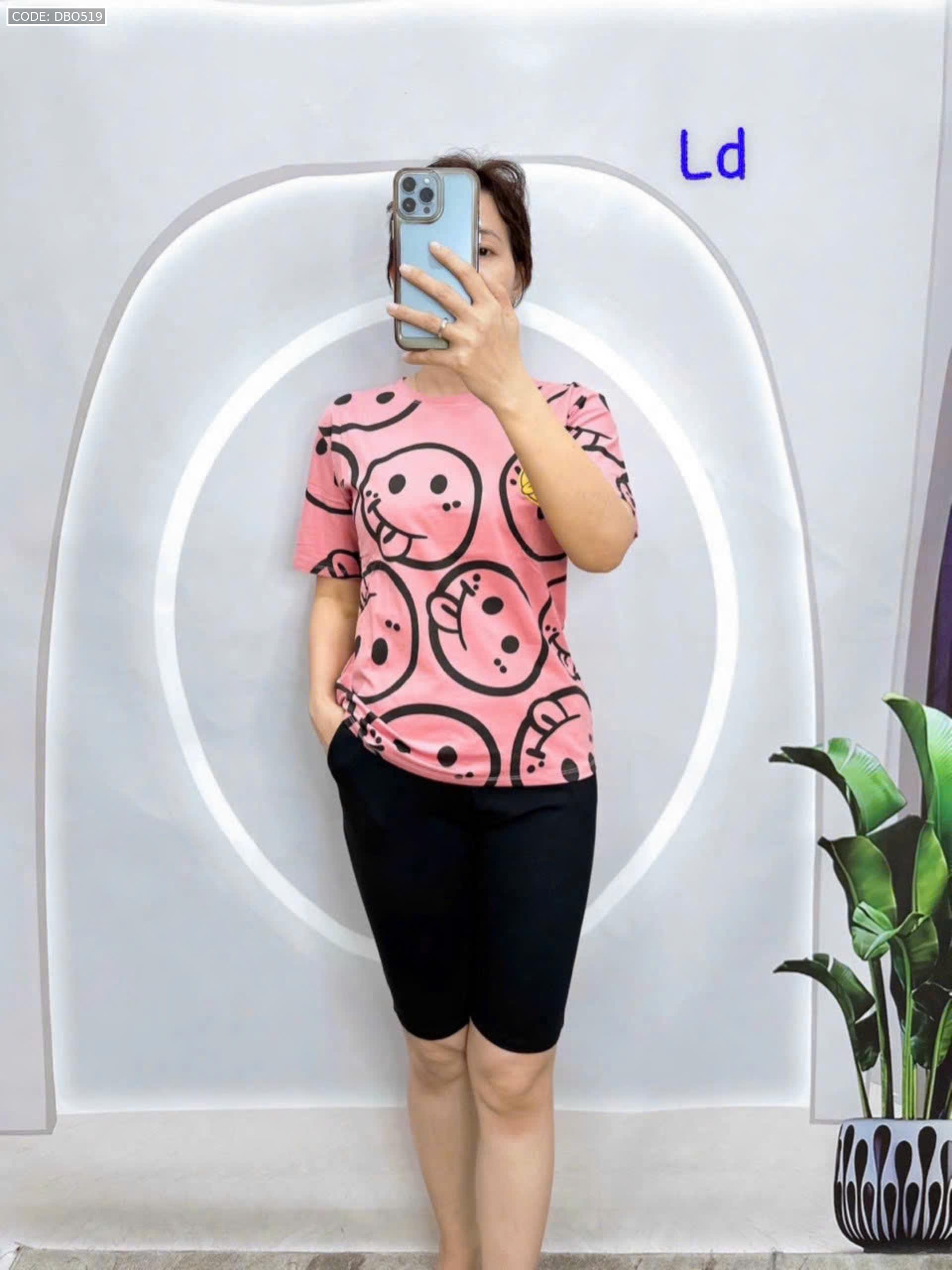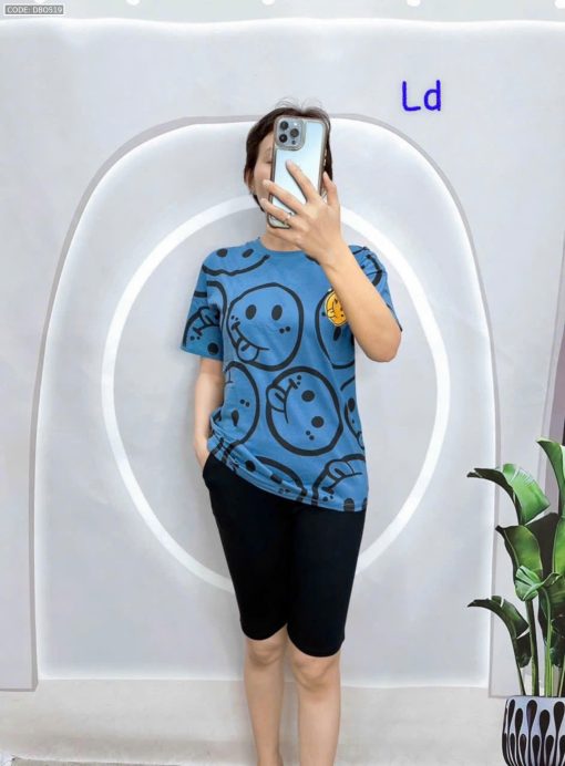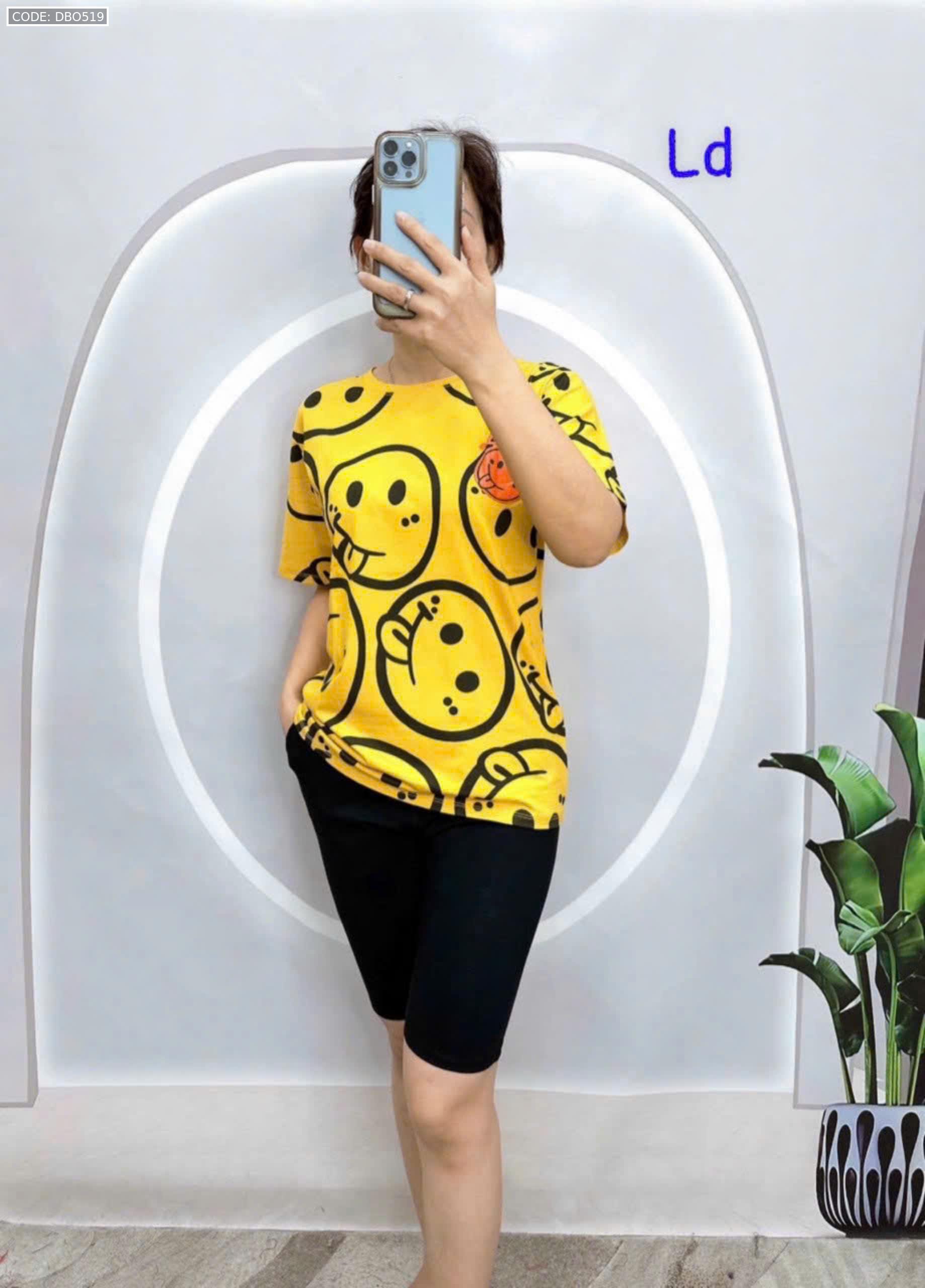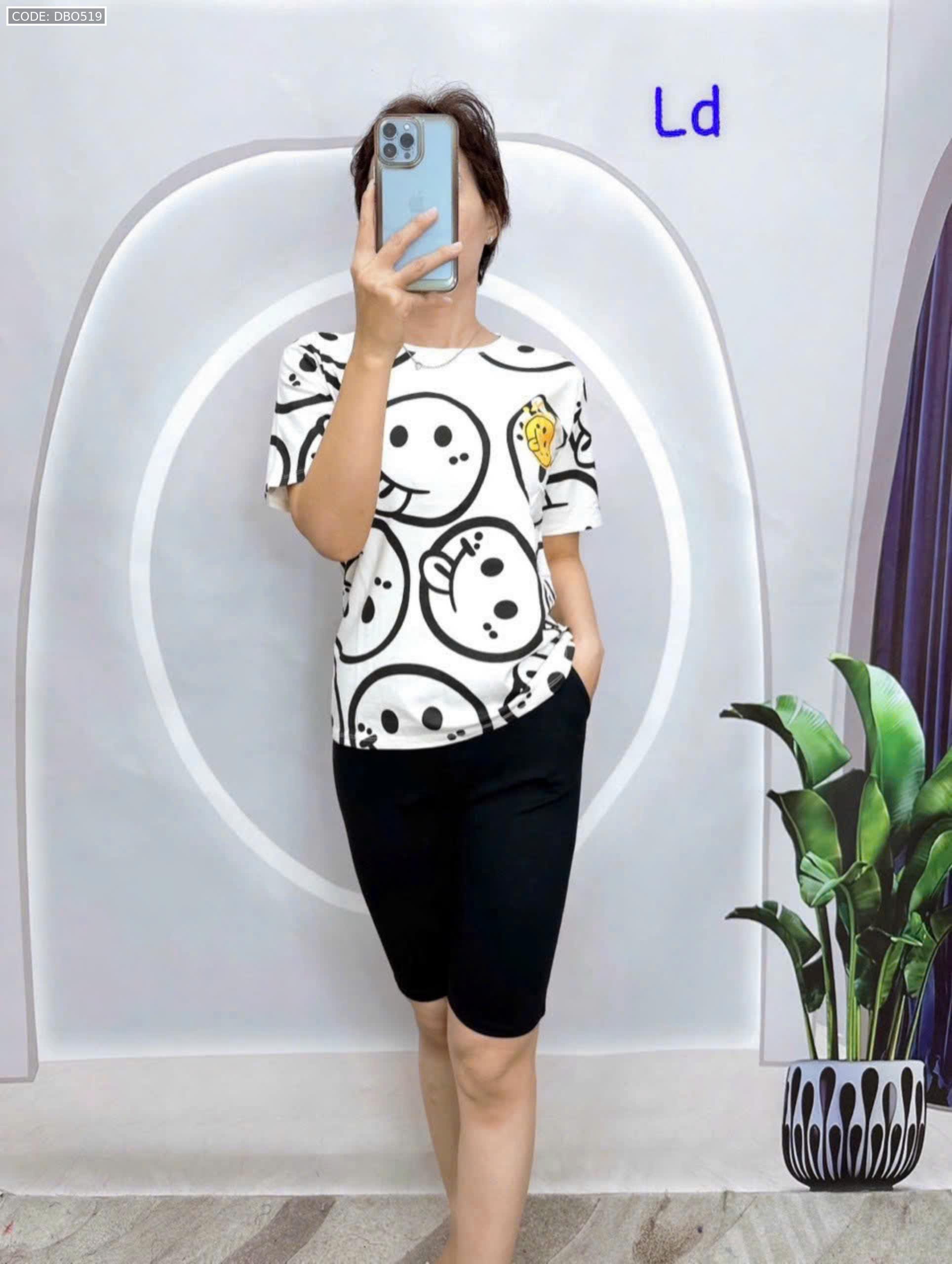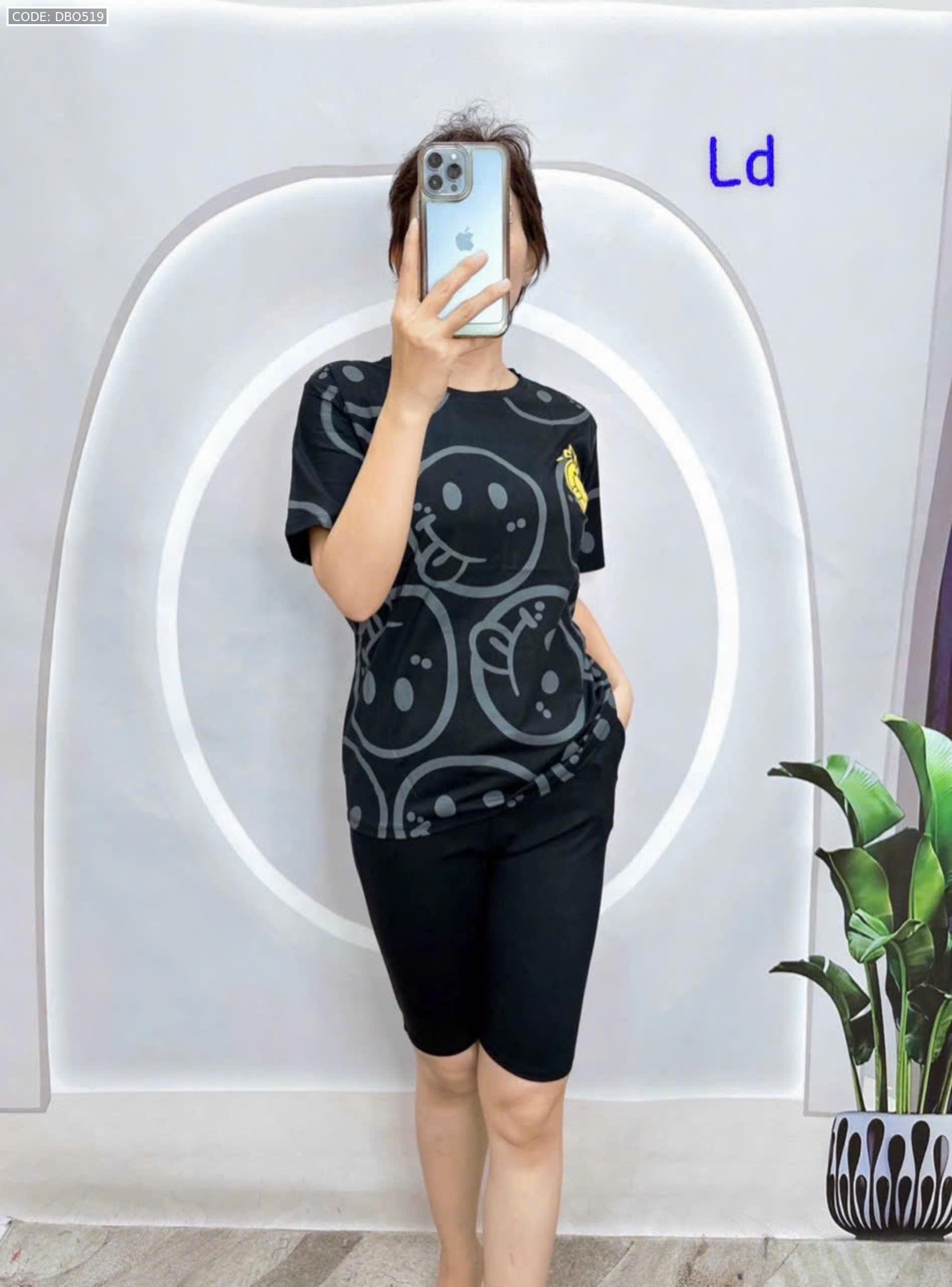 Đồ bộ áo thun quần lửng đen in mặt cười