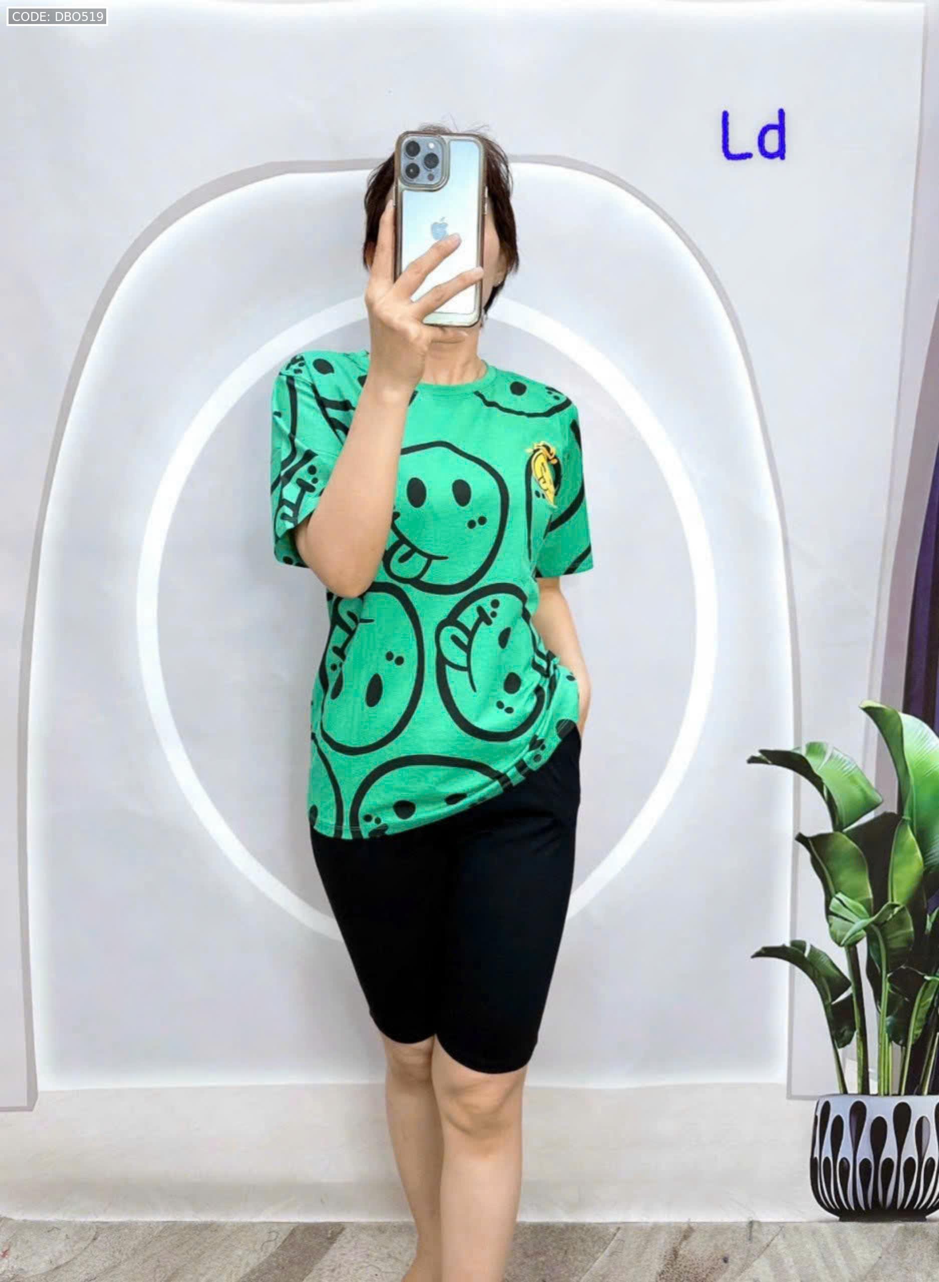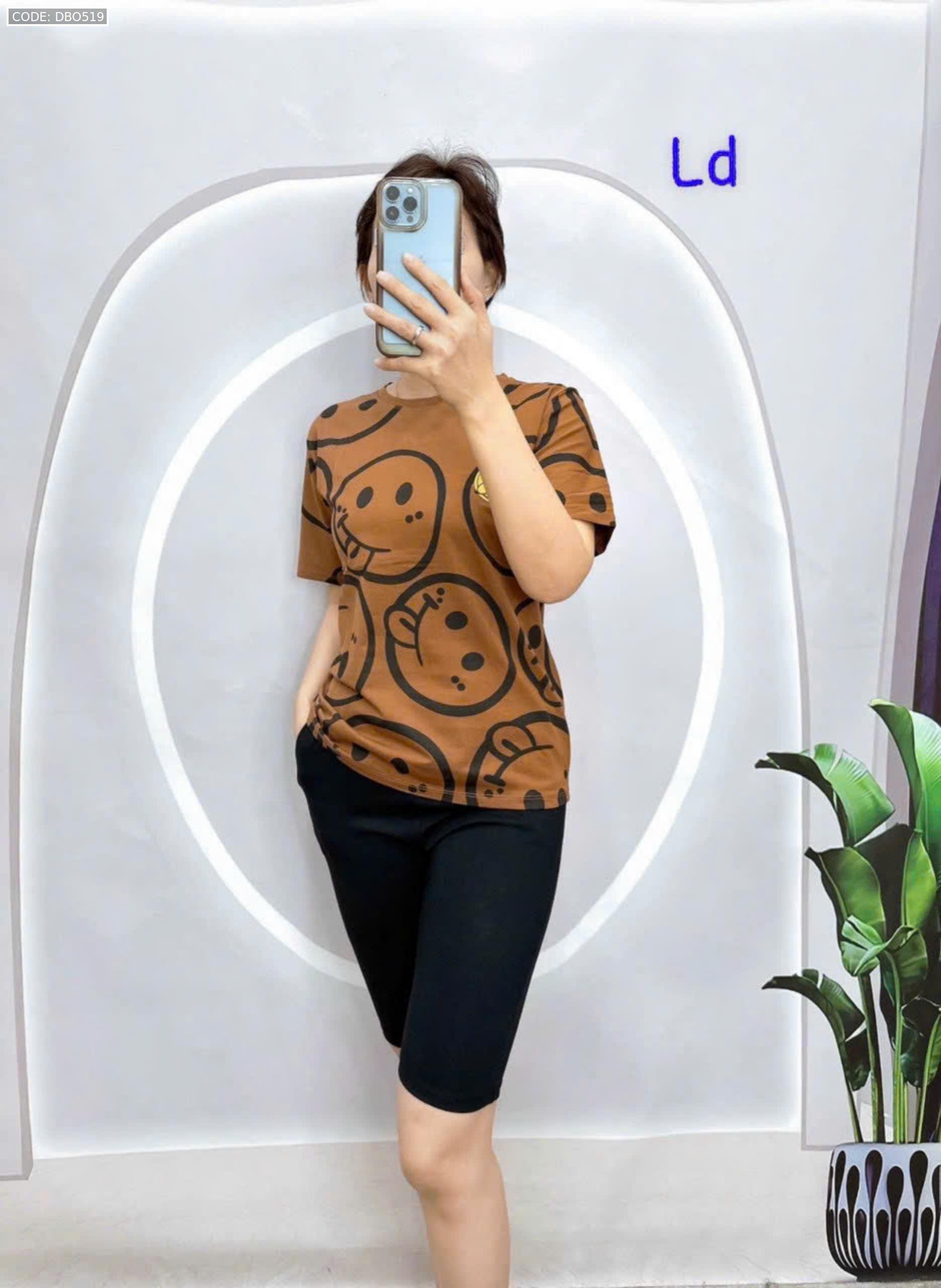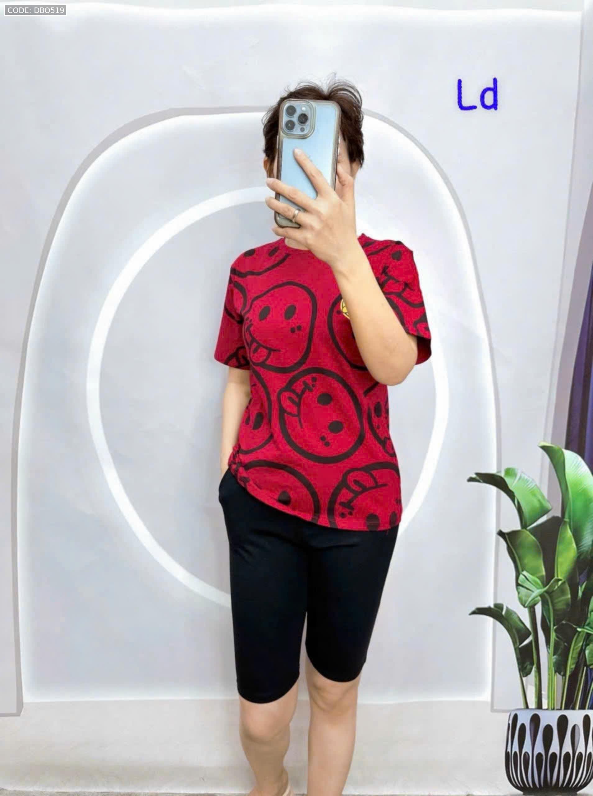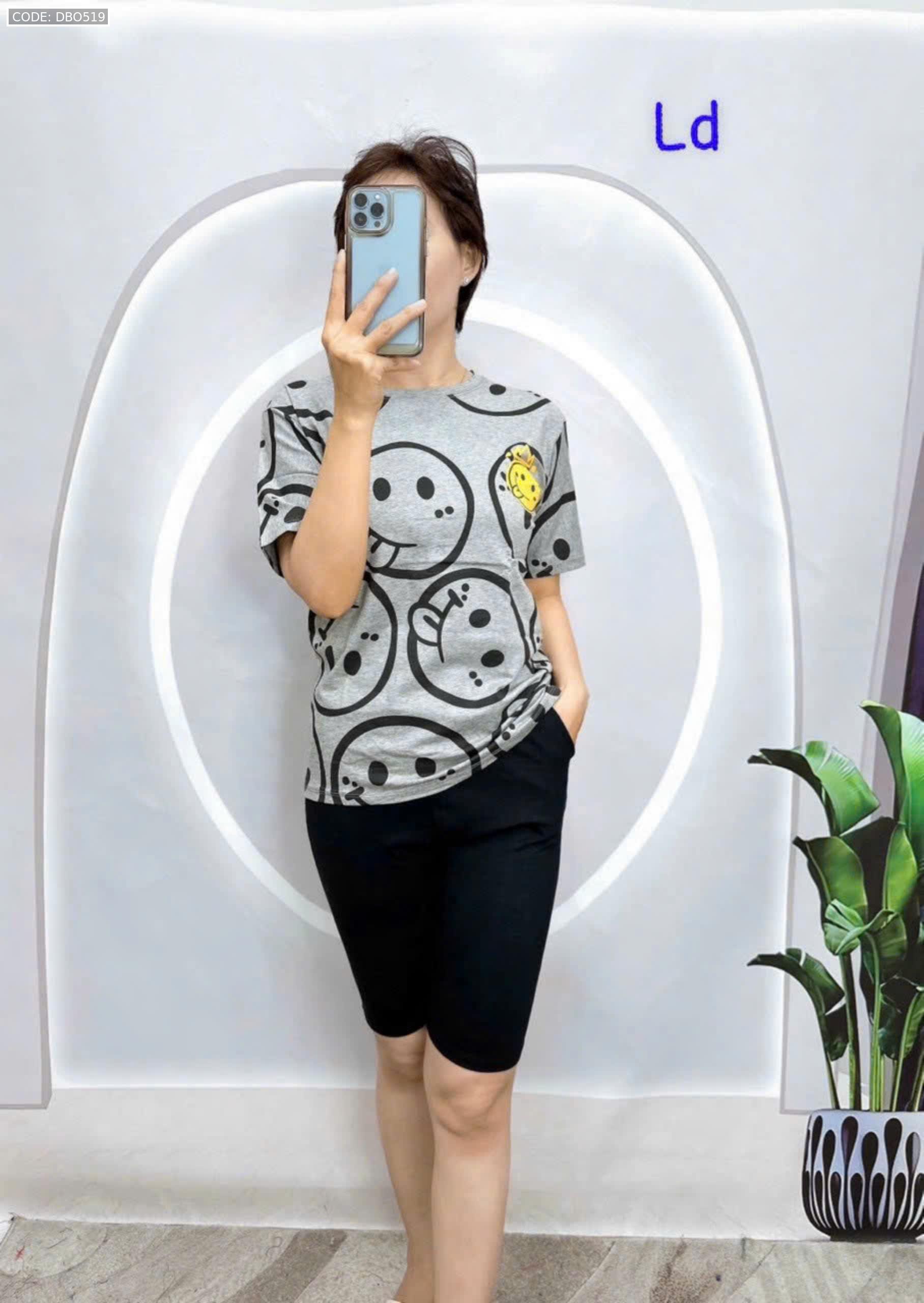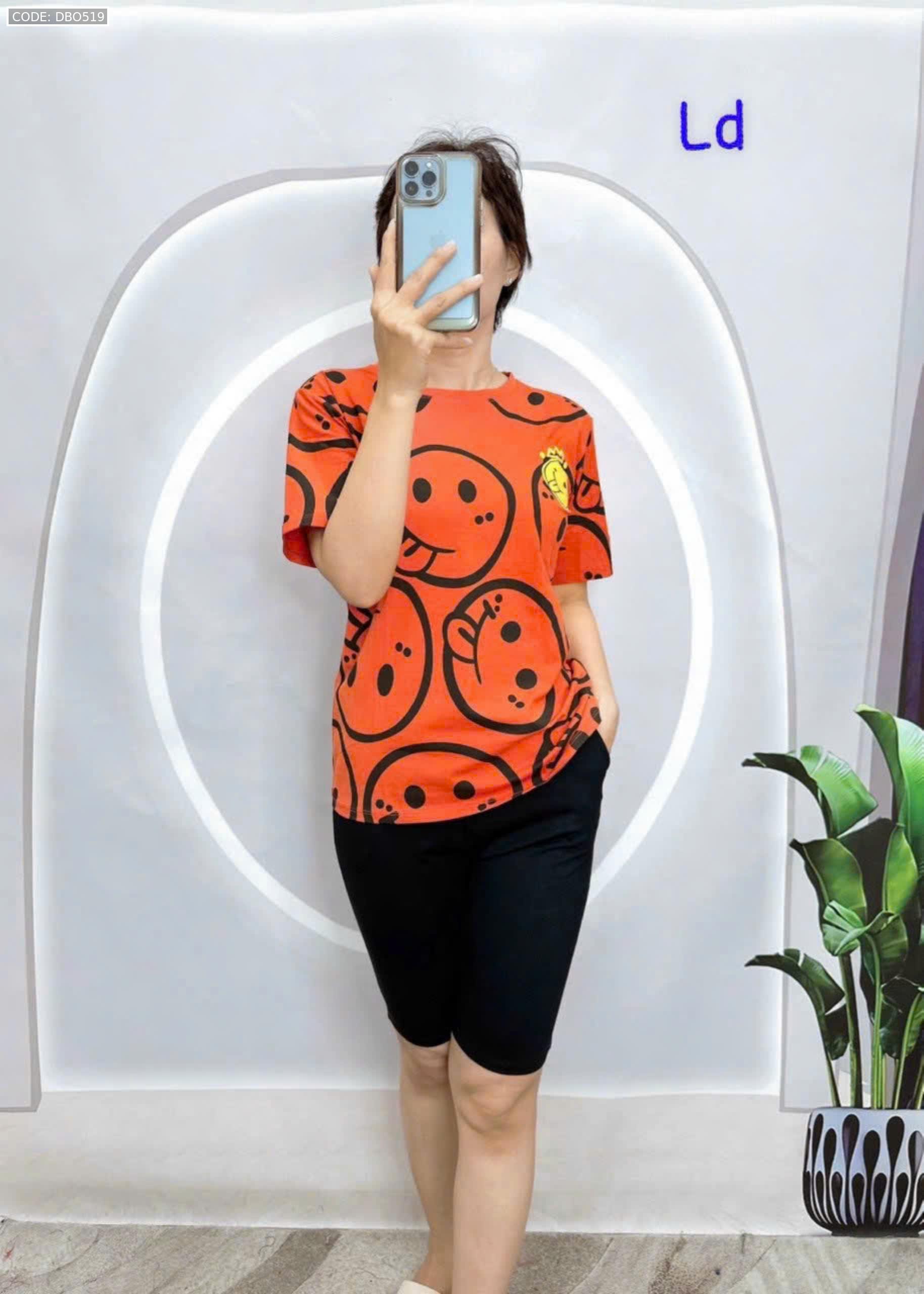 Đồ bộ áo thun quần lửng đen in mặt cười