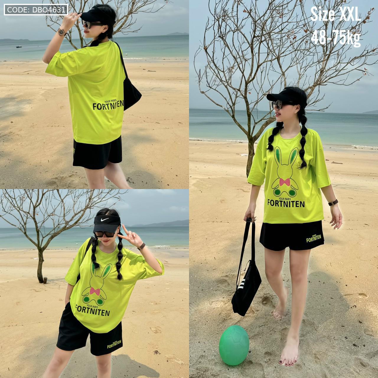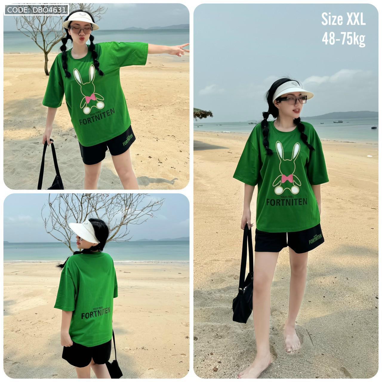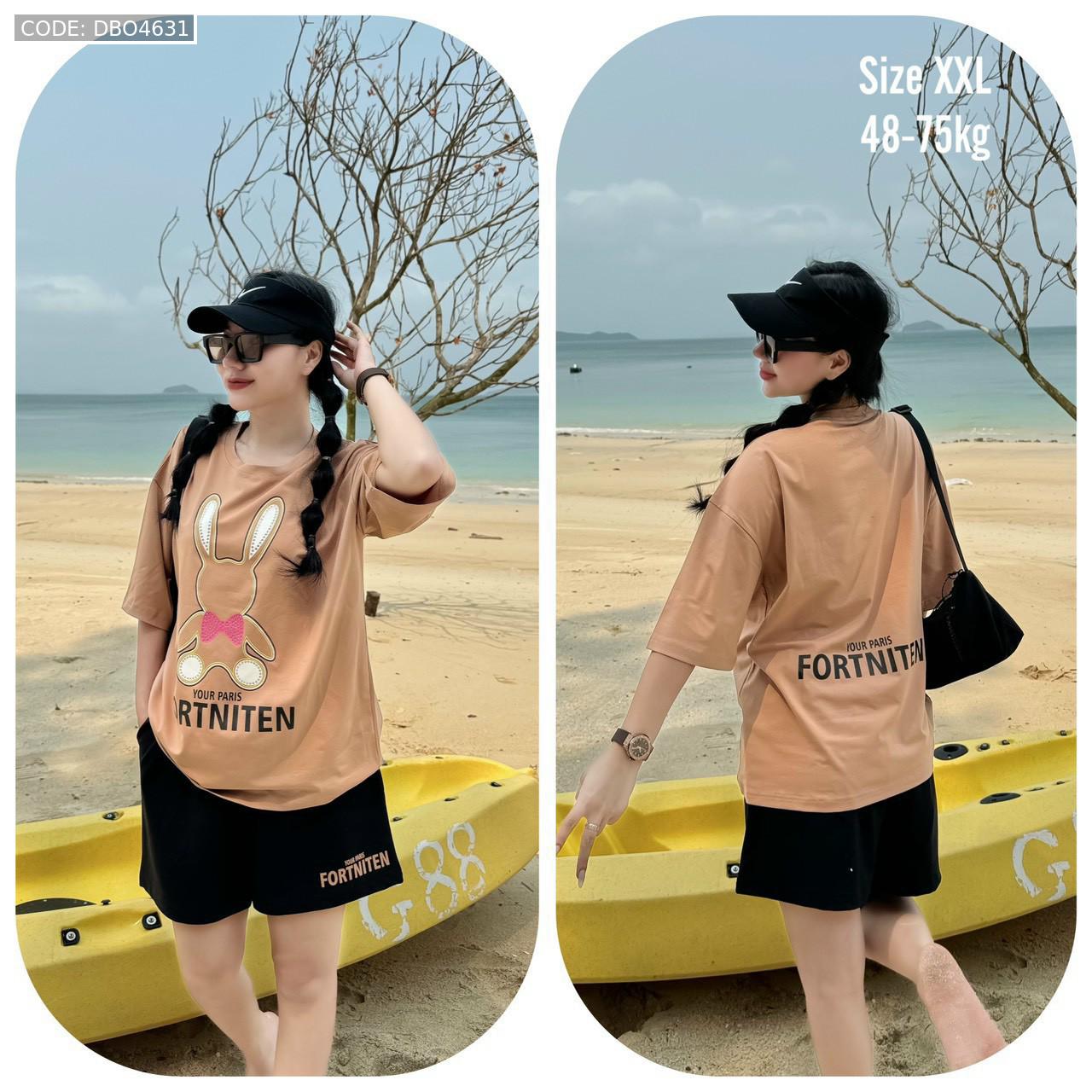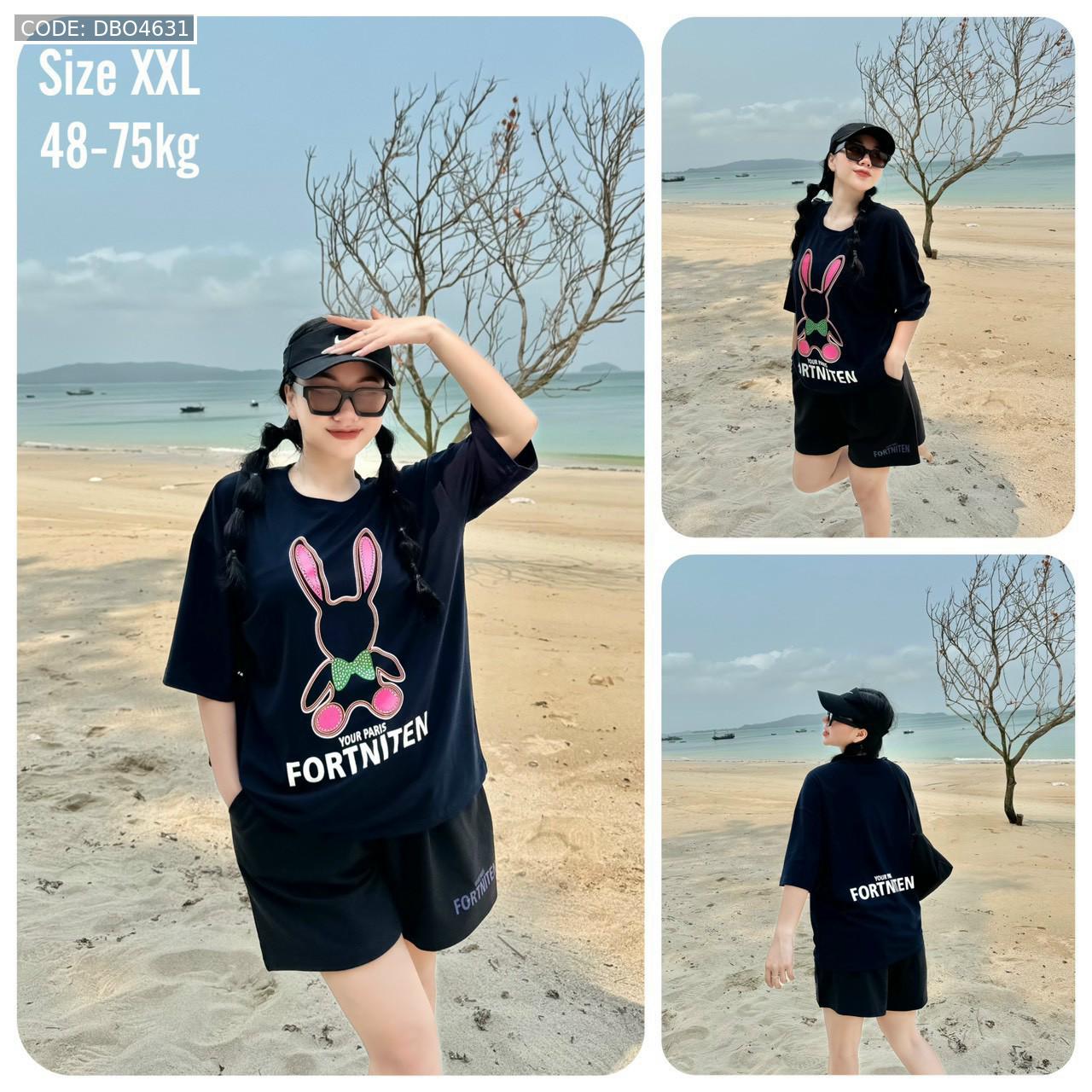 Đồ bộ big size 48- 75 quần đùi áo tay ngắn in hình con thỏ lớn