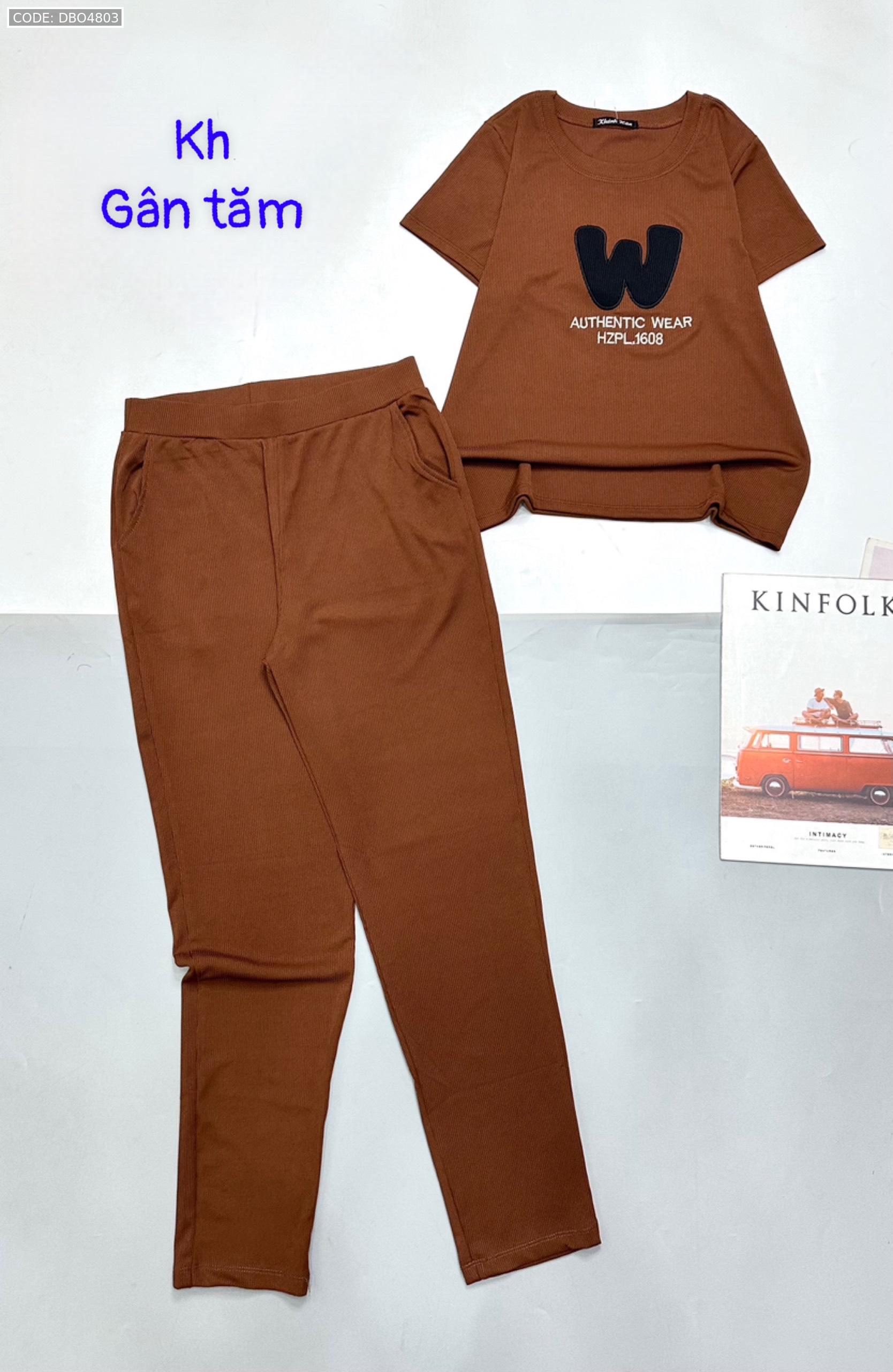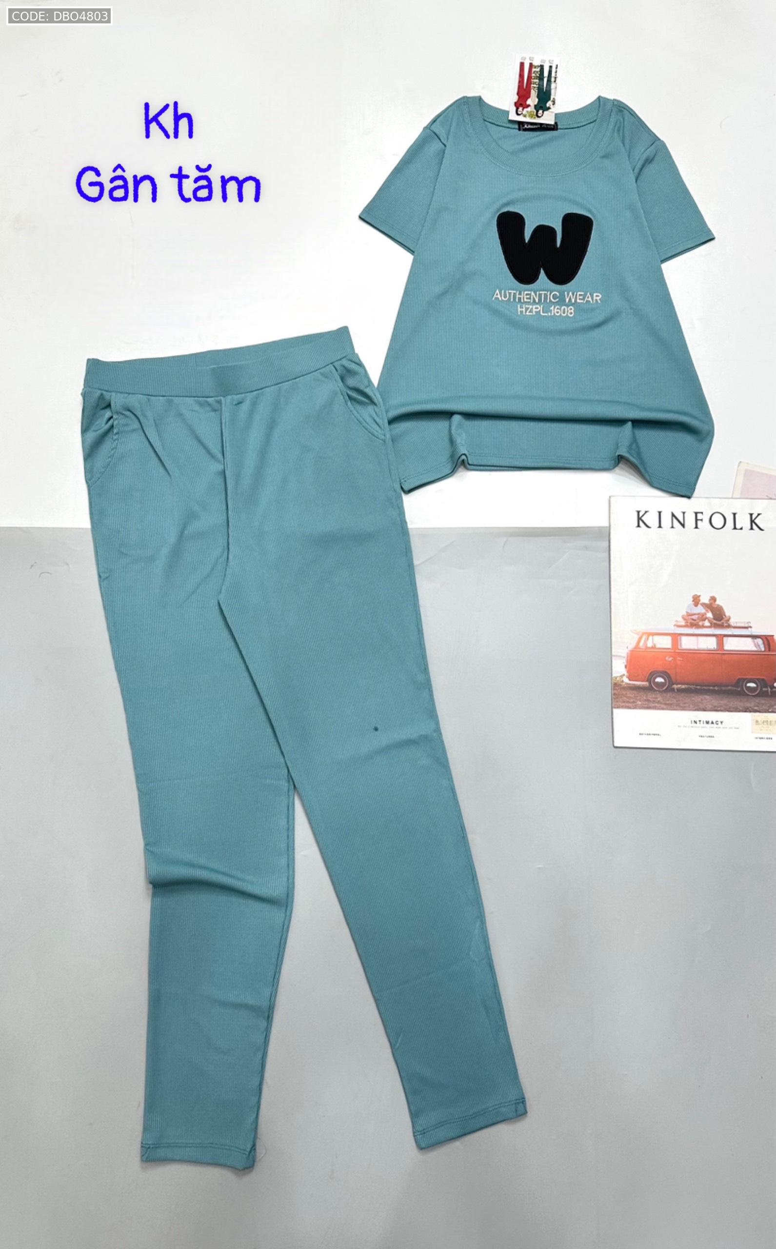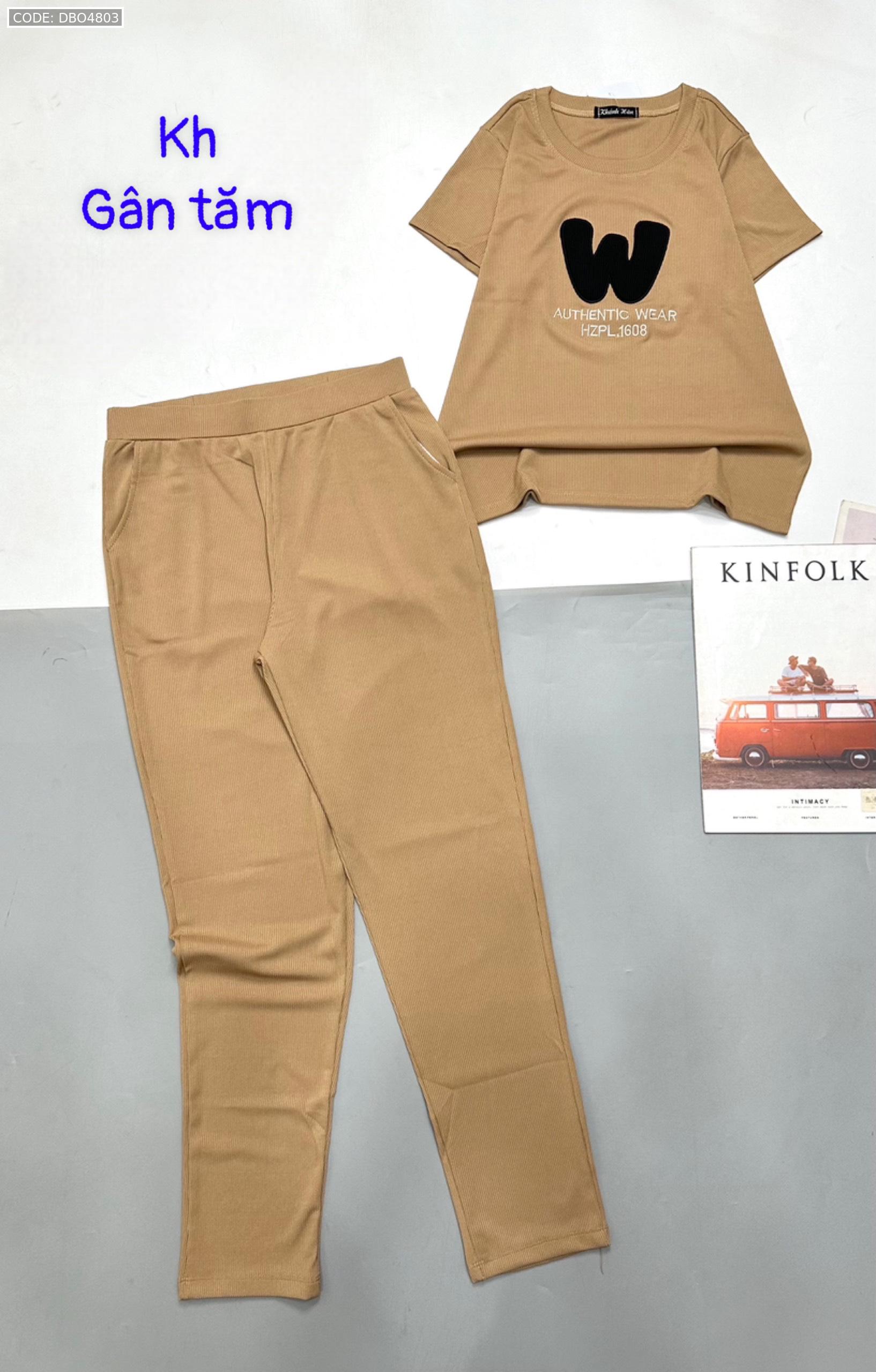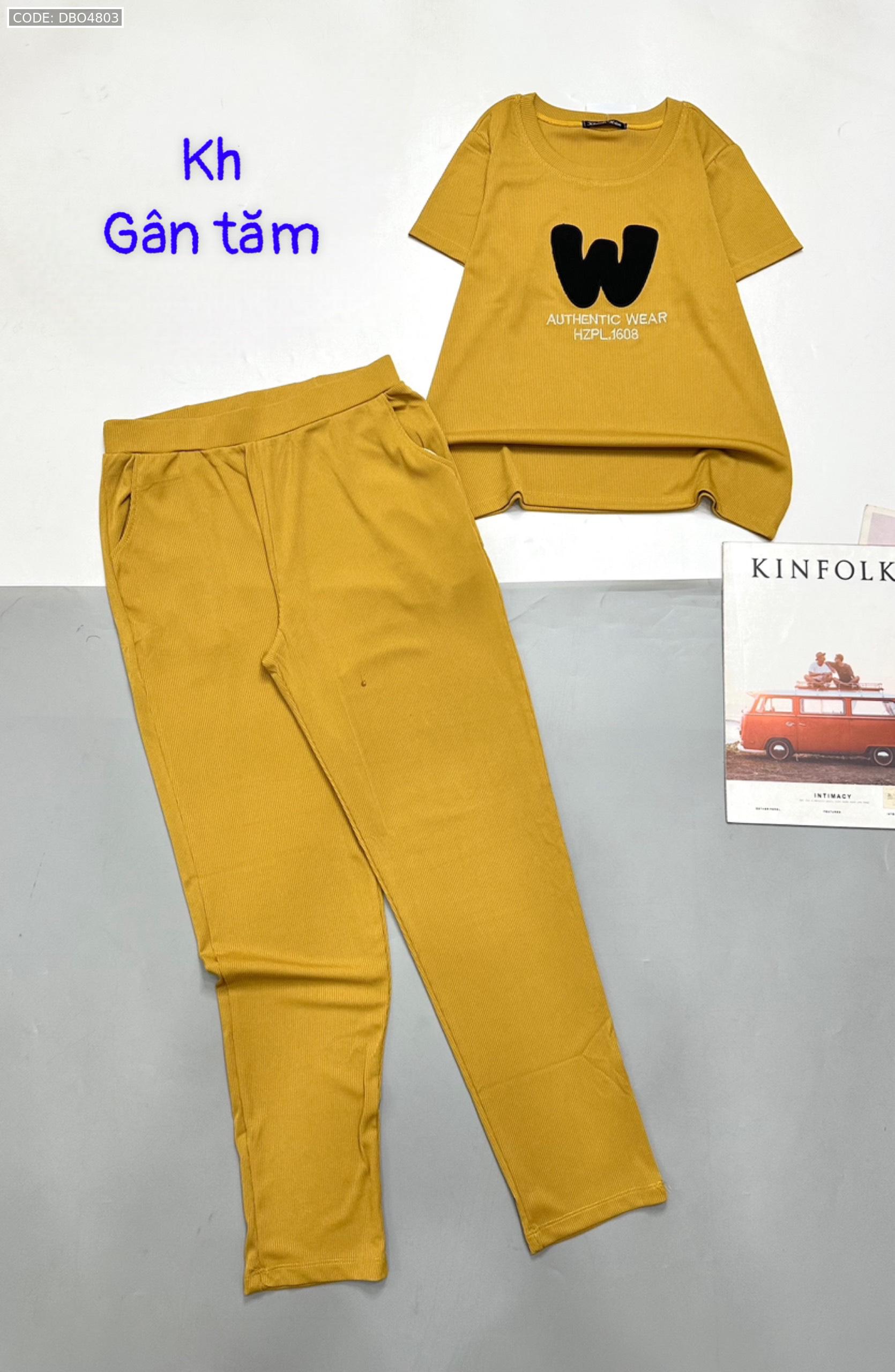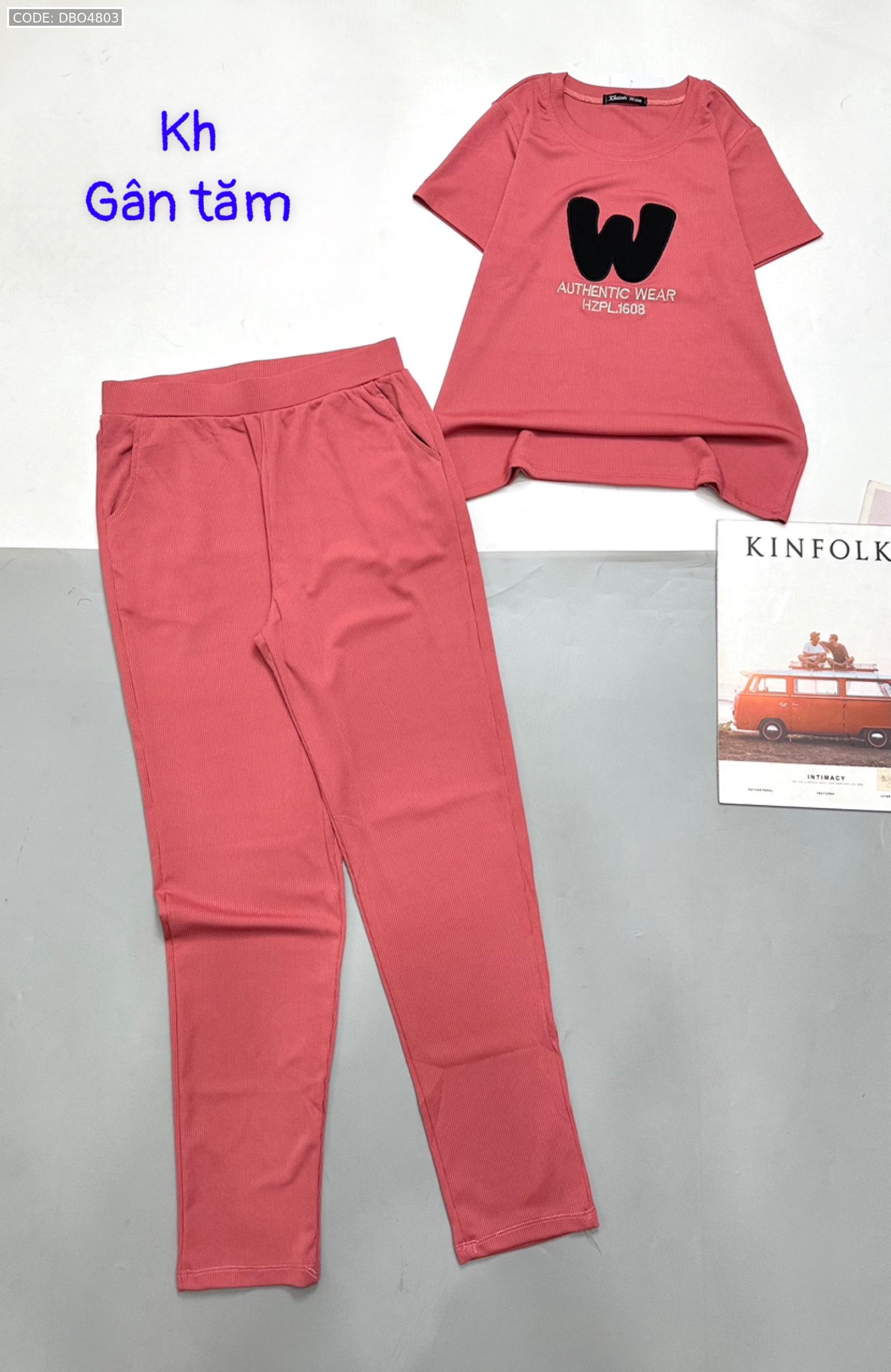 Đồ bộ gân tăm quần dài áo tay ngắn in chữ W