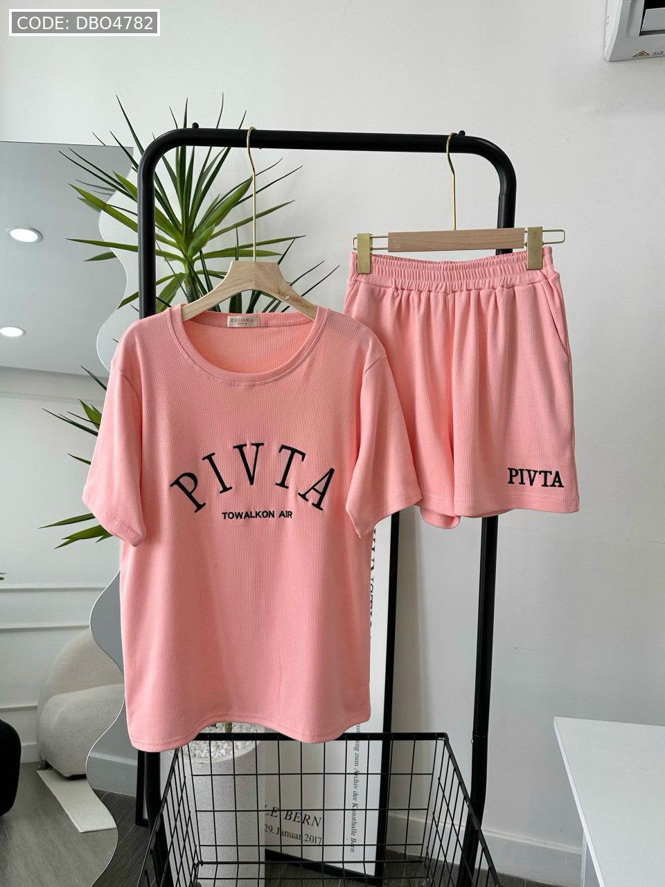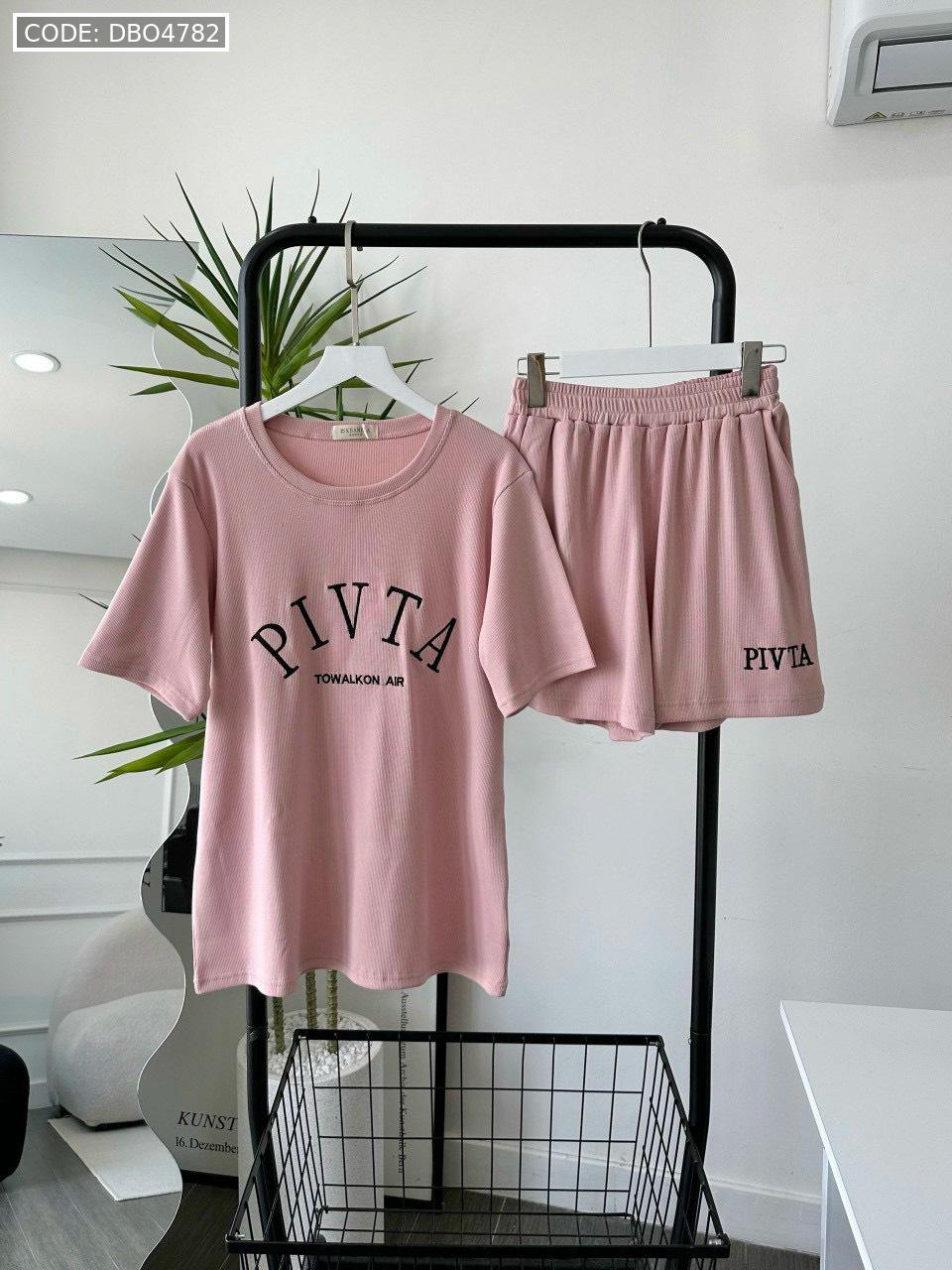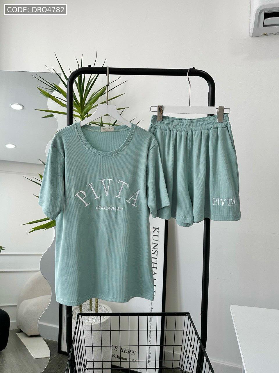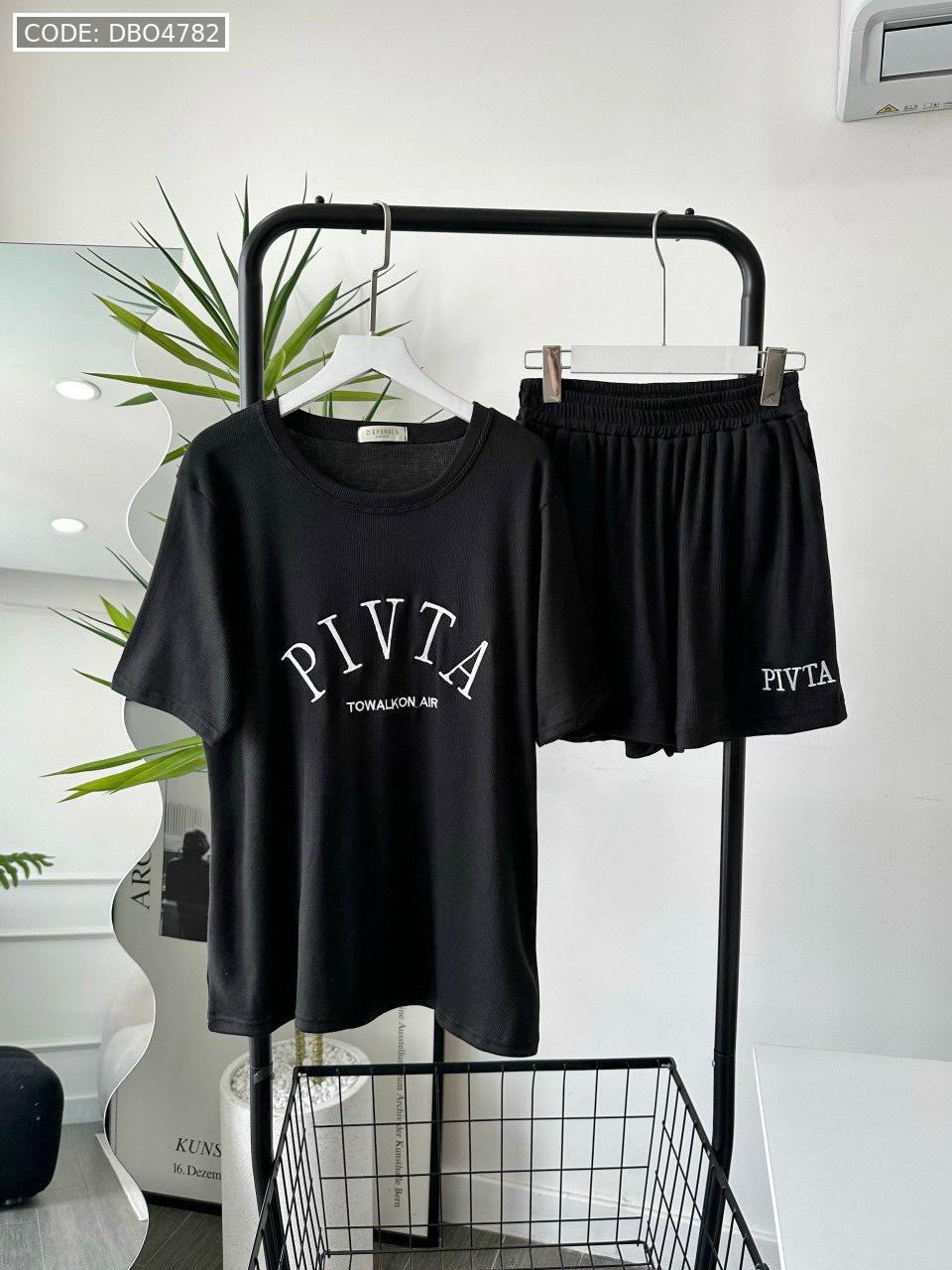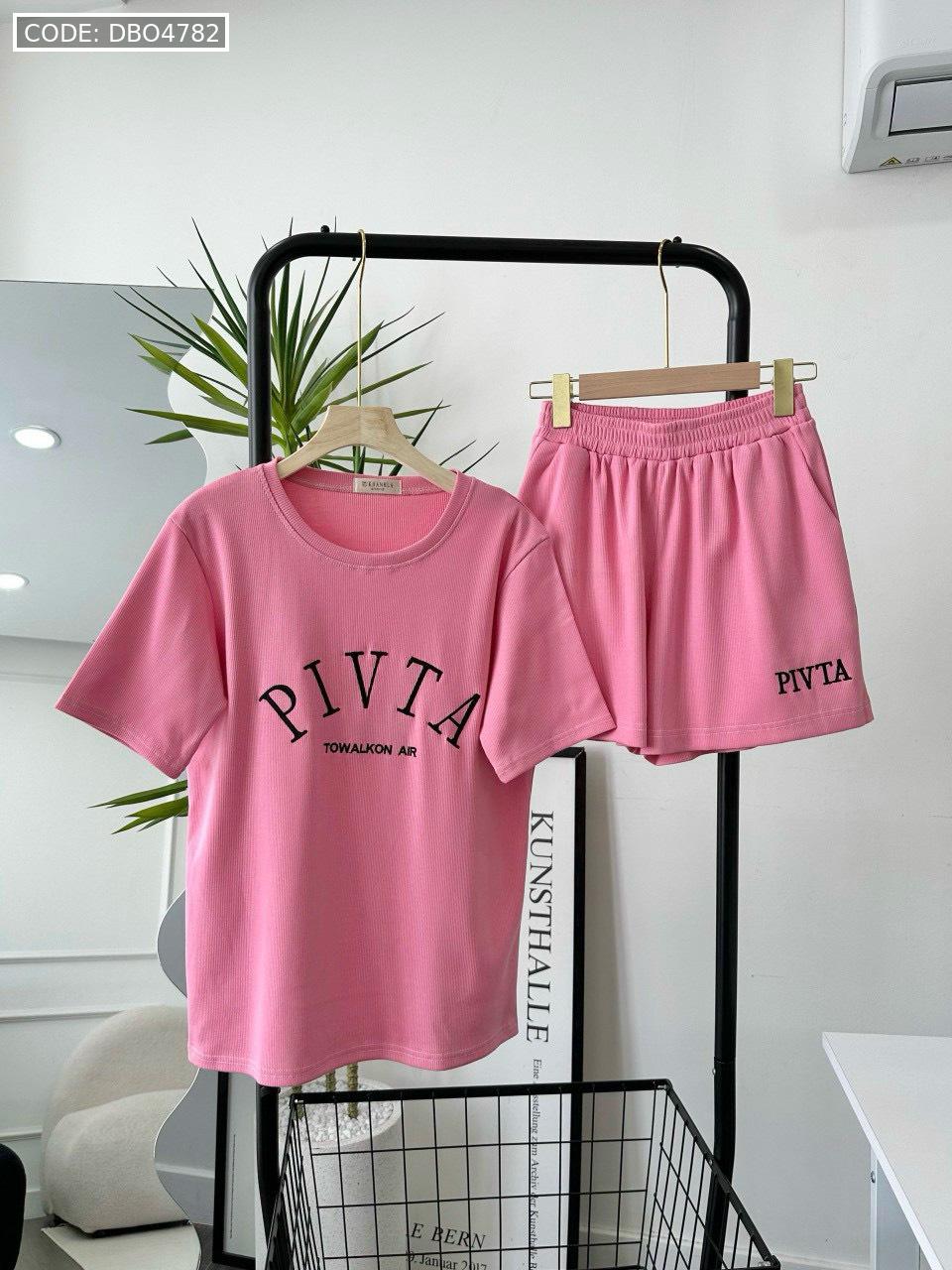 Đồ bộ gân tăm quần đùi áo tay ngắn in chữ PIVITA