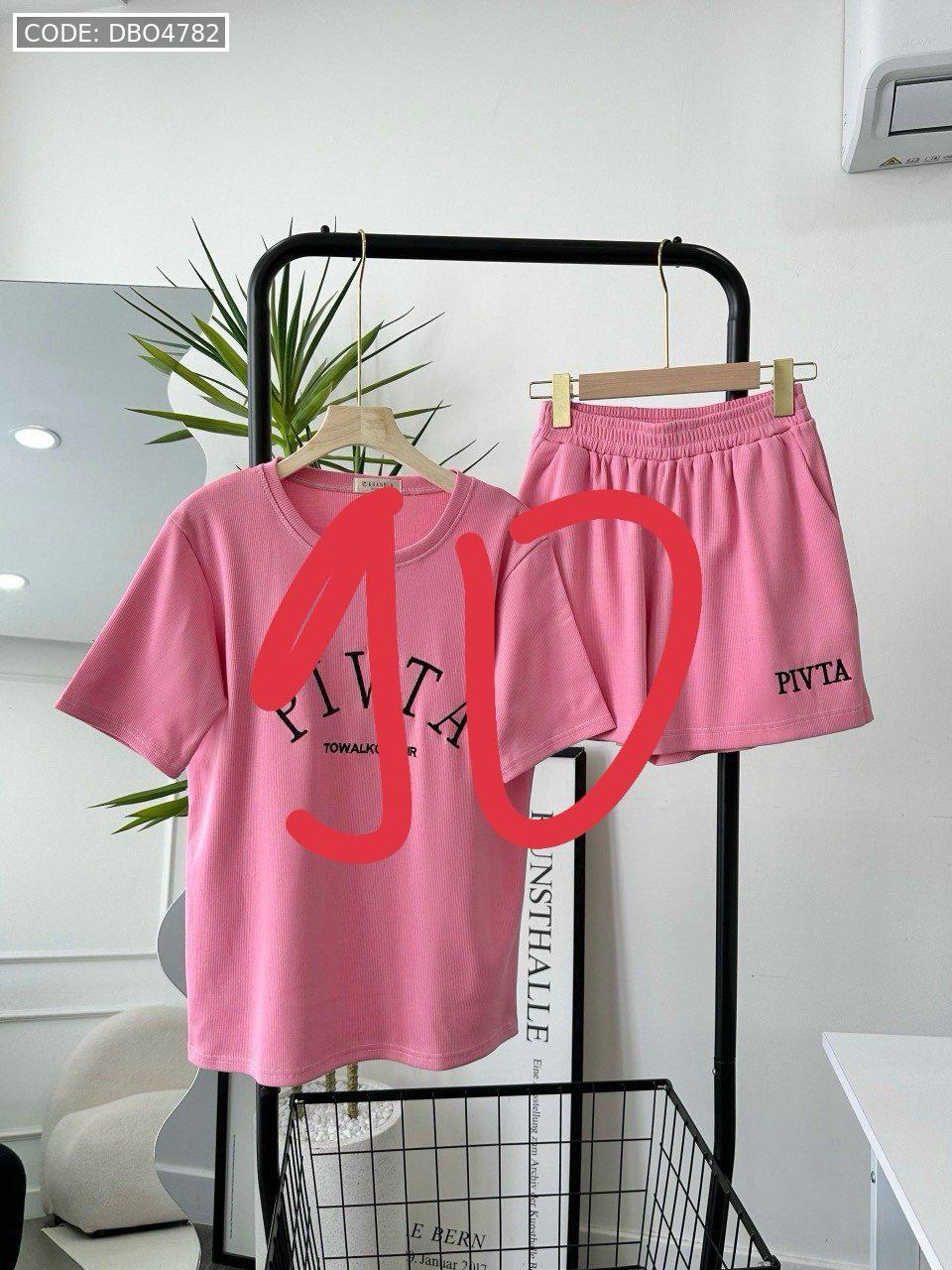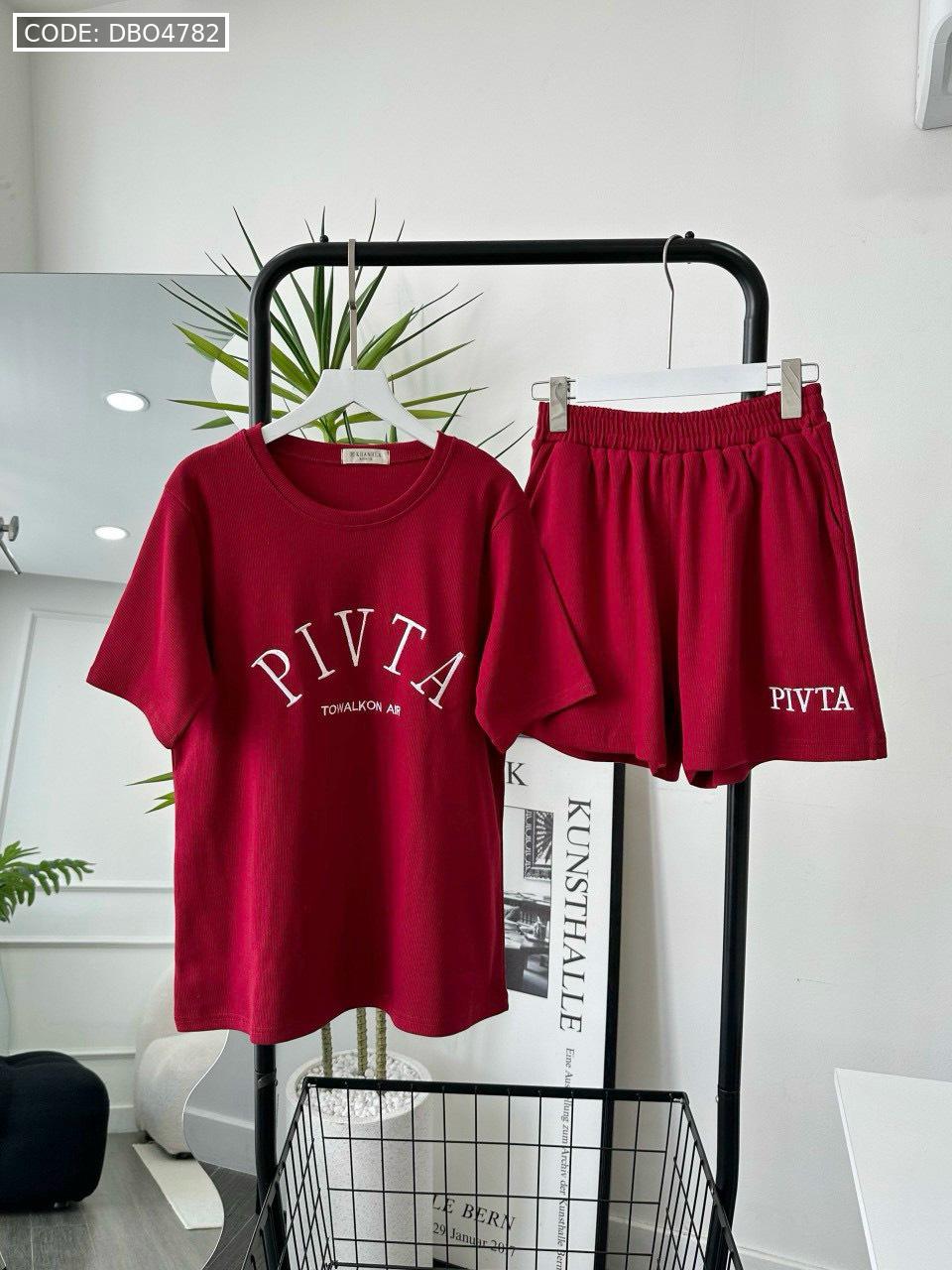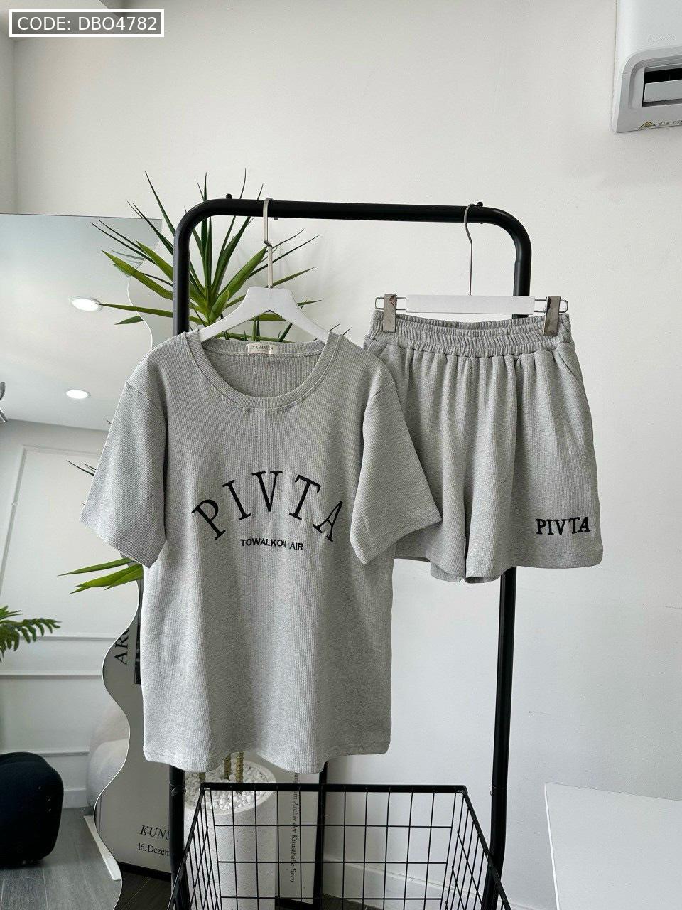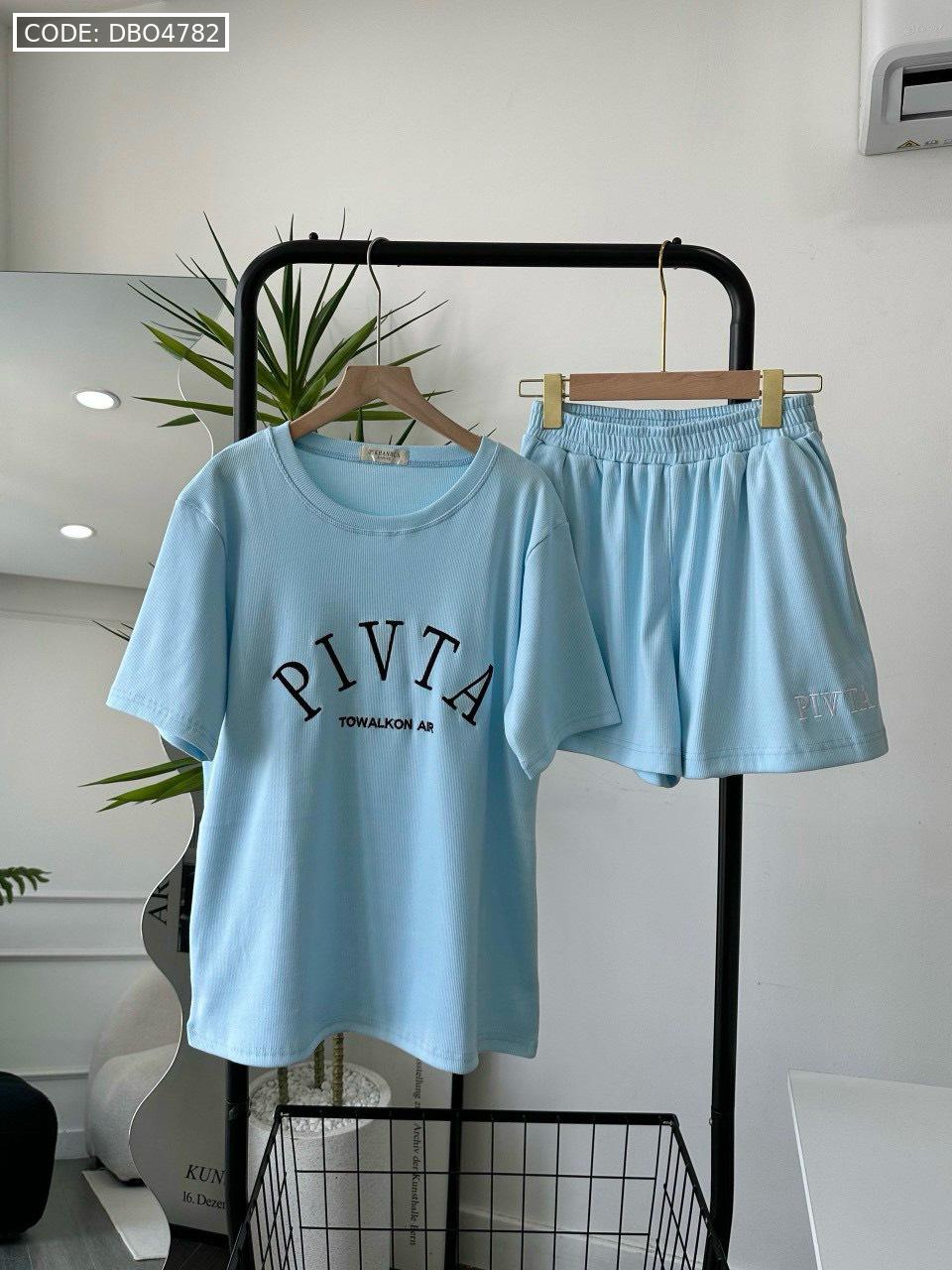 Đồ bộ gân tăm quần đùi áo tay ngắn in chữ PIVITA