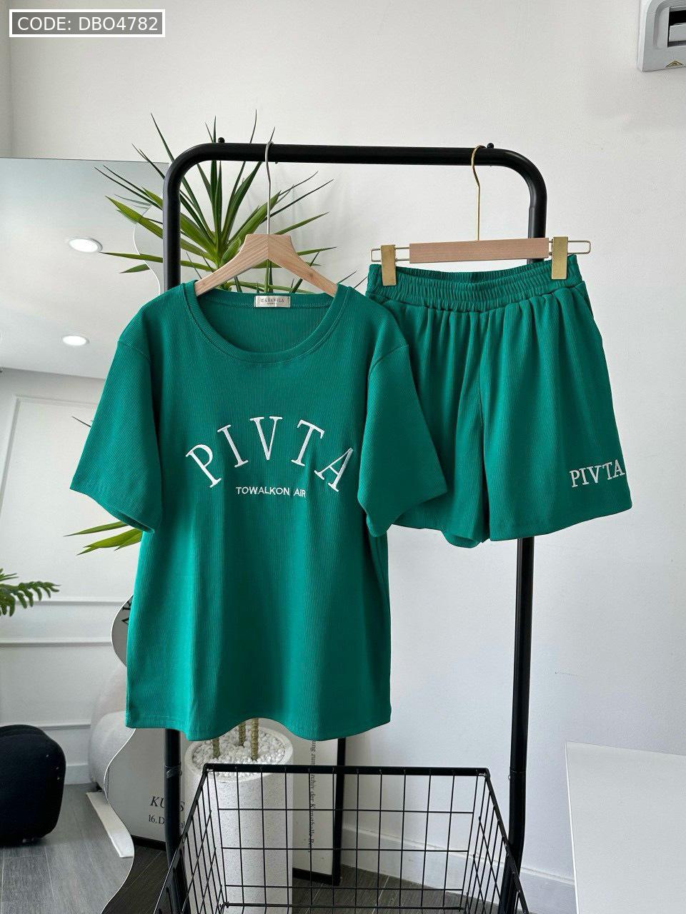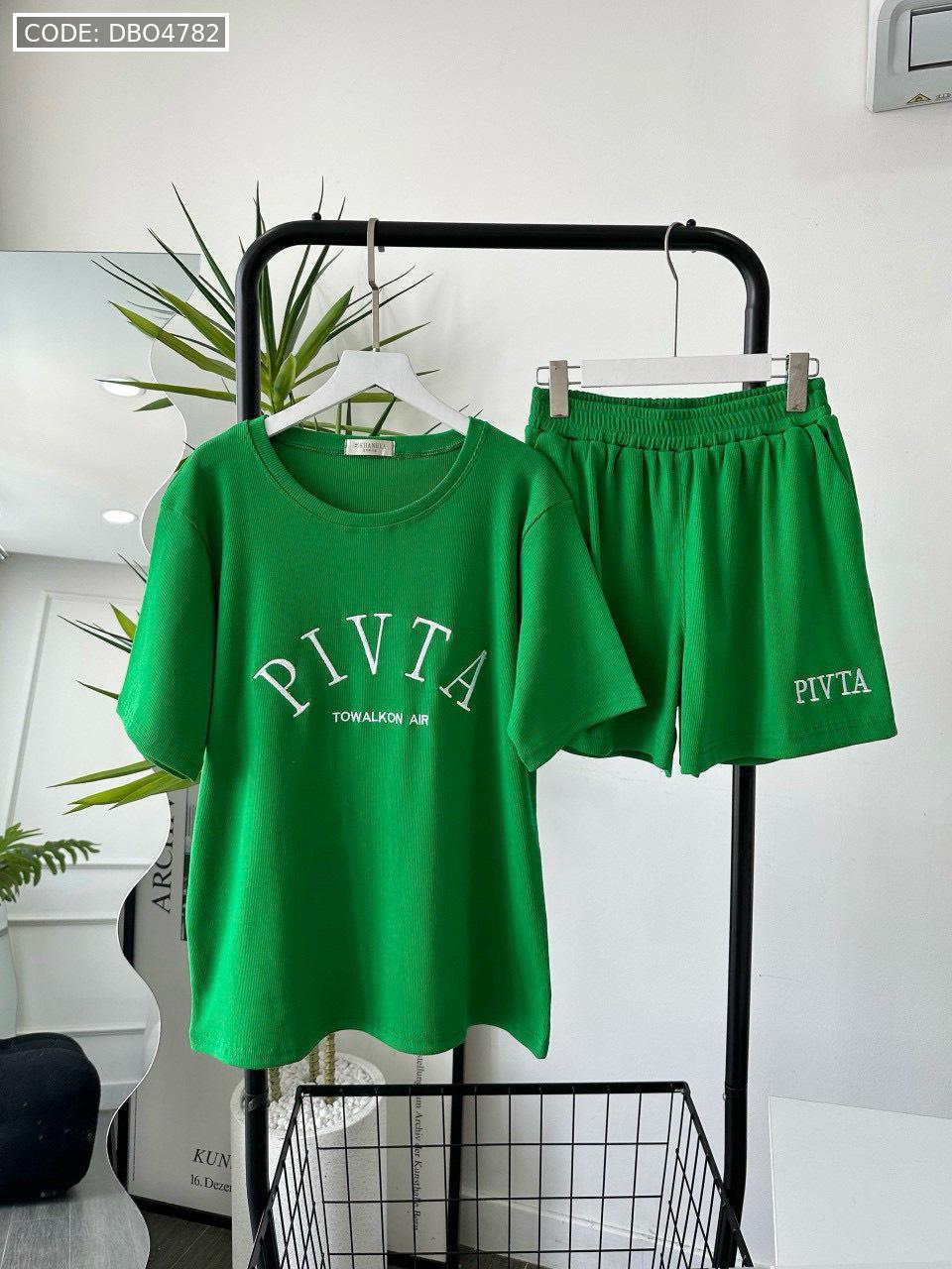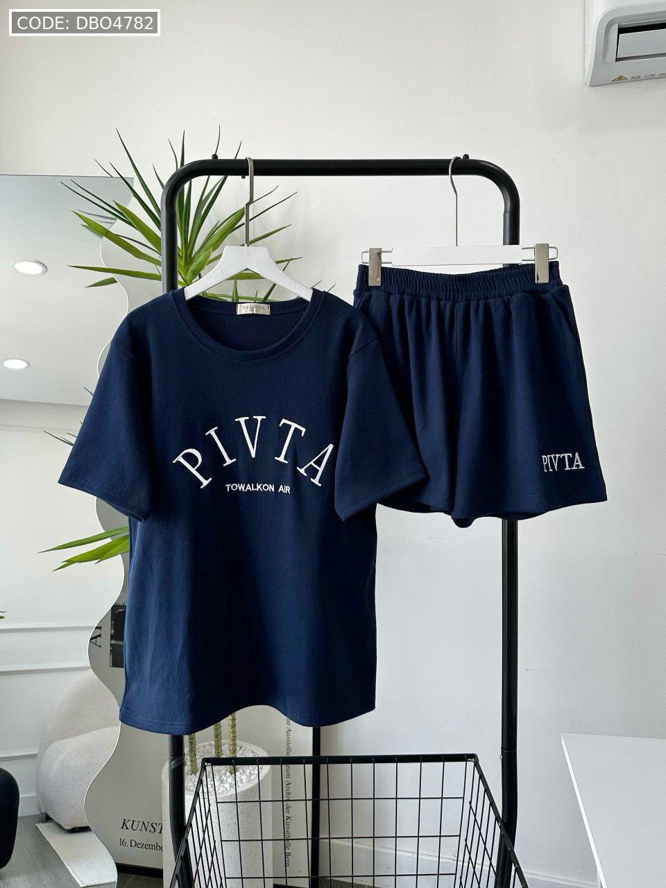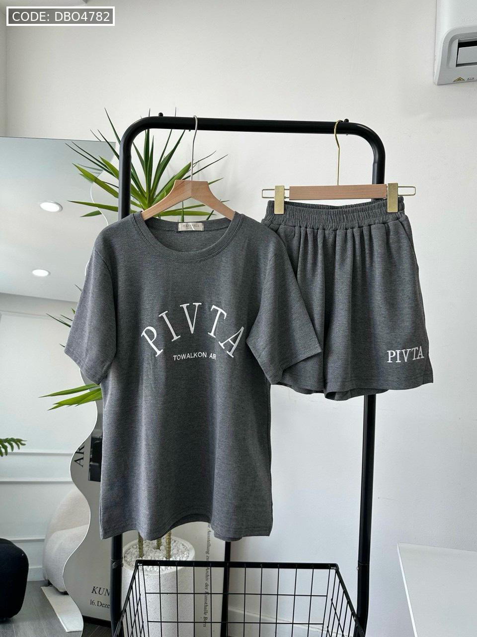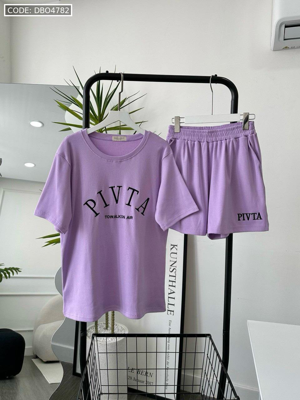 Đồ bộ gân tăm quần đùi áo tay ngắn in chữ PIVITA