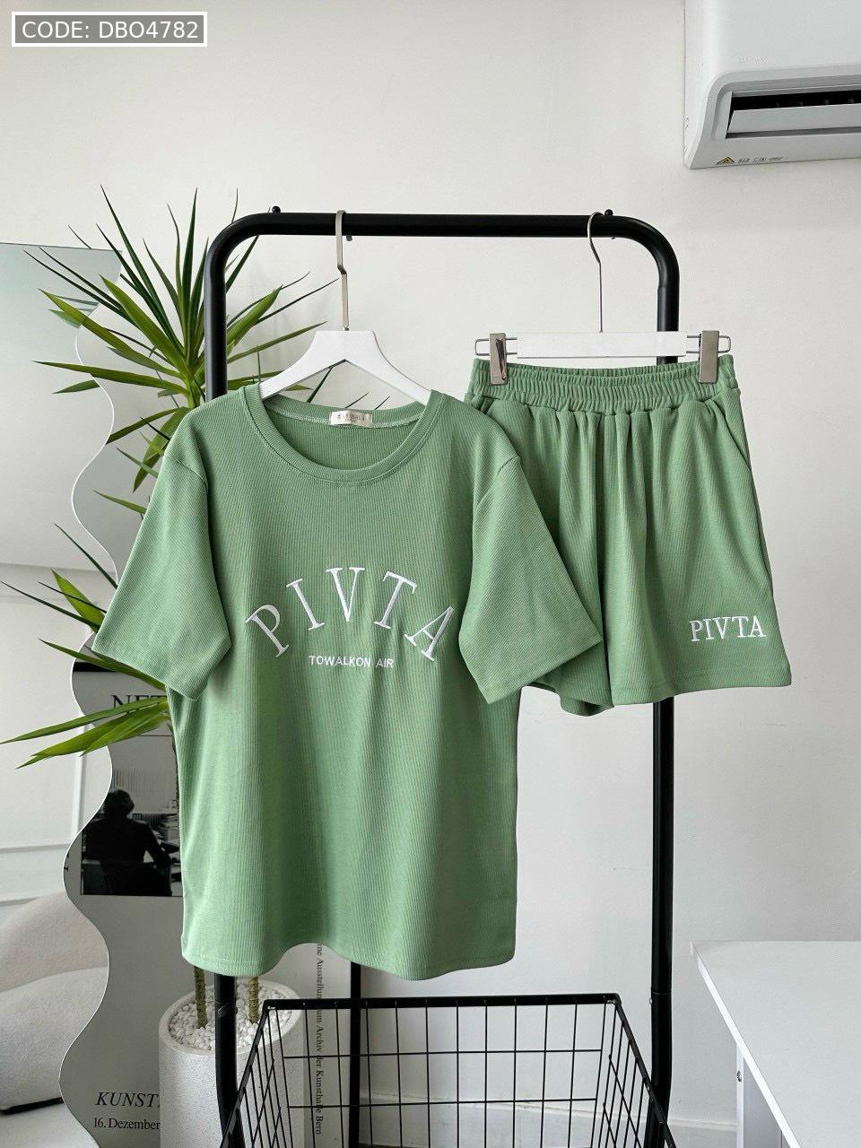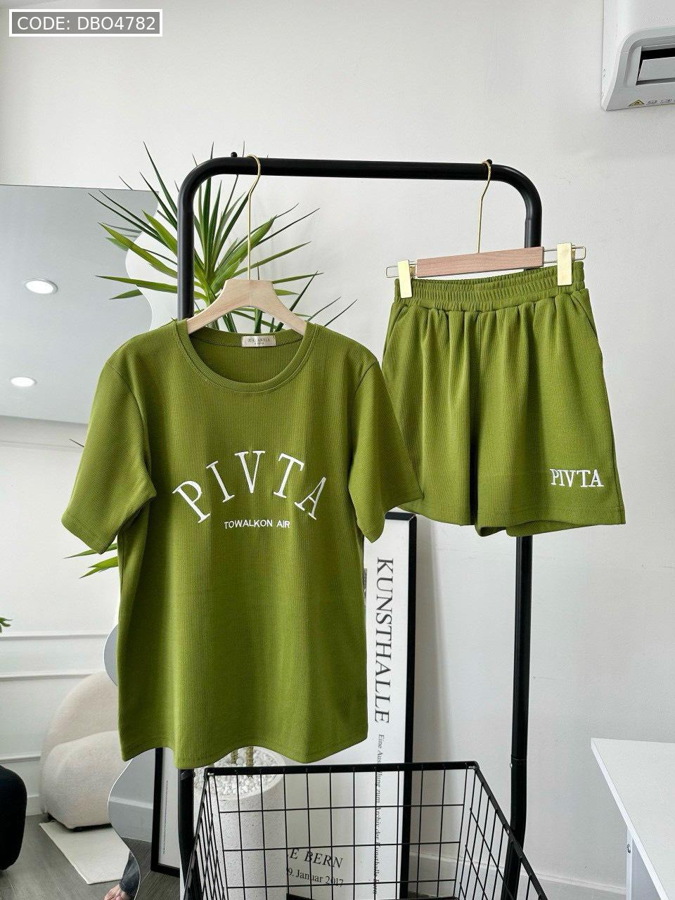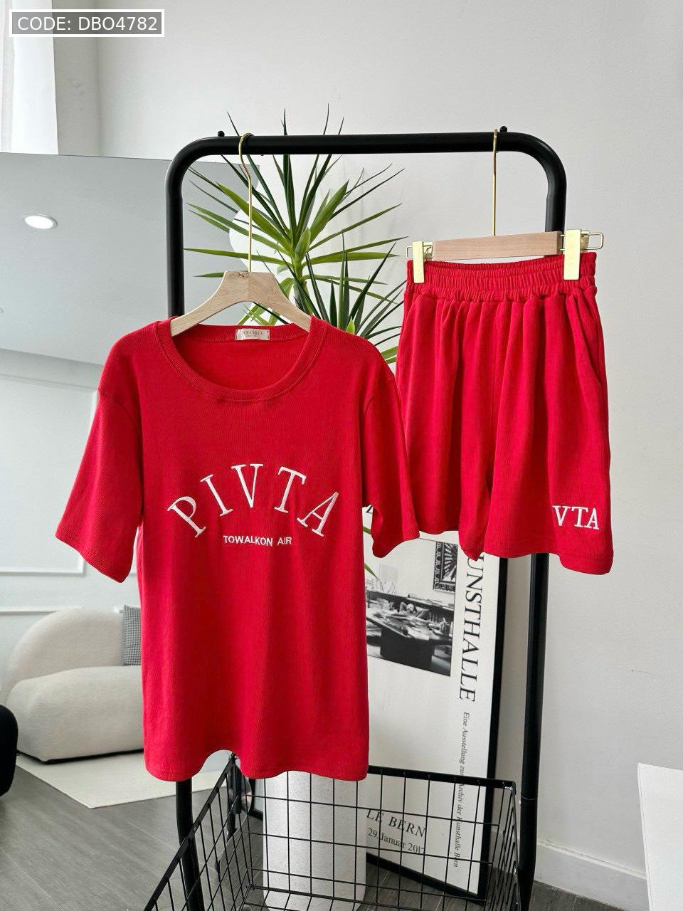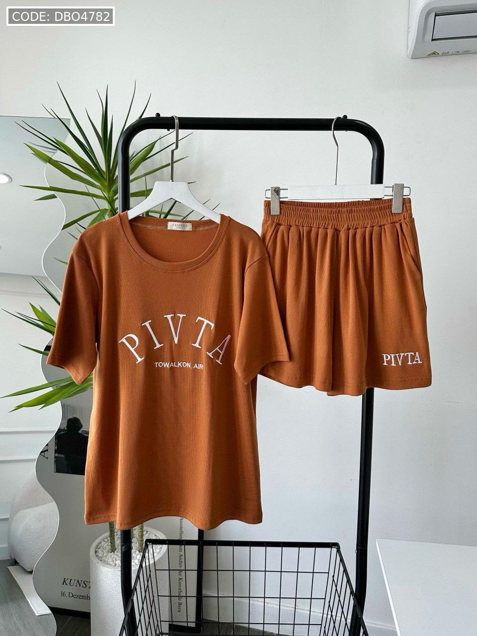 Đồ bộ gân tăm quần đùi áo tay ngắn in chữ PIVITA