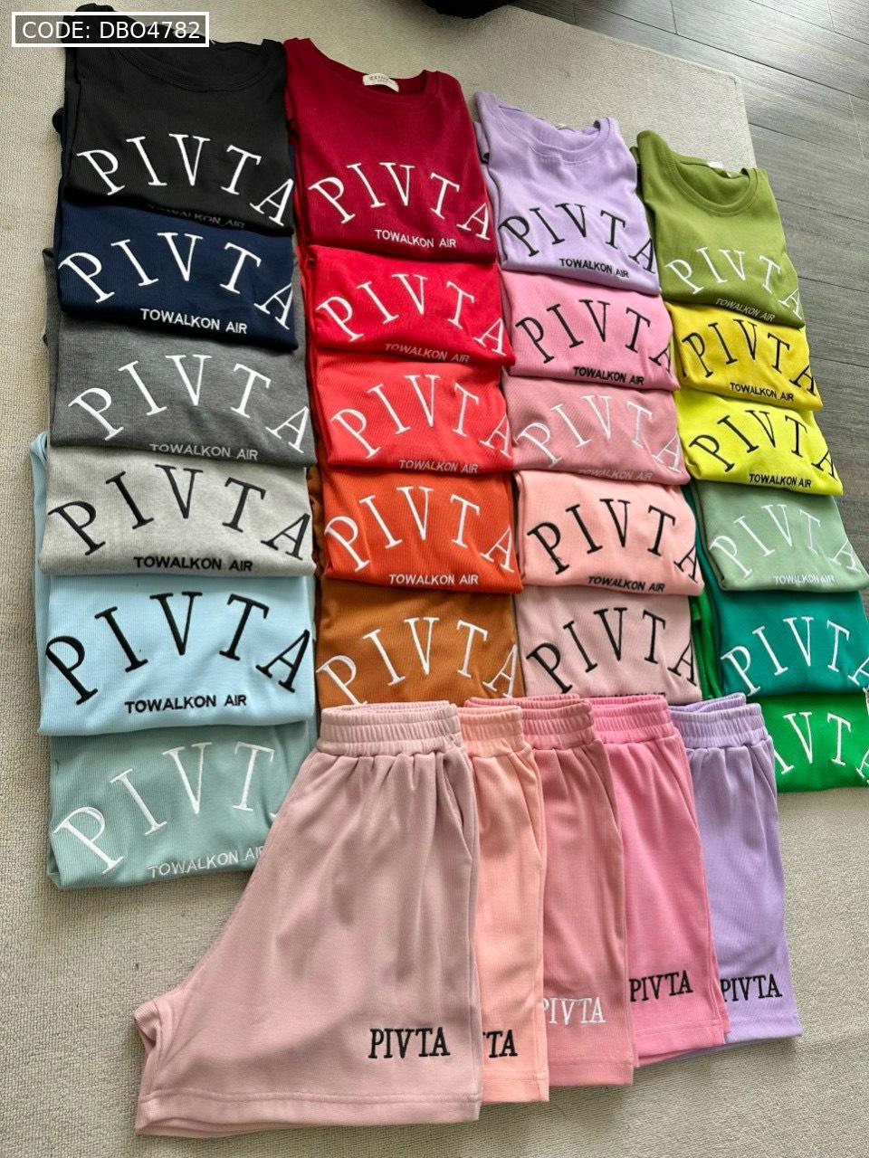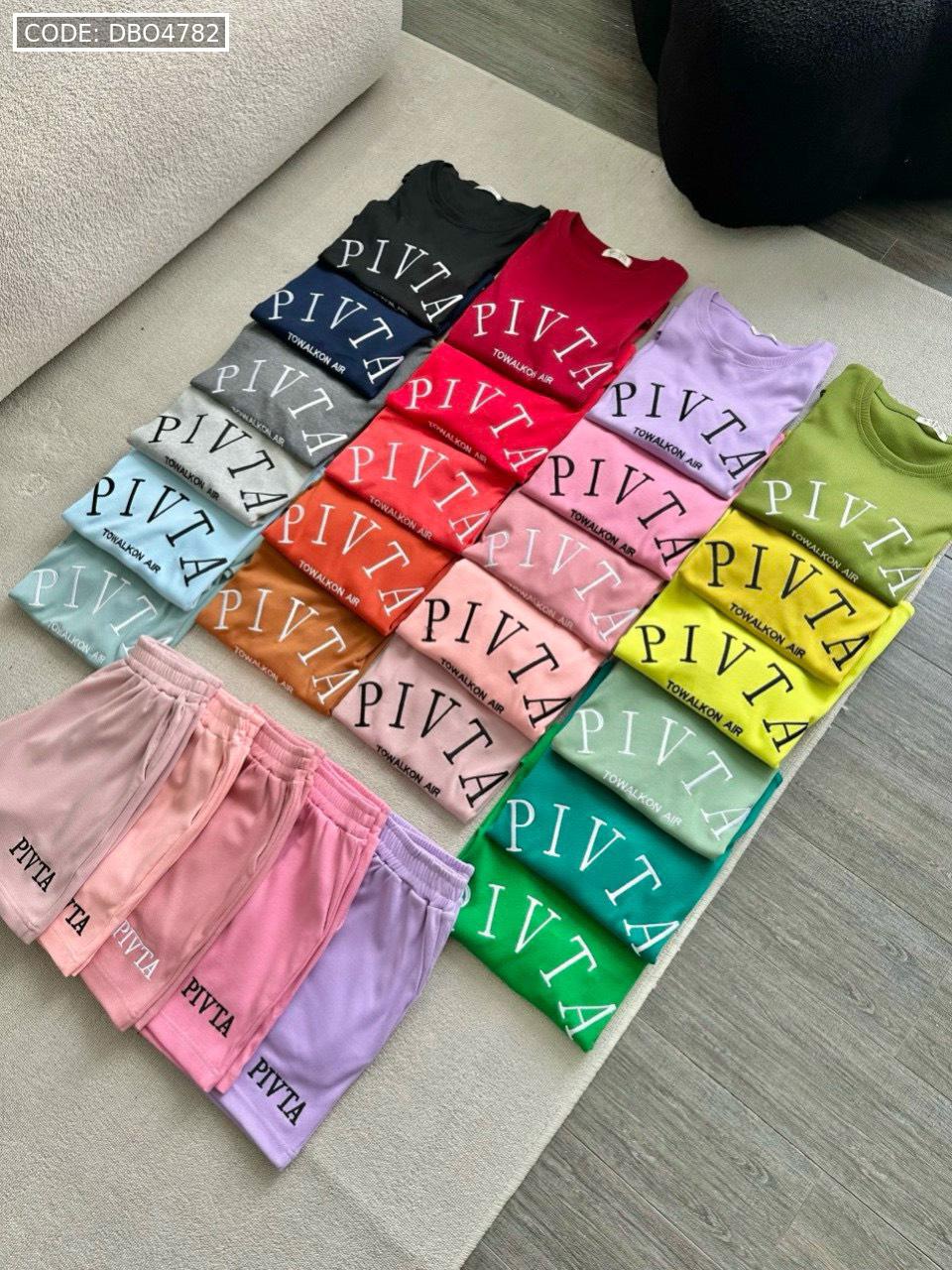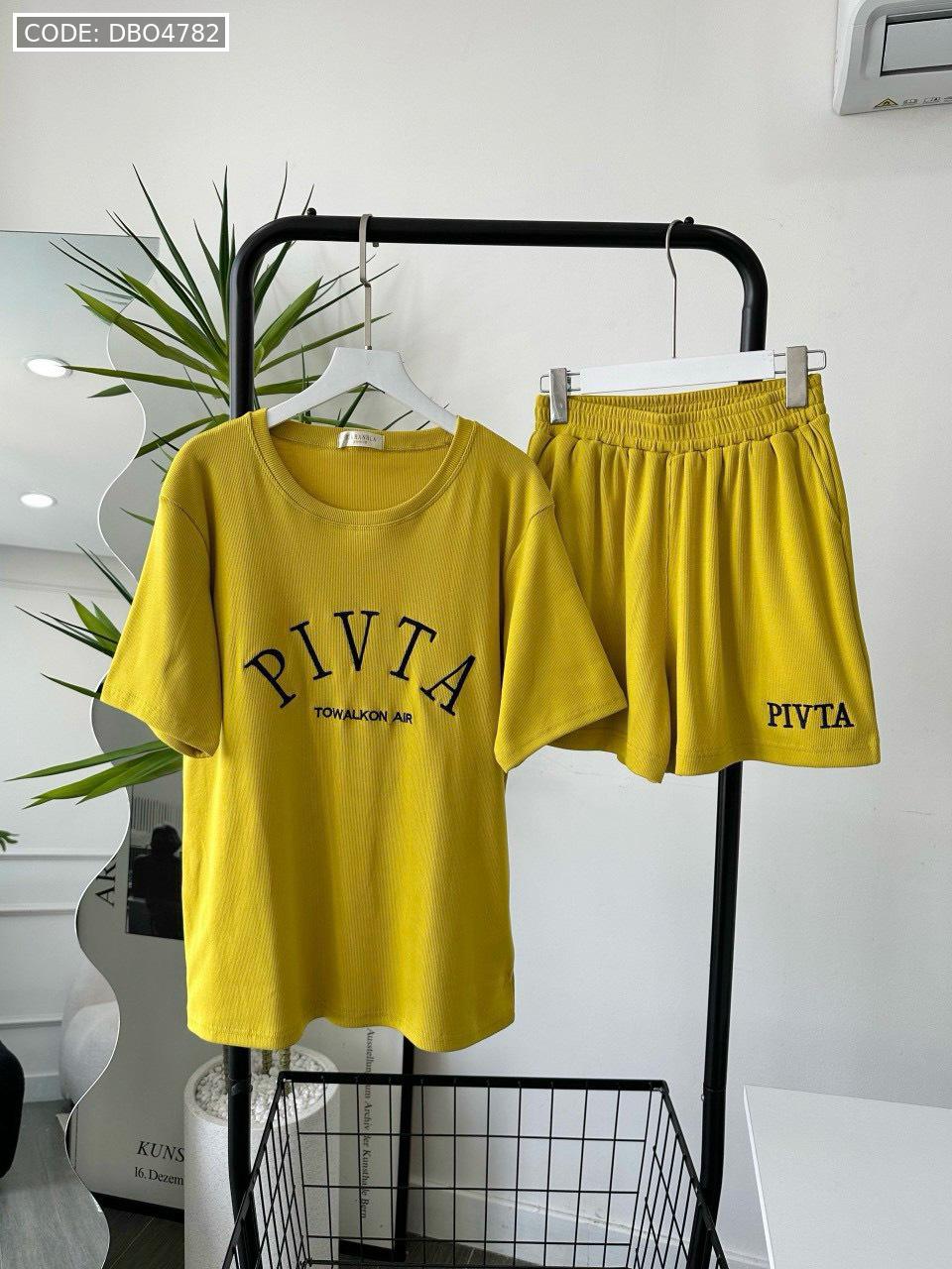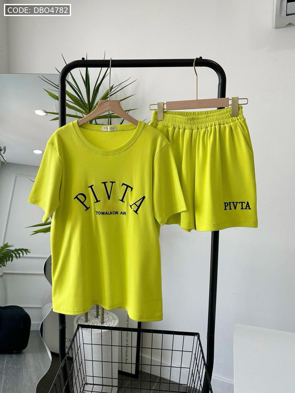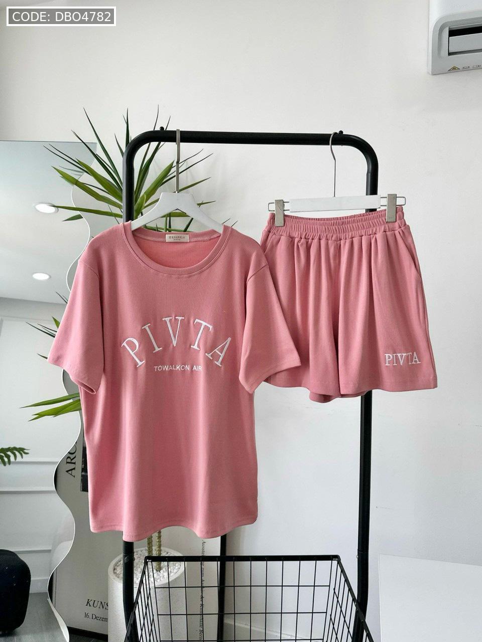 Đồ bộ gân tăm quần đùi áo tay ngắn in chữ PIVITA