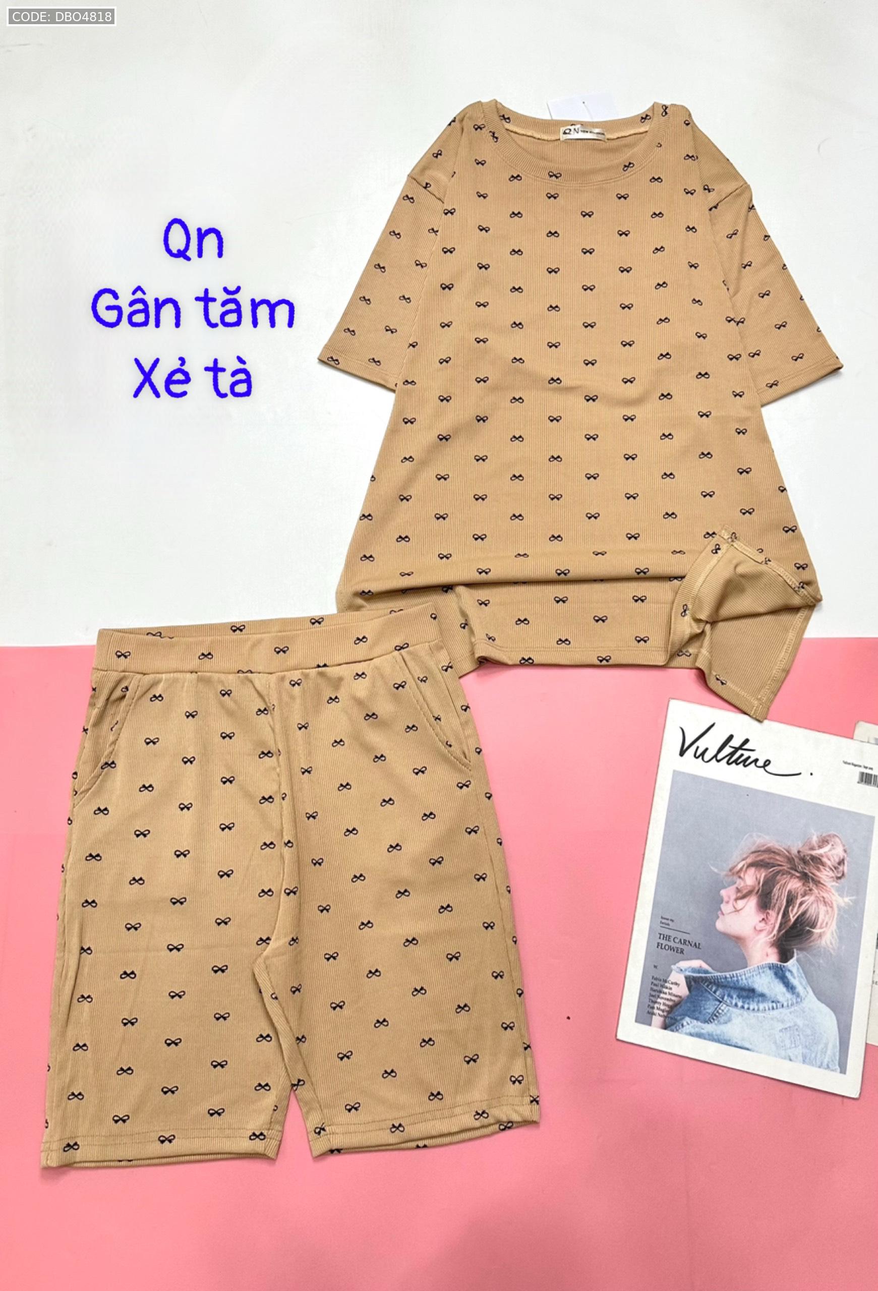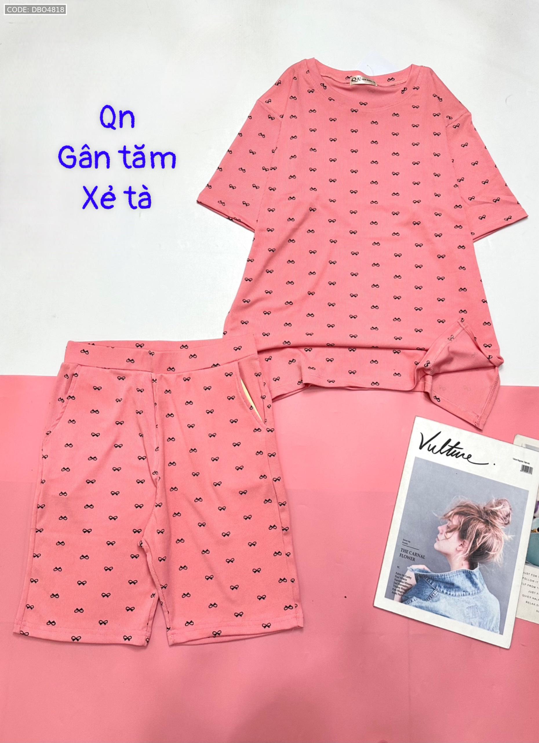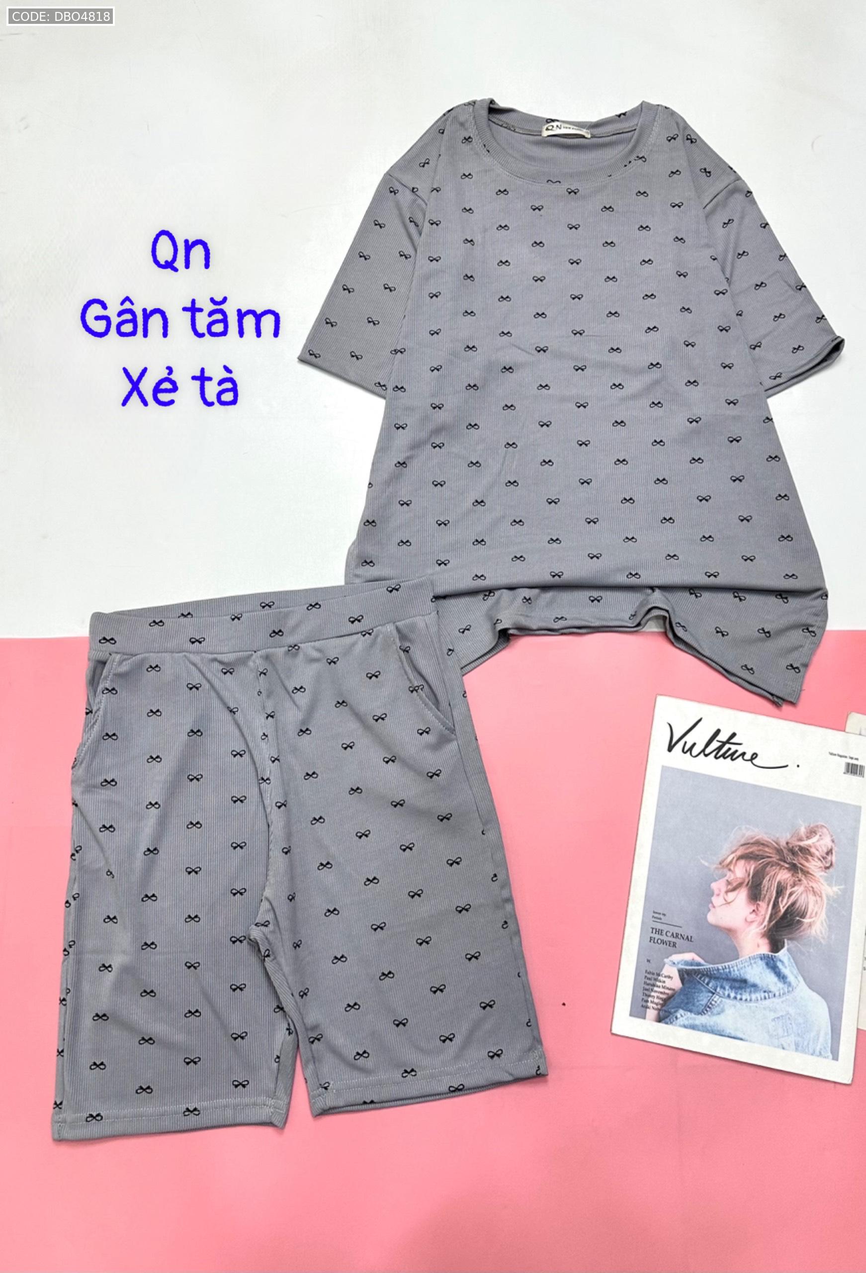 Đồ bộ gân tăm quần lửng gân tăm xẻ tà