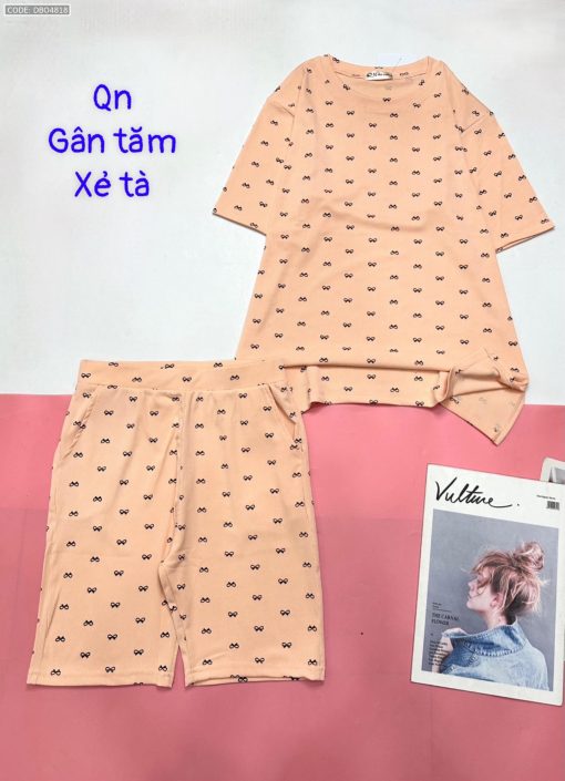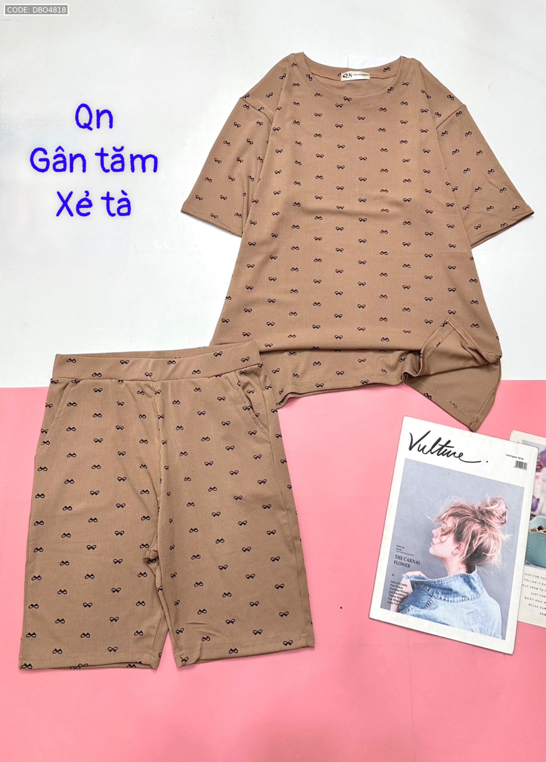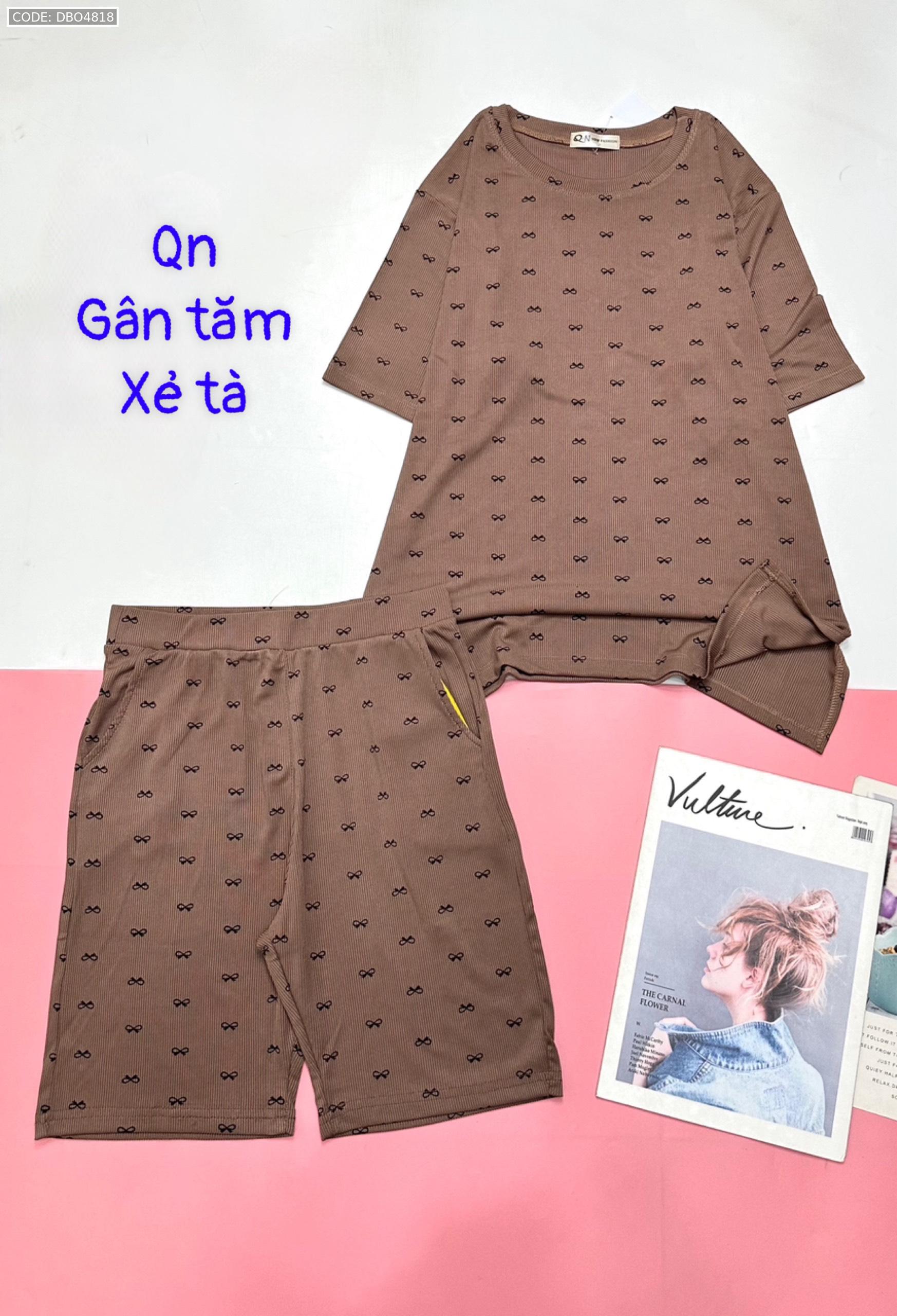 Đồ bộ gân tăm quần lửng gân tăm xẻ tà