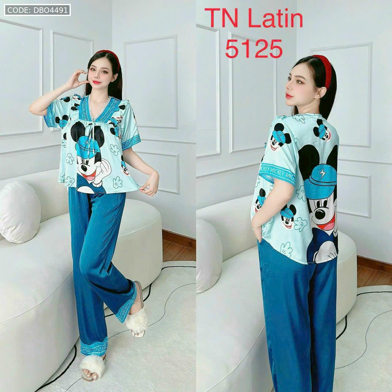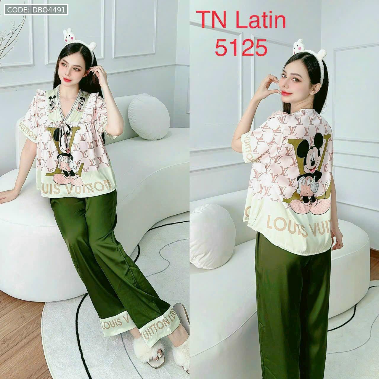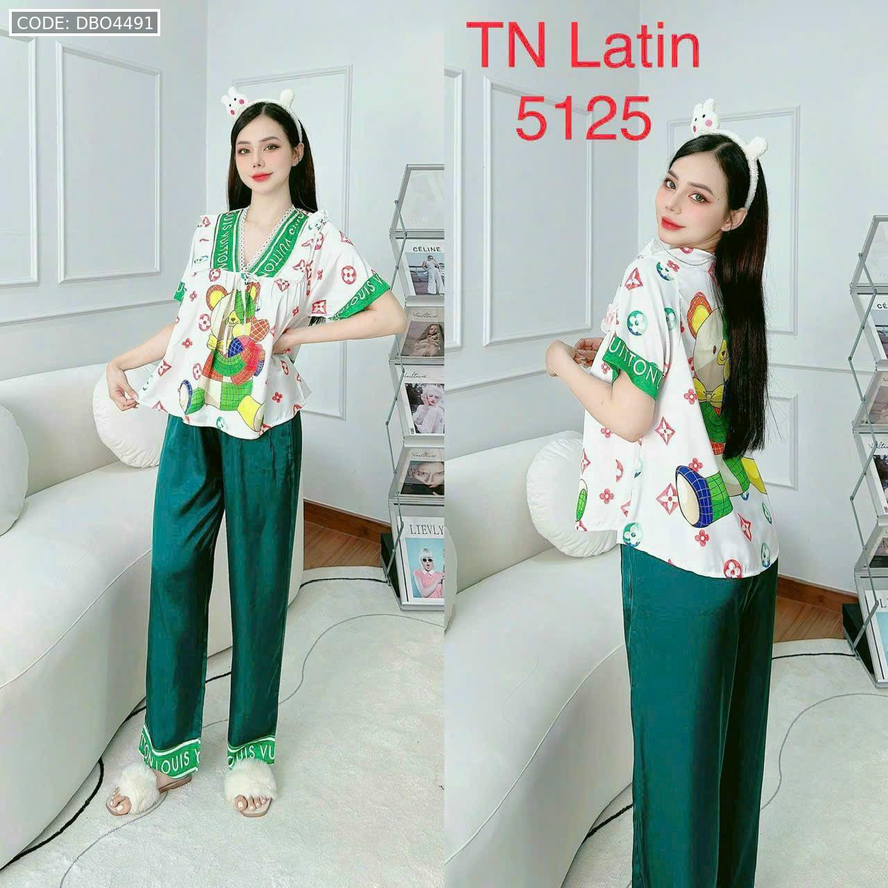đồ bộ latin quần dài áo V cổ viền nơ in nhiều hình