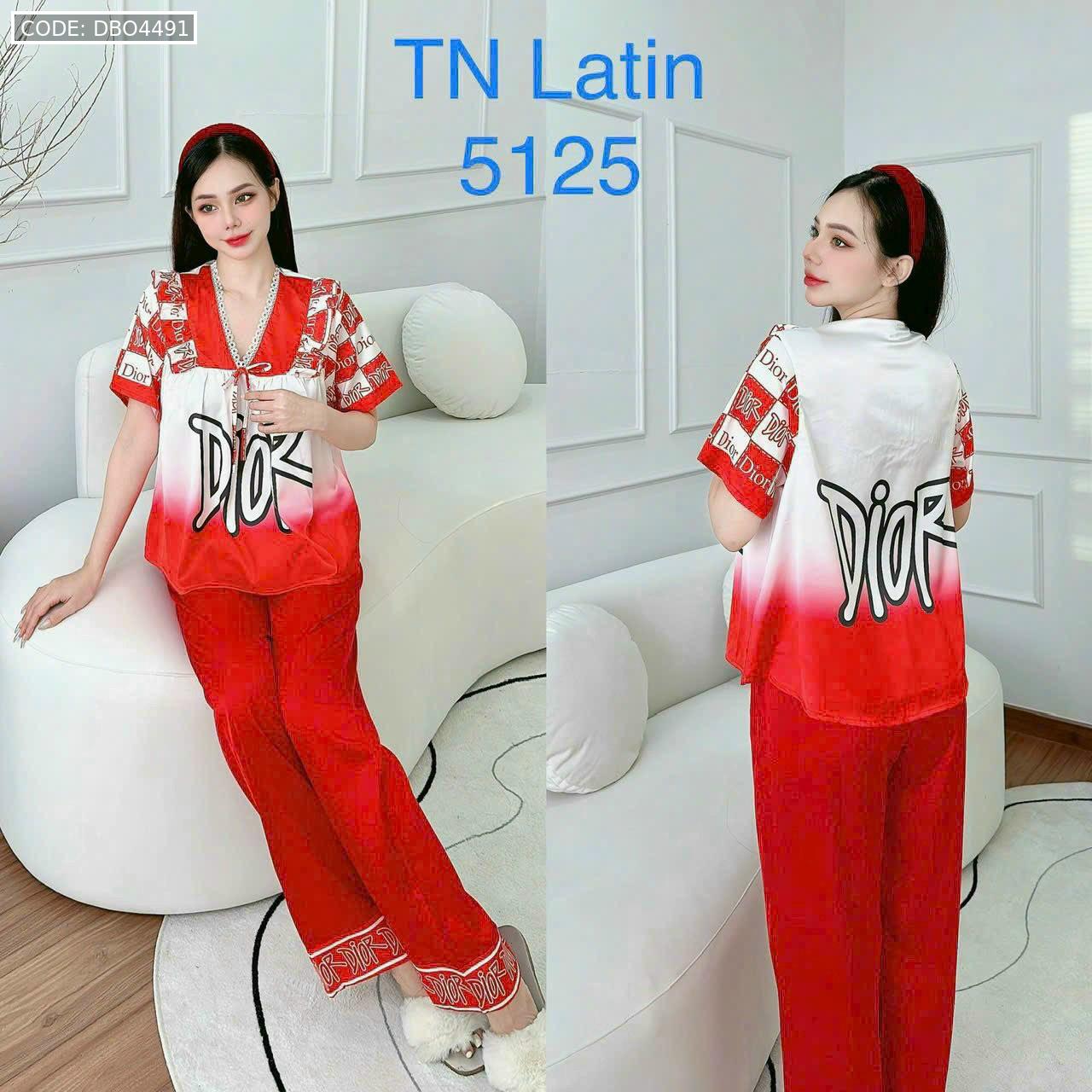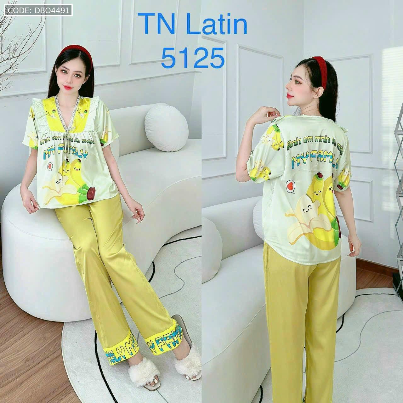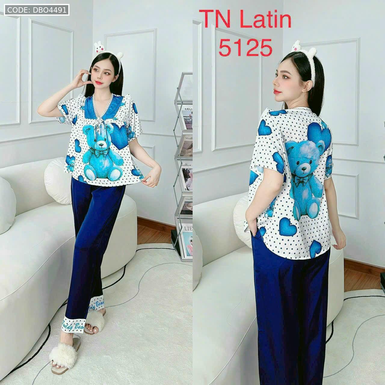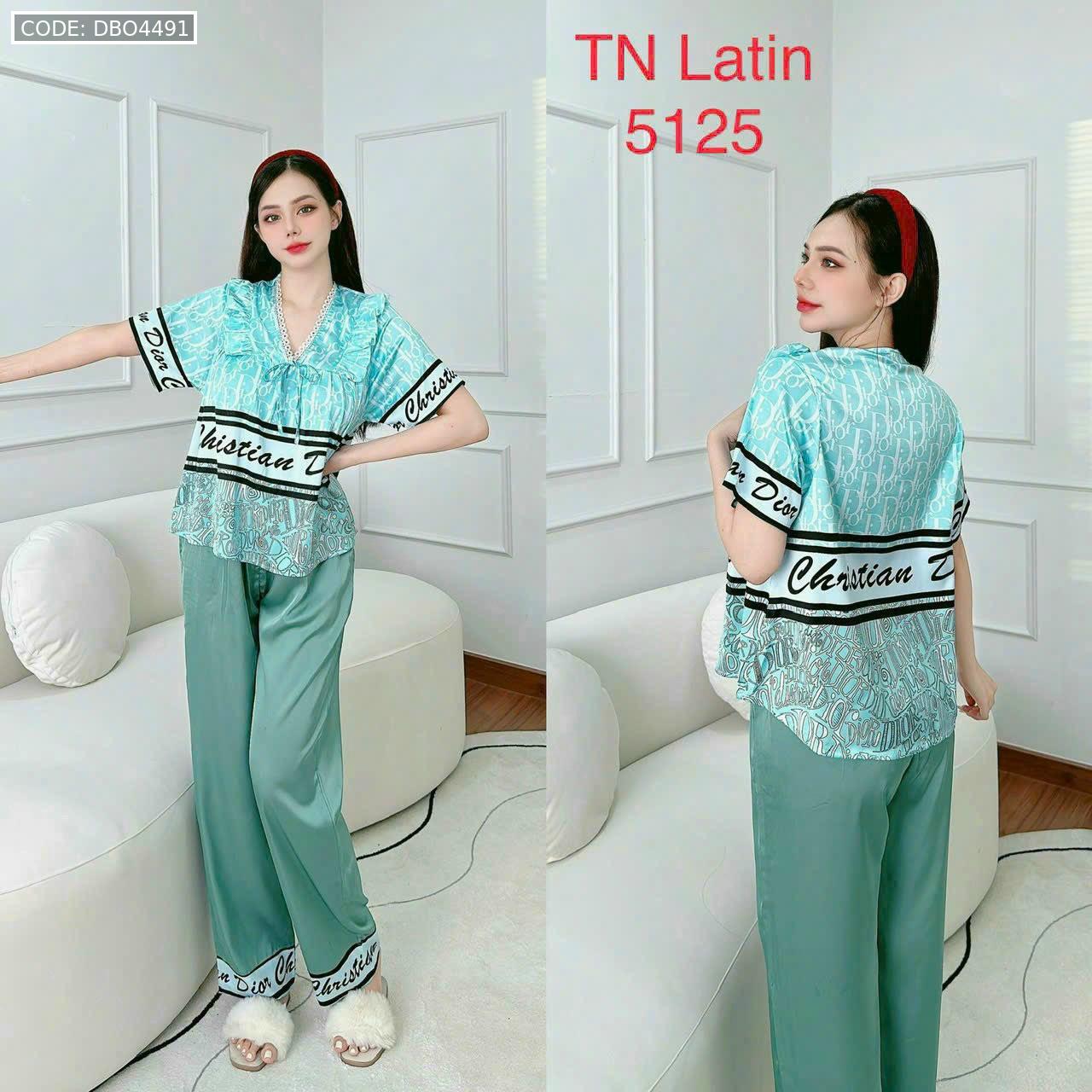 đồ bộ latin quần dài áo V cổ viền nơ in nhiều hình