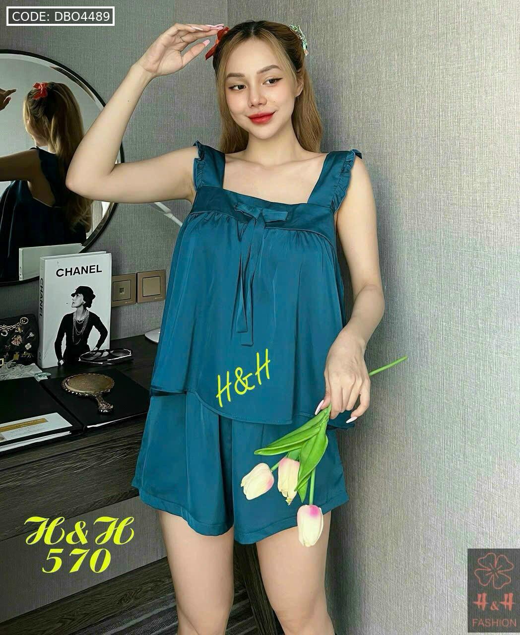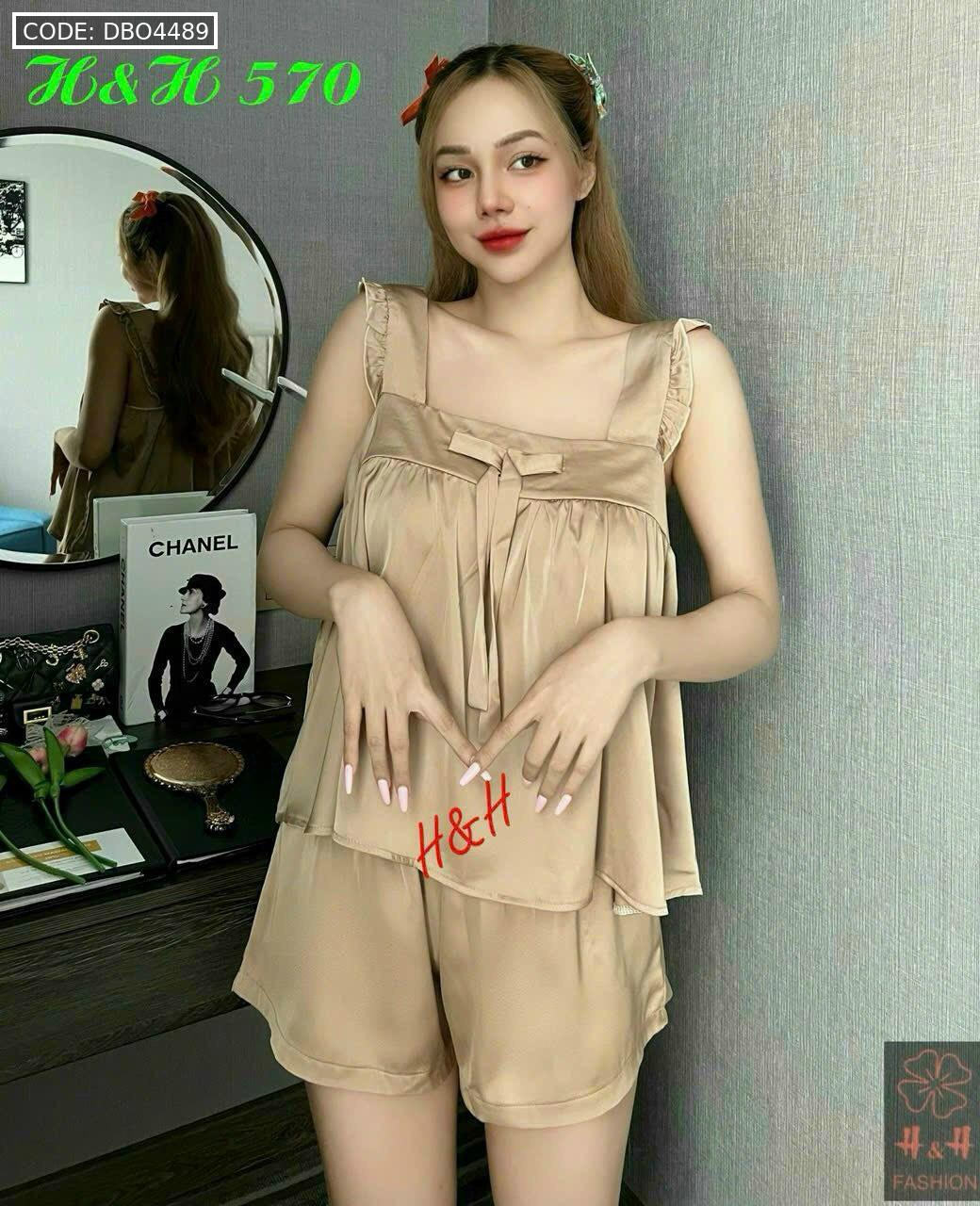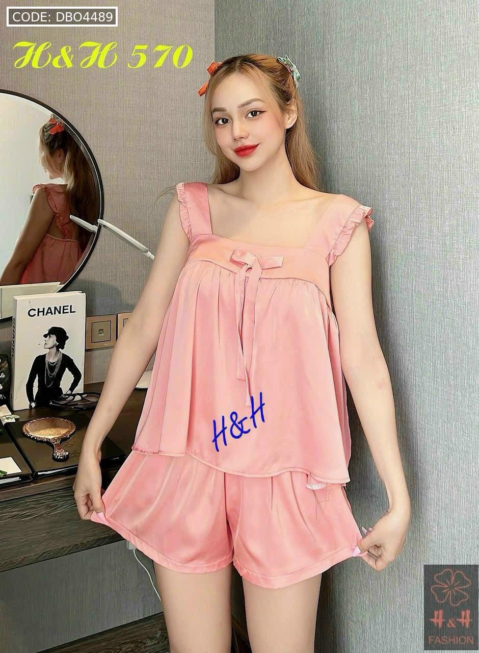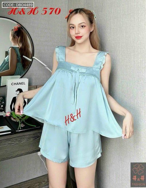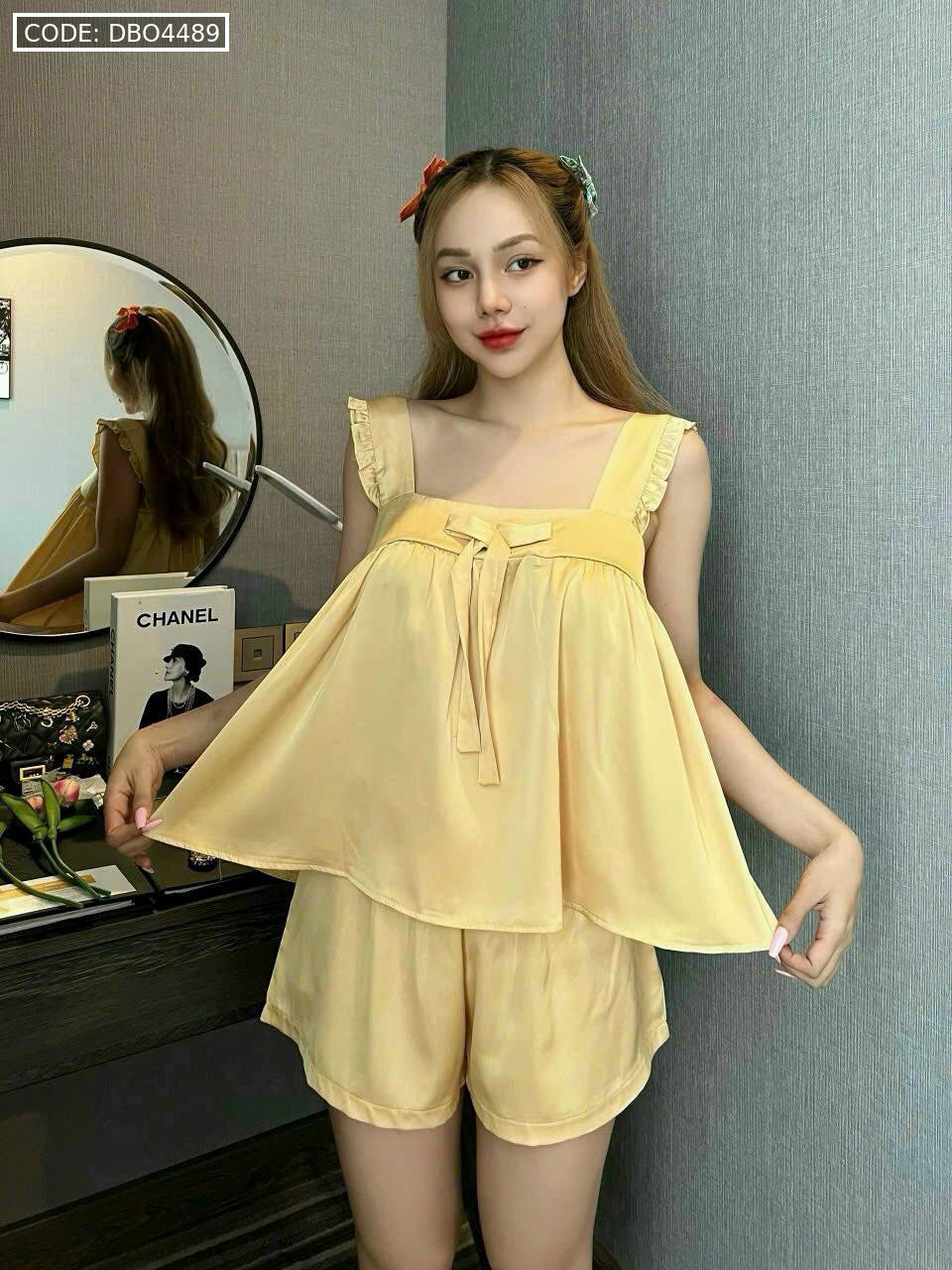 Đồ bộ latin trơn siêu mát áo trơn thắt nơ