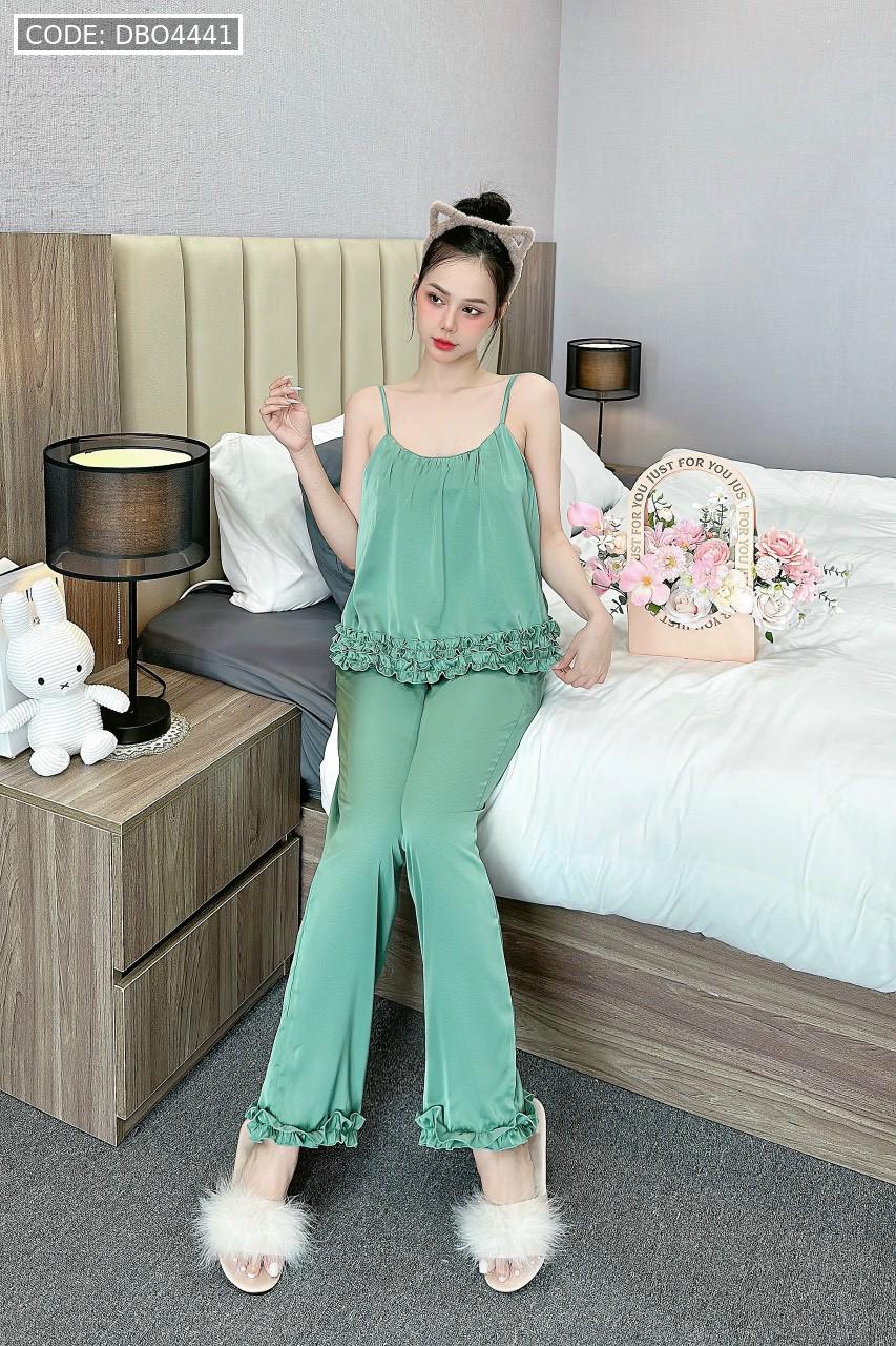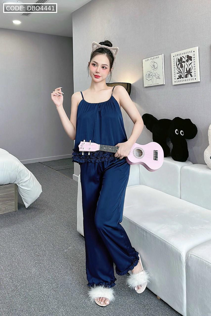 Đồ bộ latin trơn siêu mát mặc nhà quần dài áo hai dây