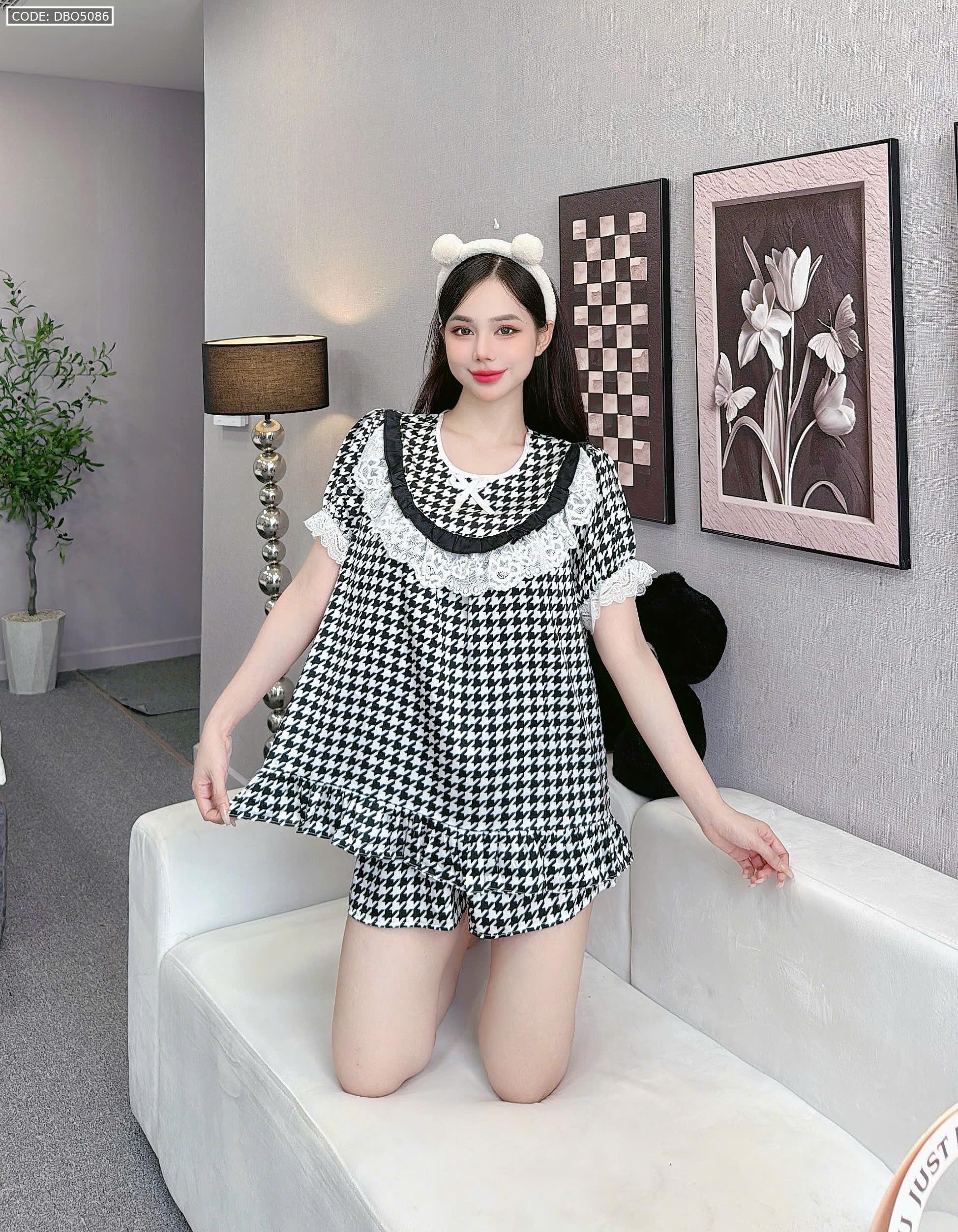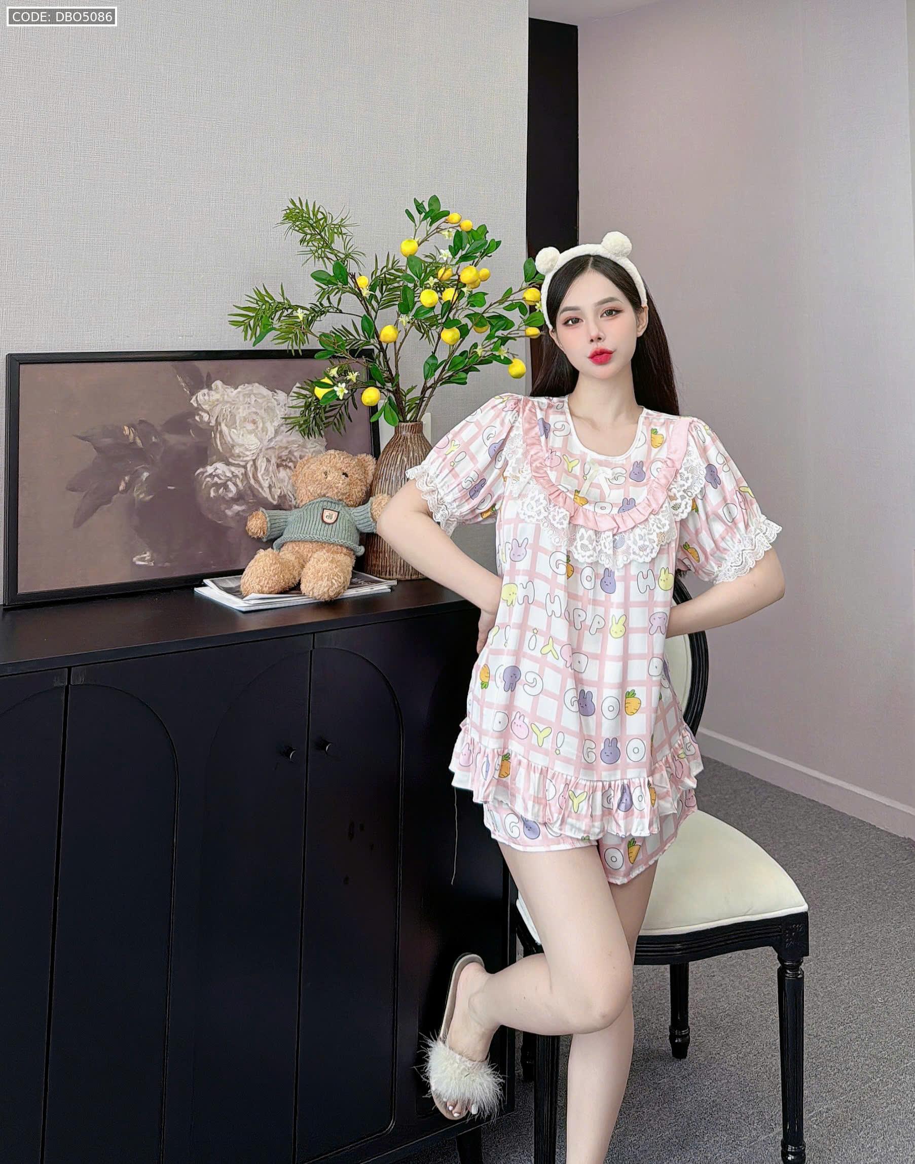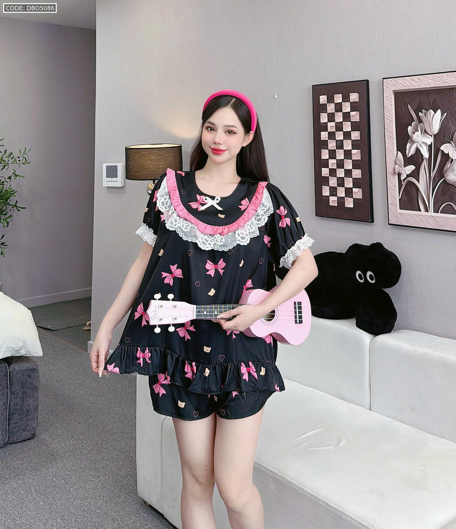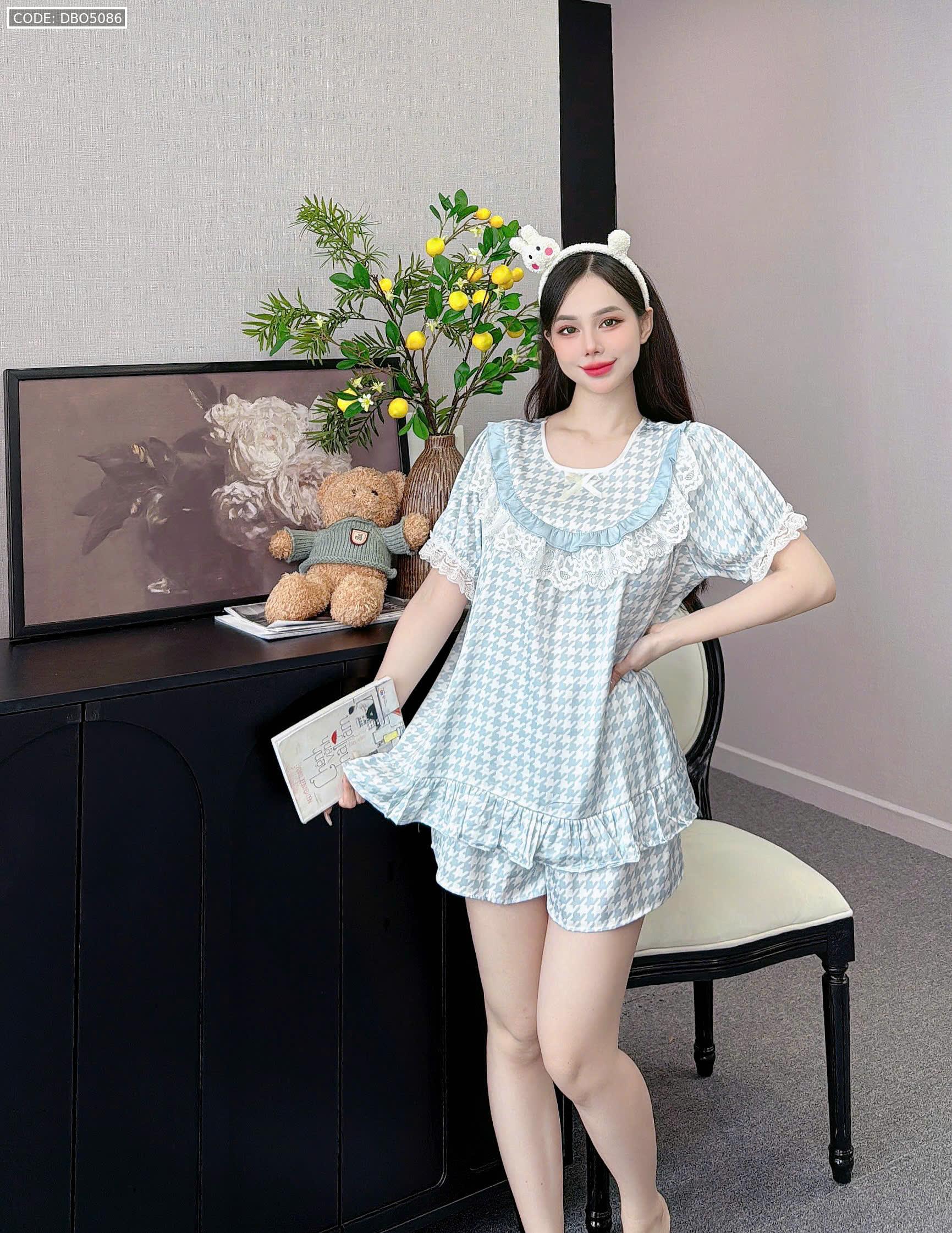 đồ bộ lcổ tròn tay bèo phốii ren dễ thương