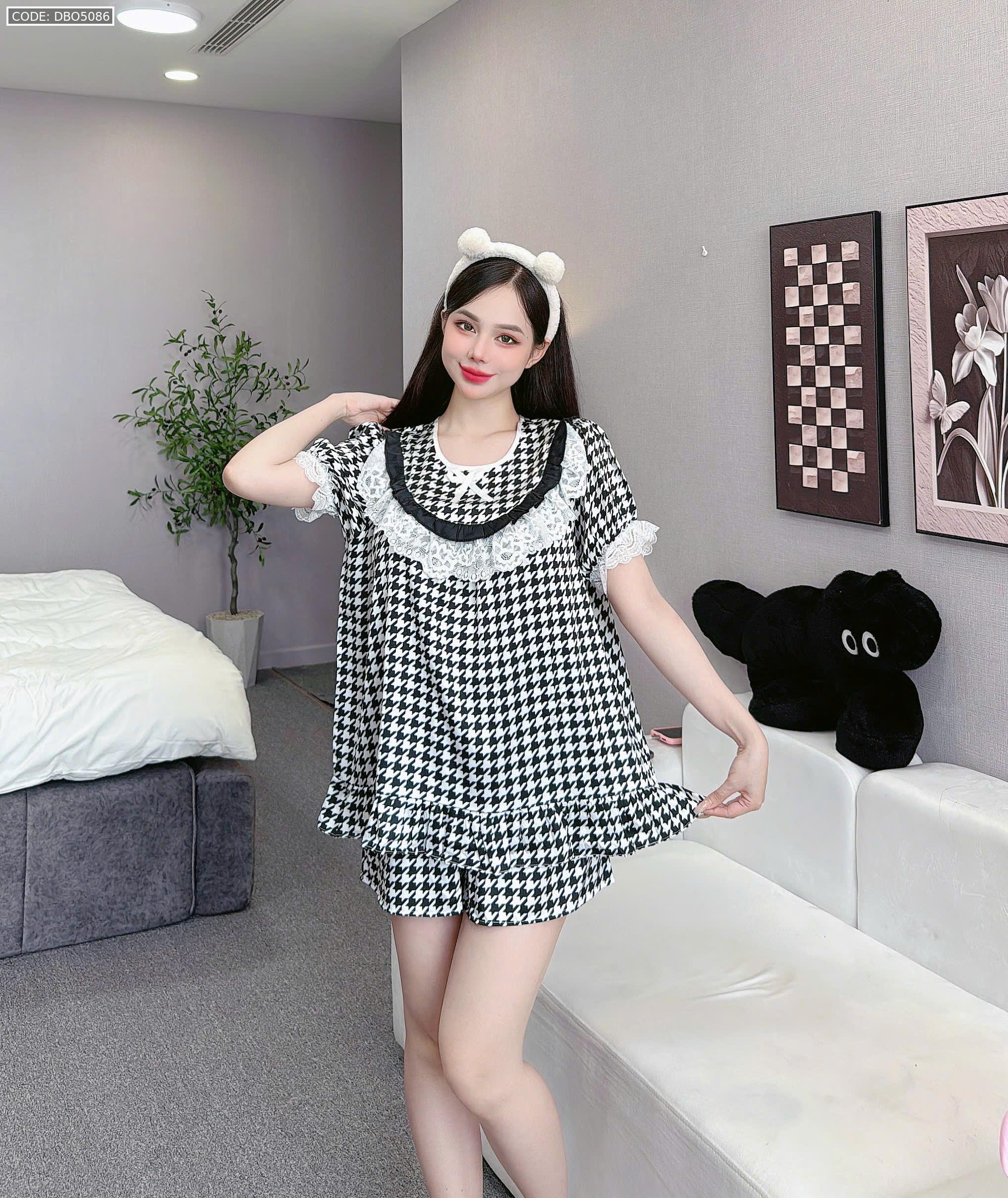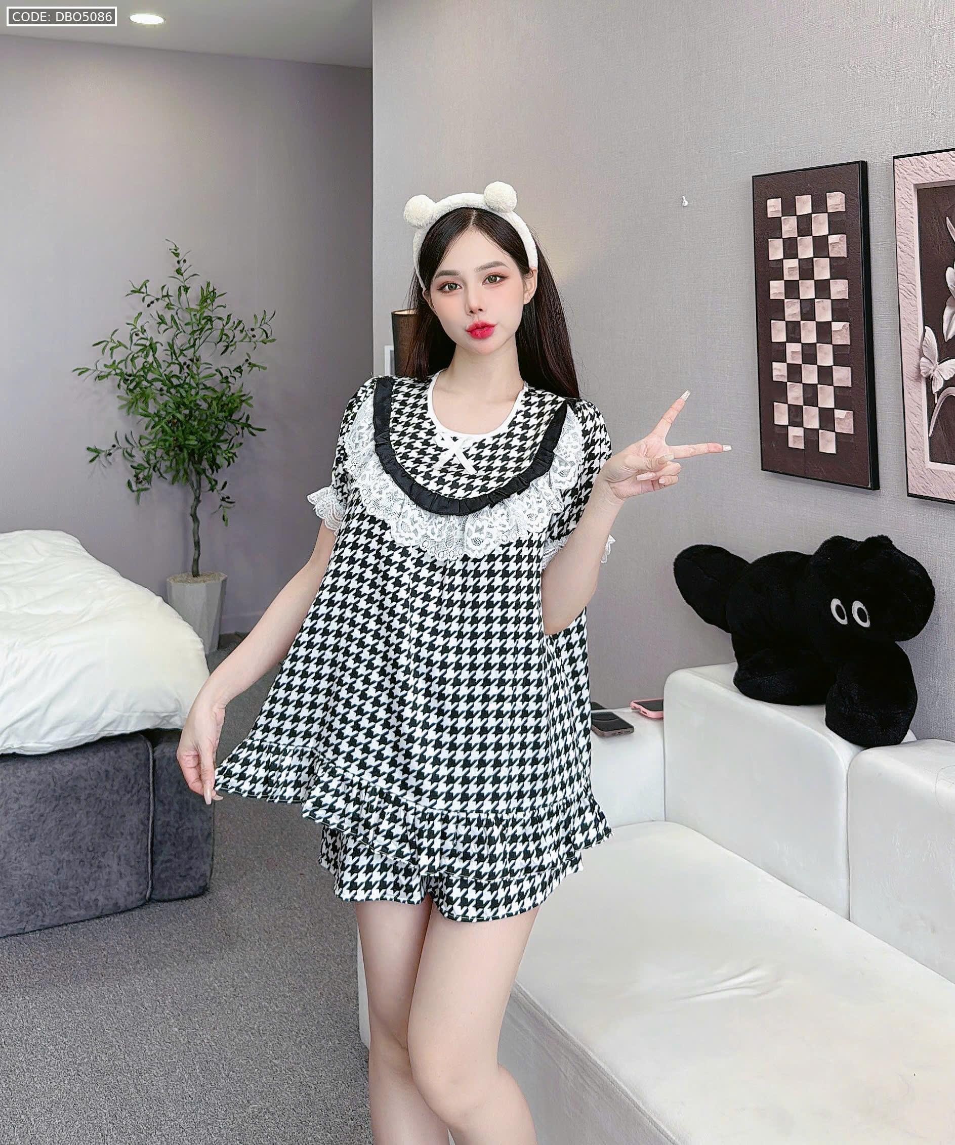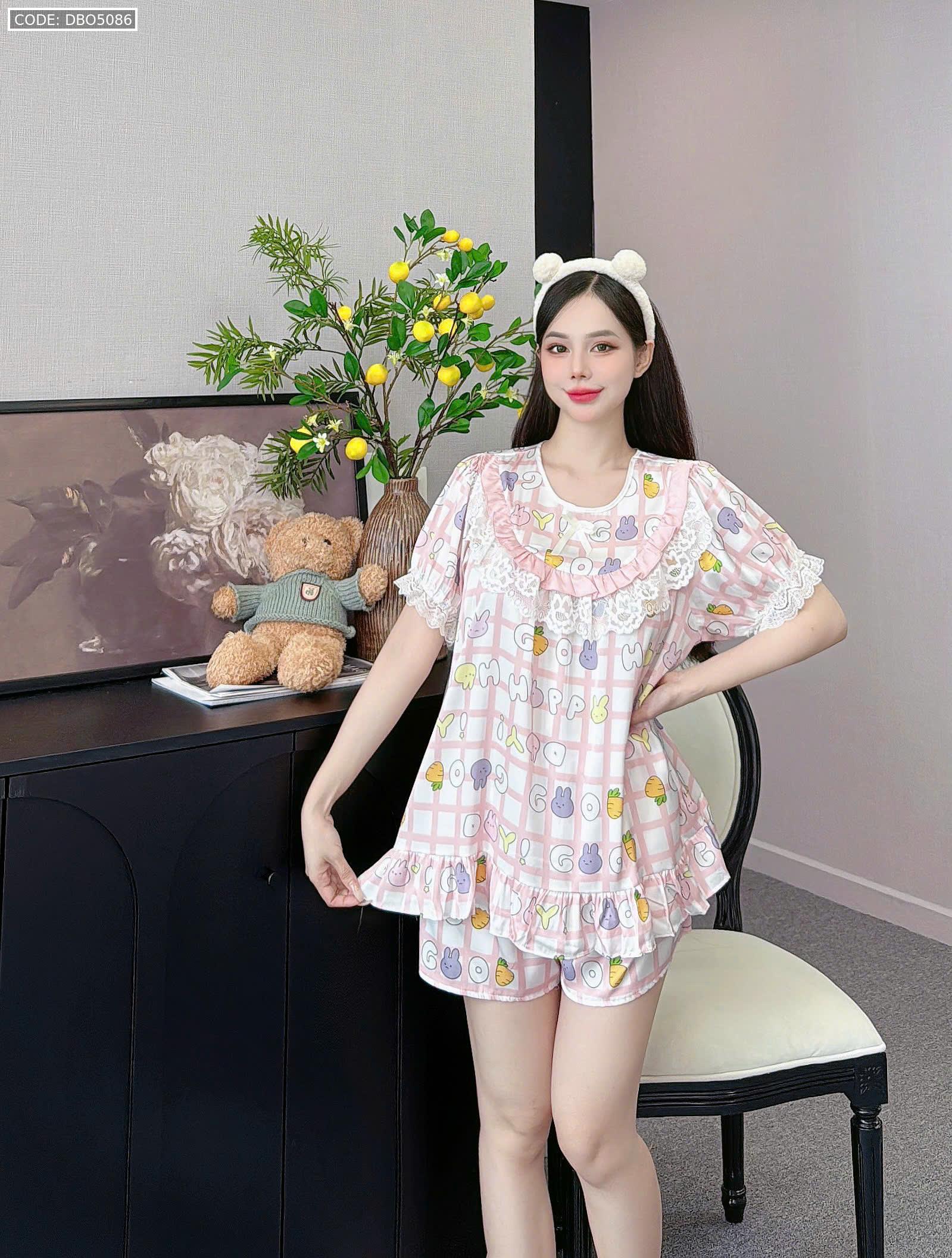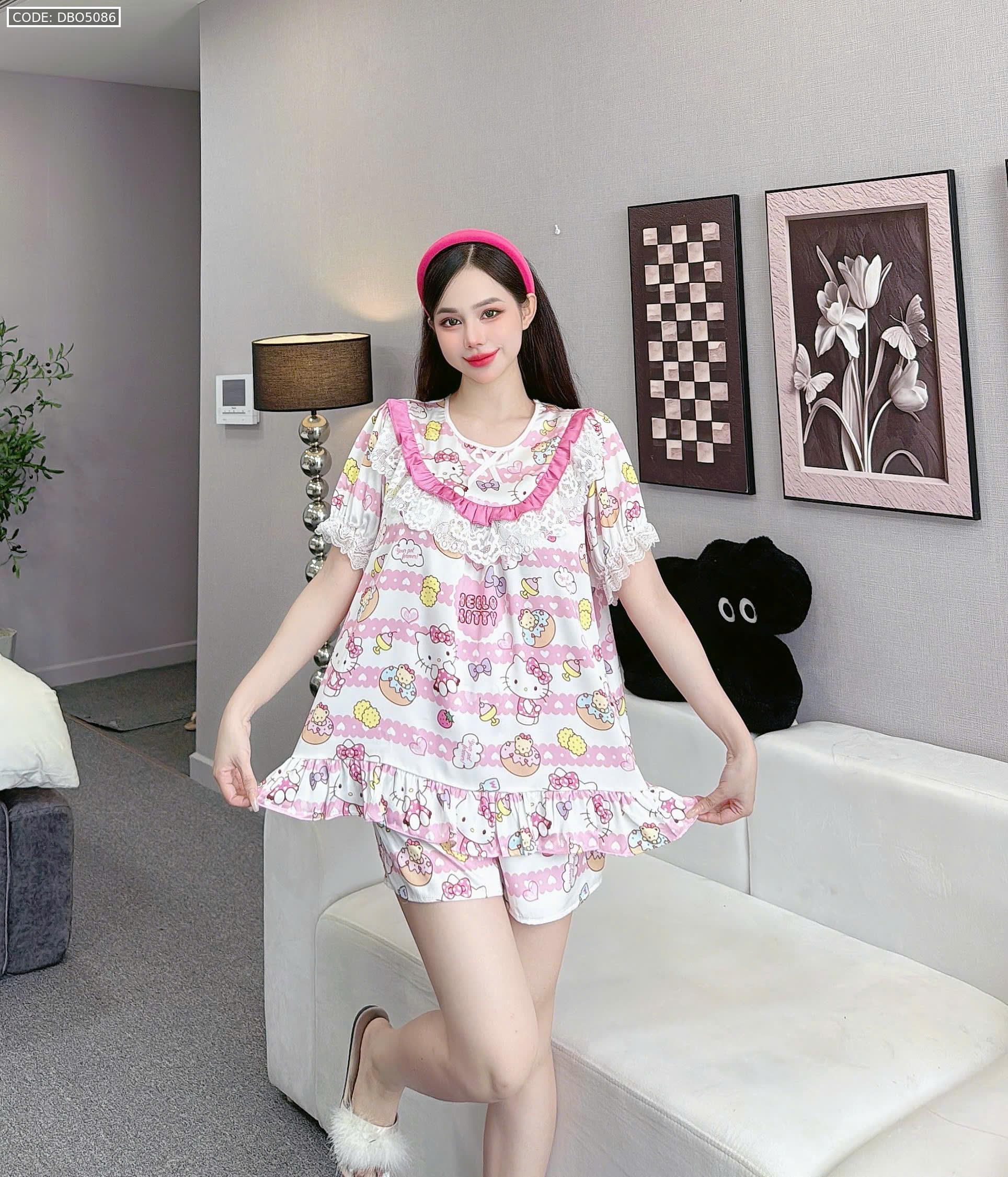 đồ bộ lcổ tròn tay bèo phốii ren dễ thương