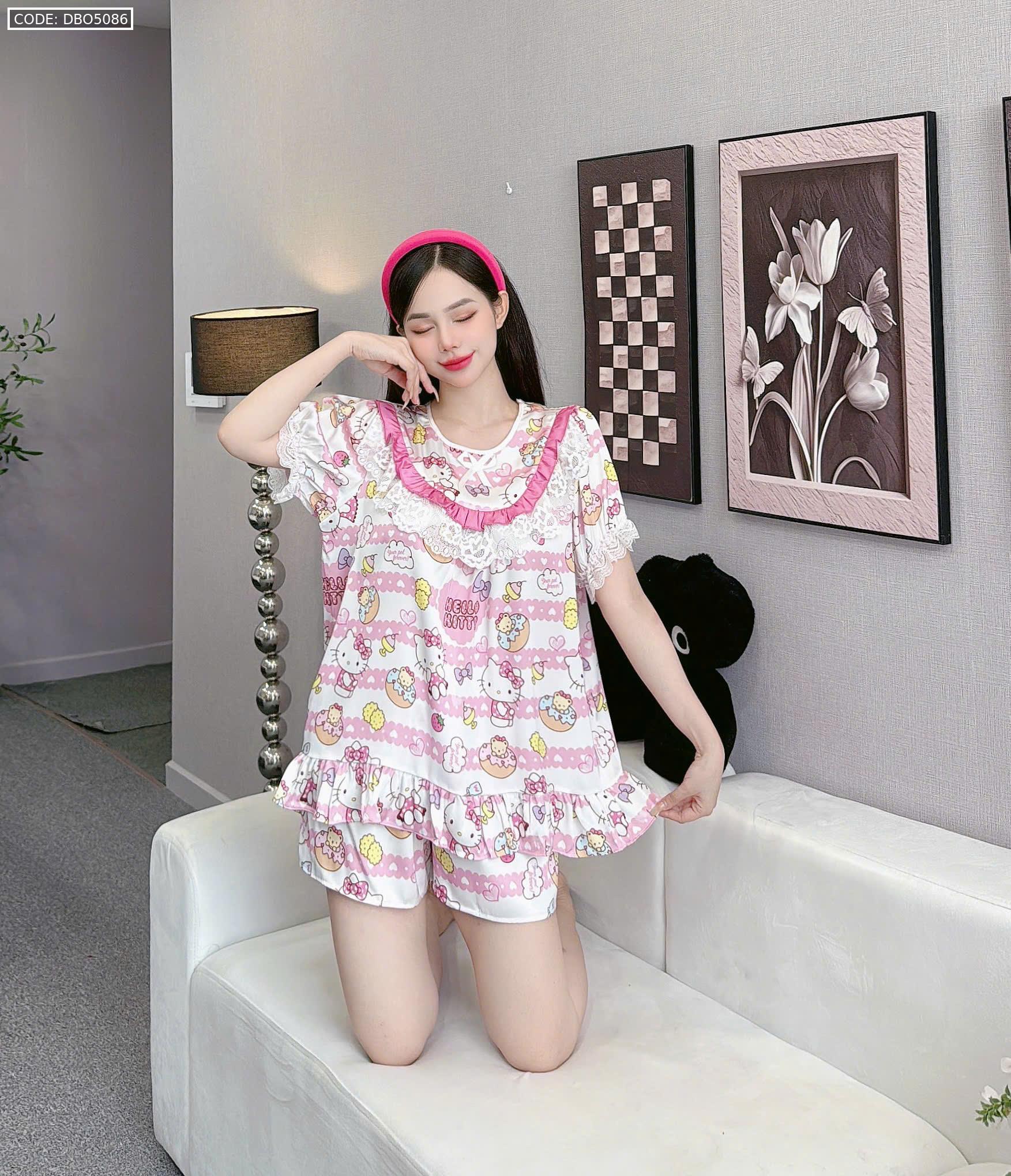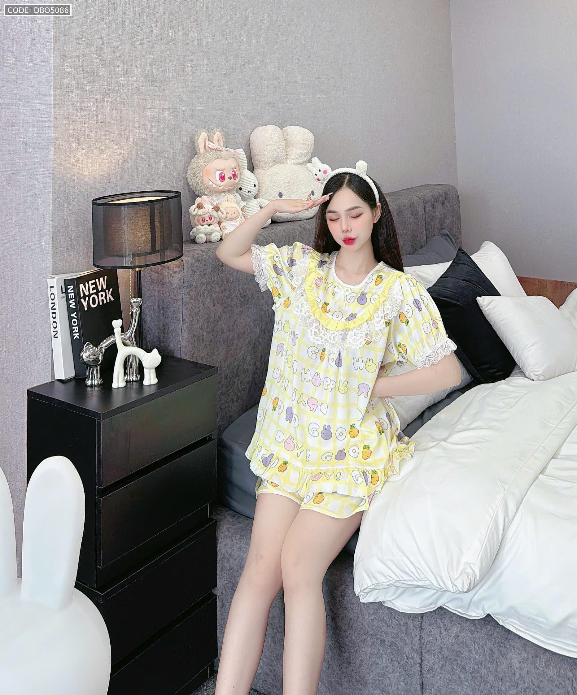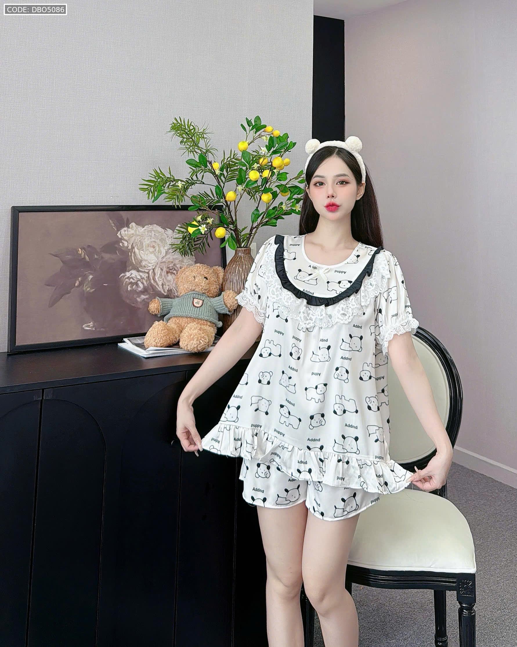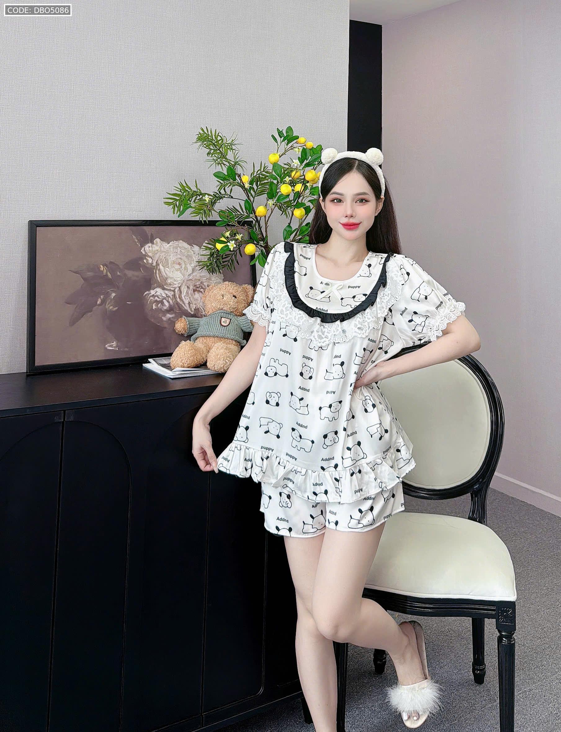 đồ bộ lcổ tròn tay bèo phốii ren dễ thương