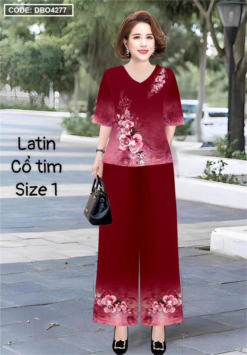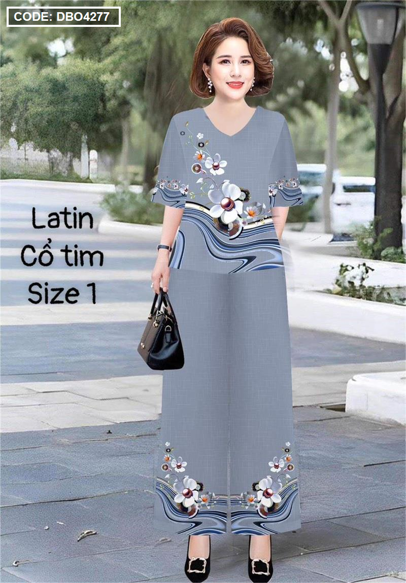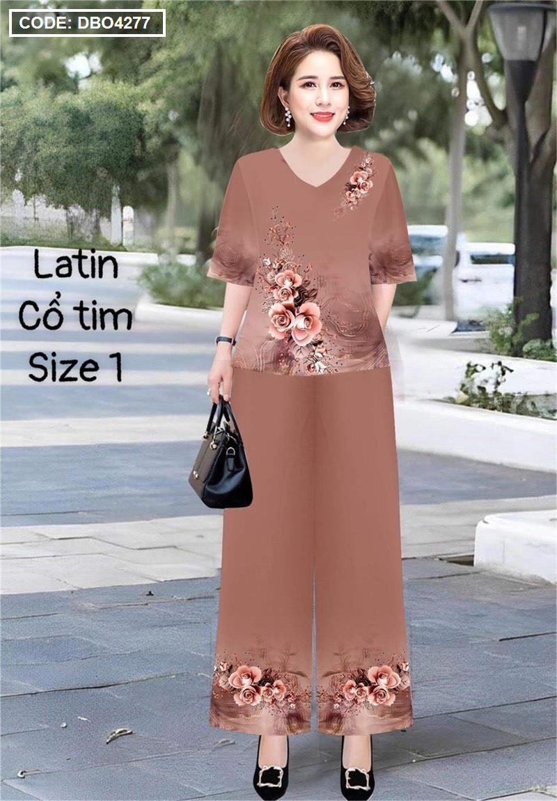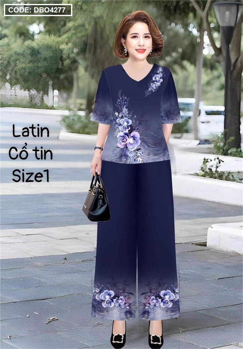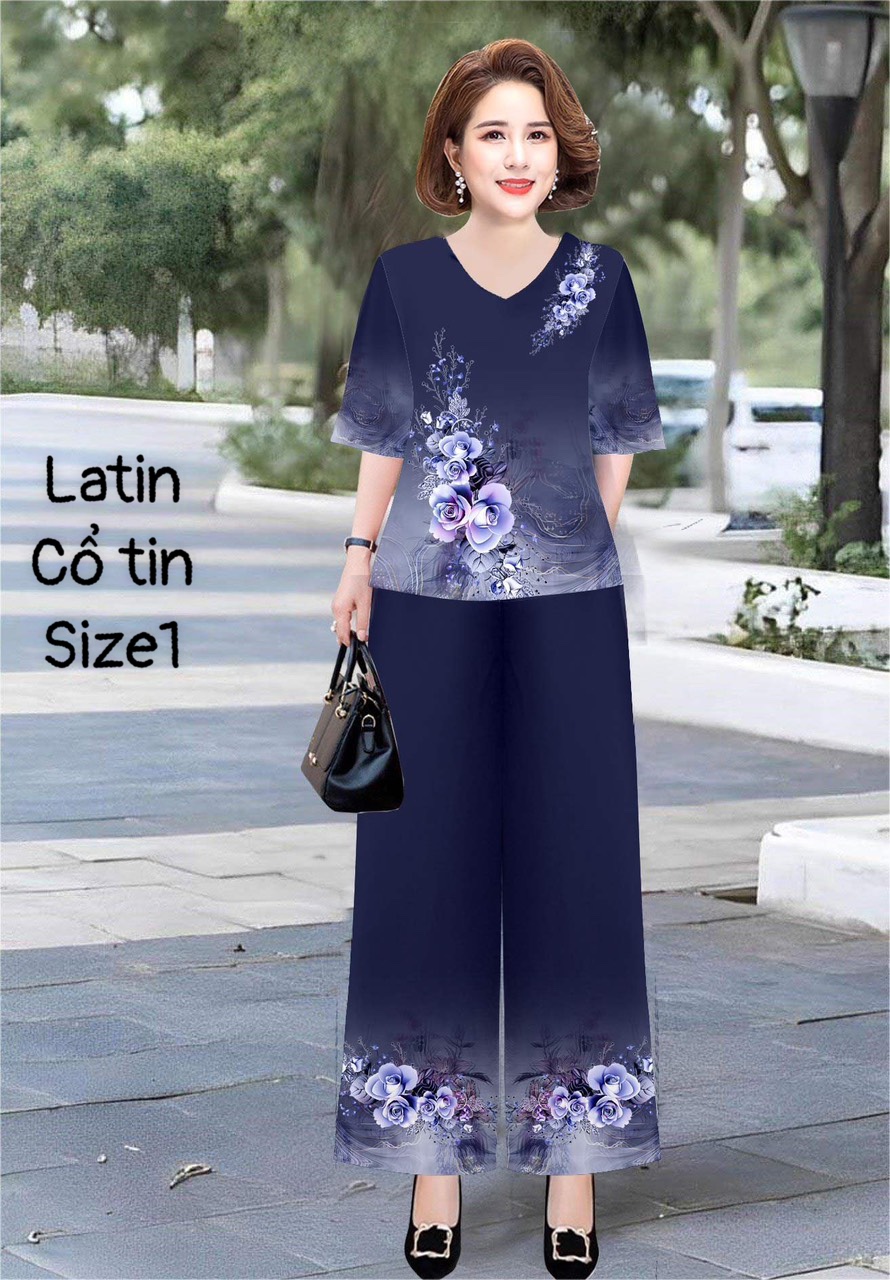 Đồ bộ lụa latin in bông trung niên Có 2 size
