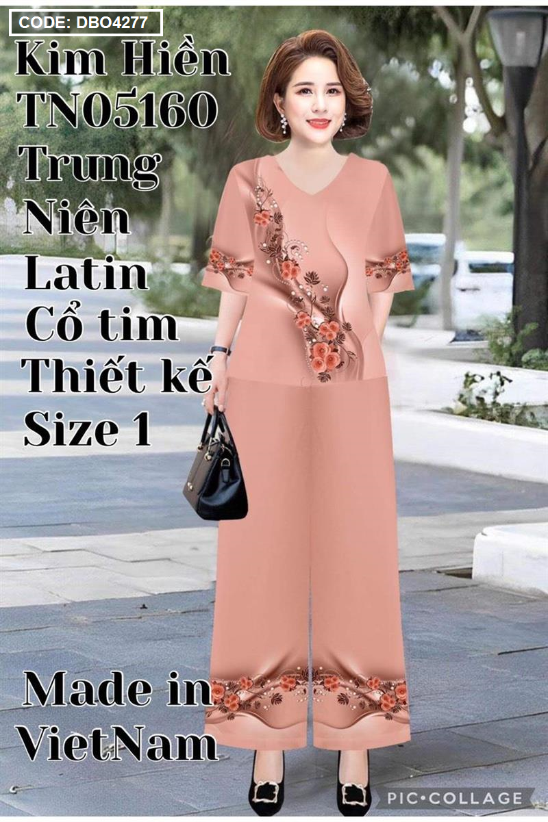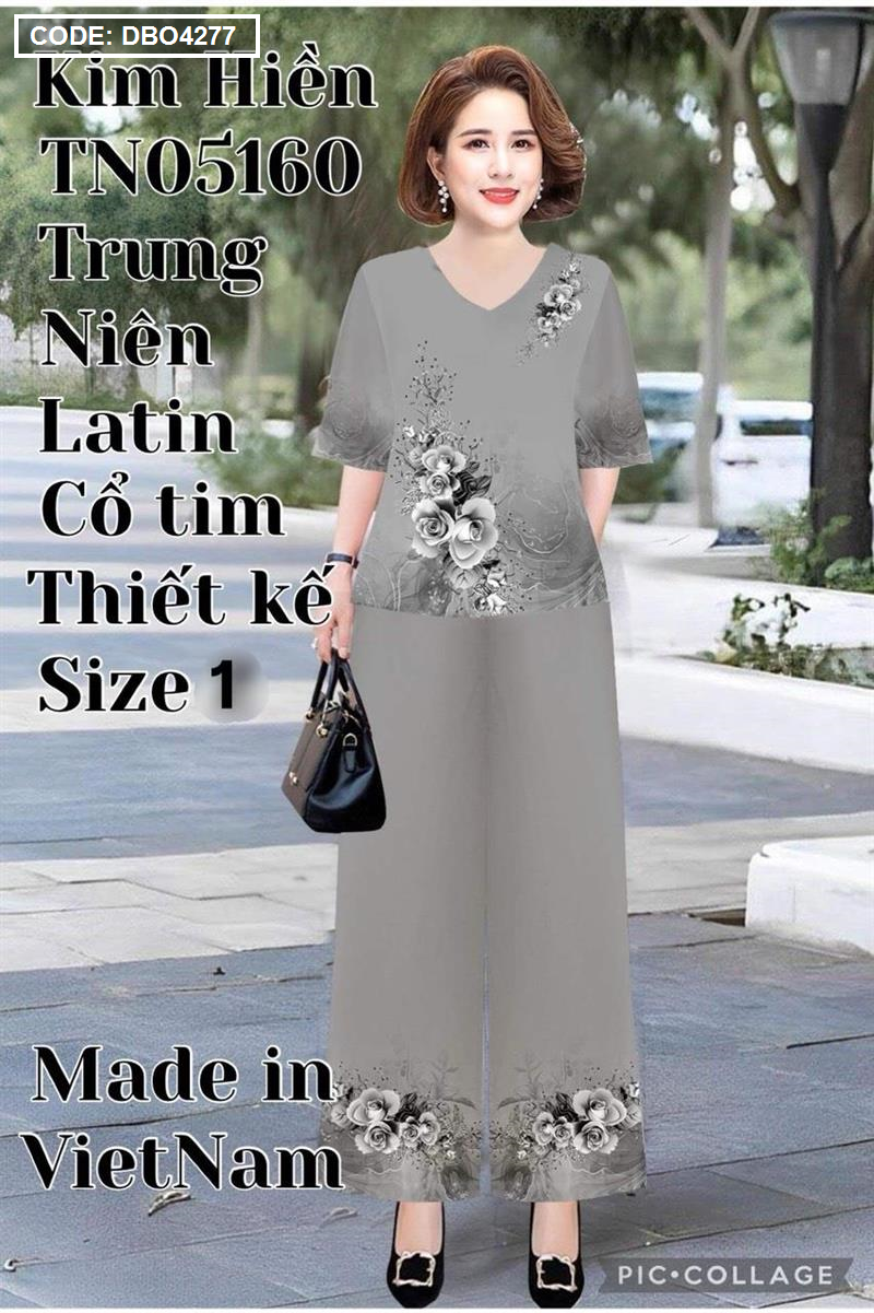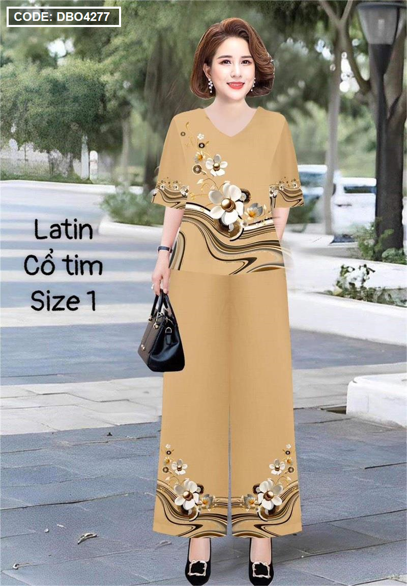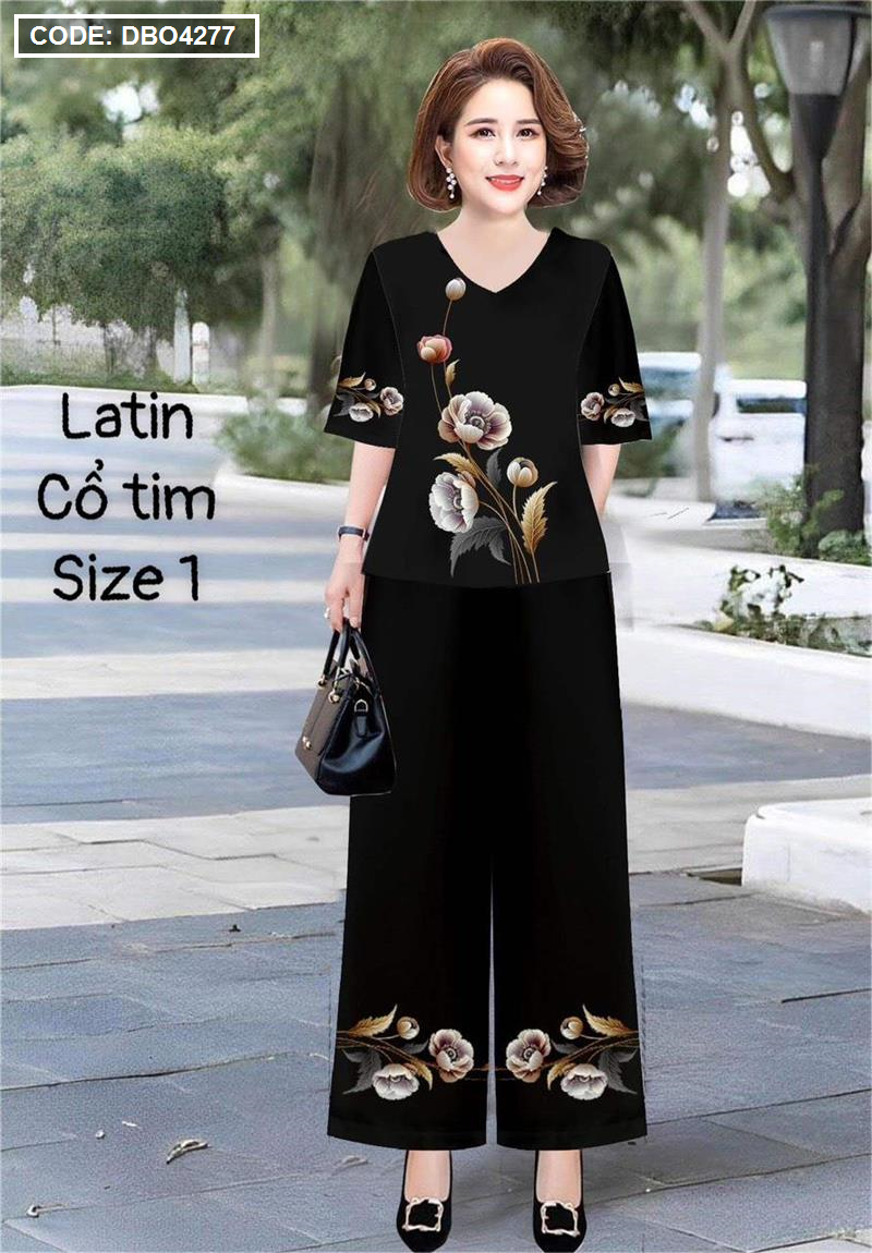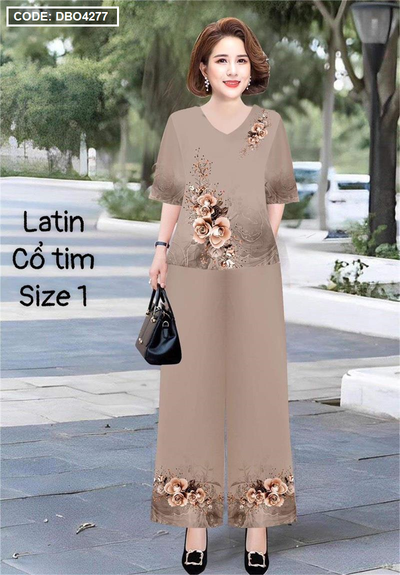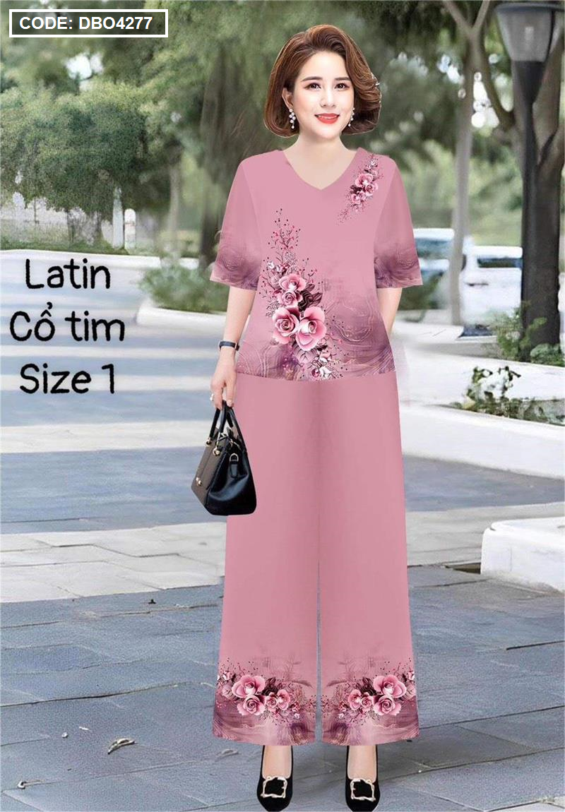 Đồ bộ lụa latin in bông trung niên Có 2 size