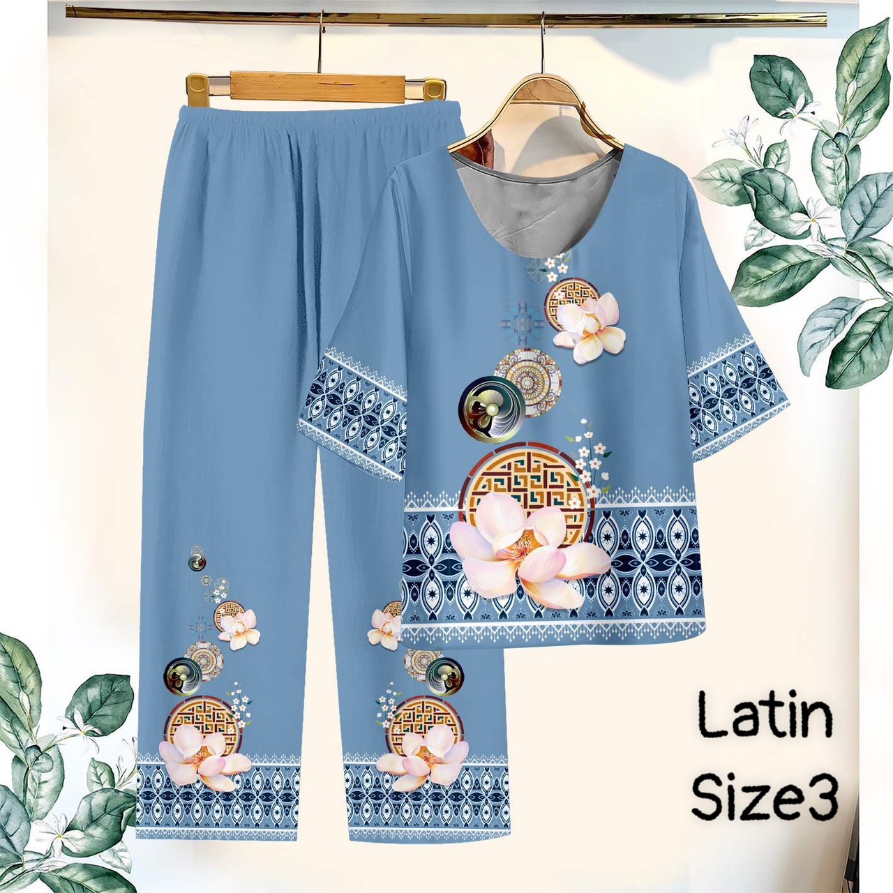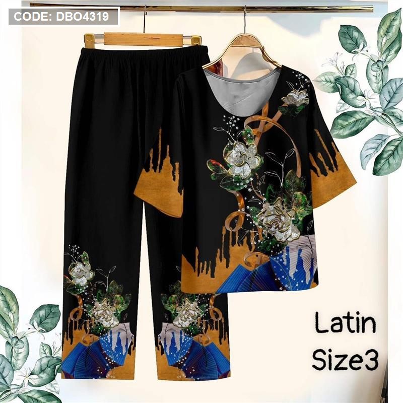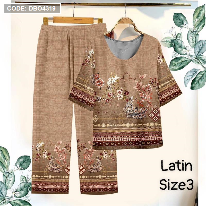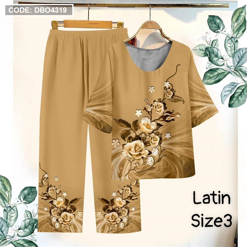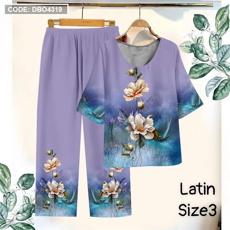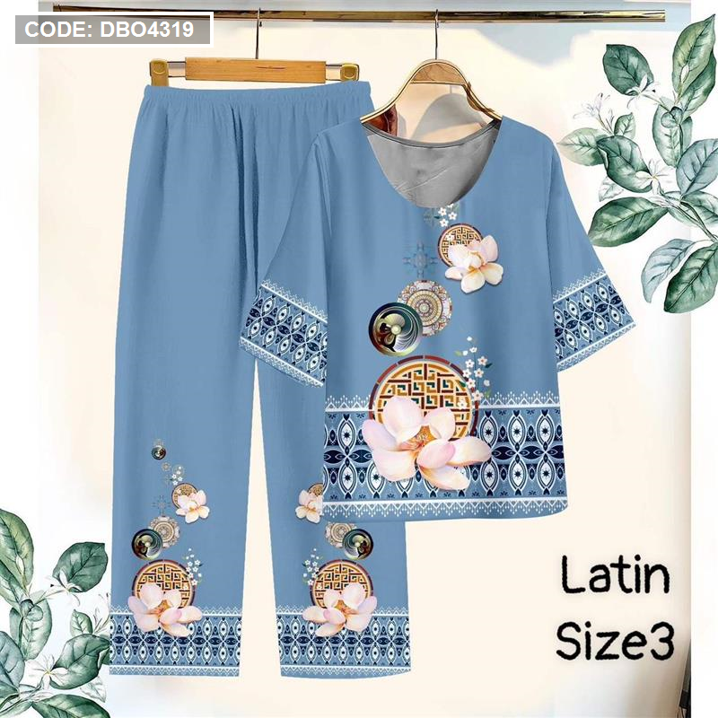 Đồ bộ lụa latin in bông trung niên Có 3 size