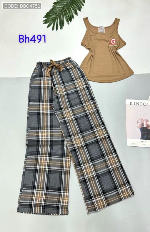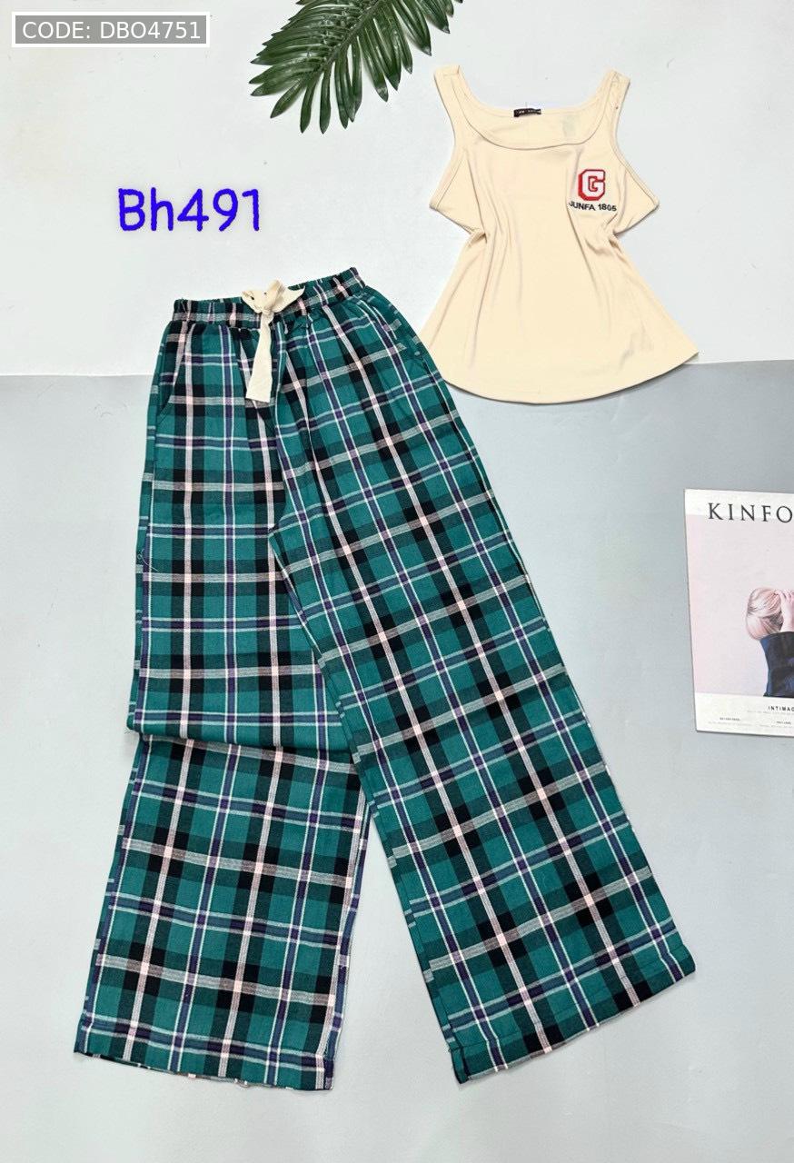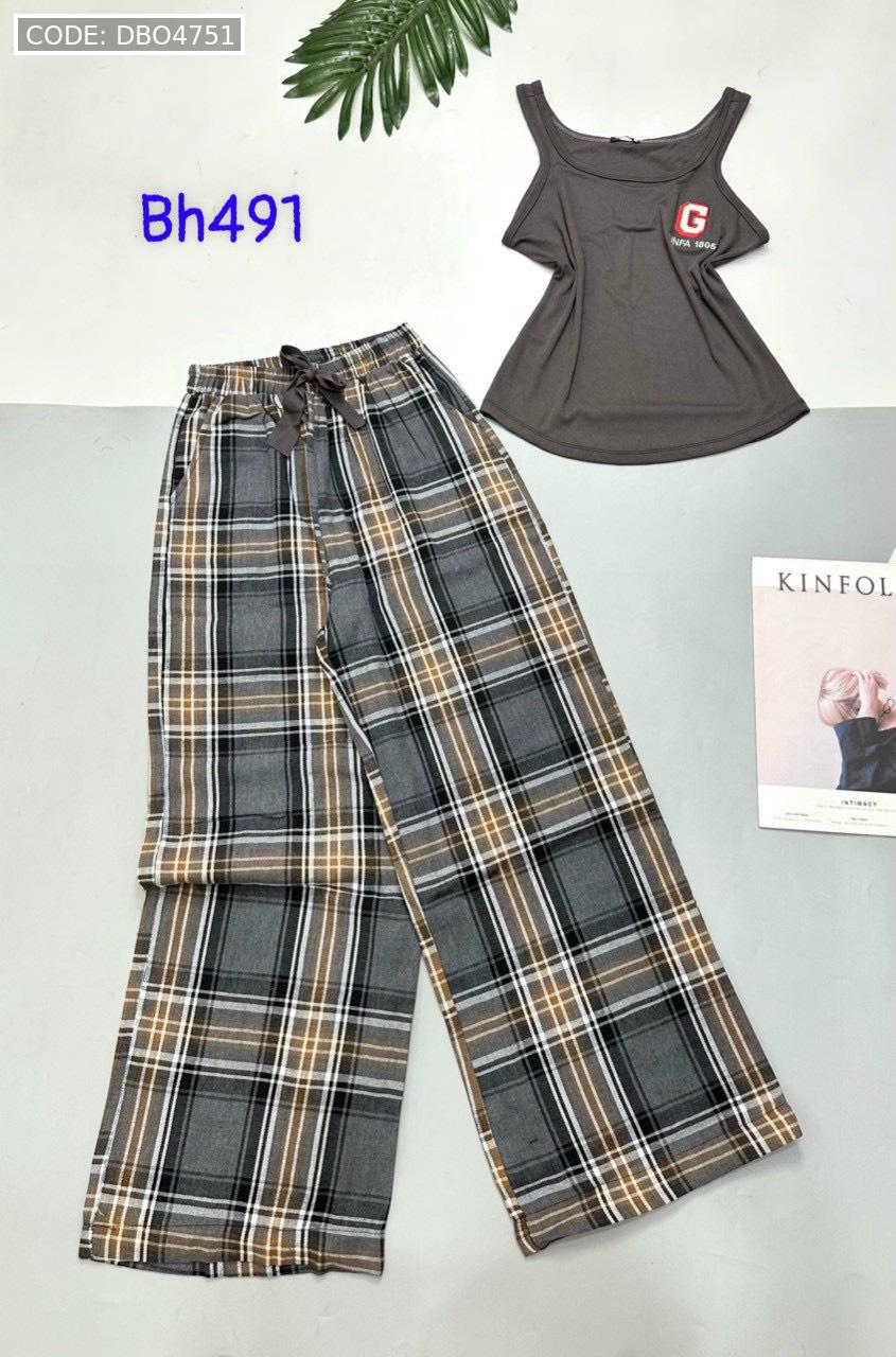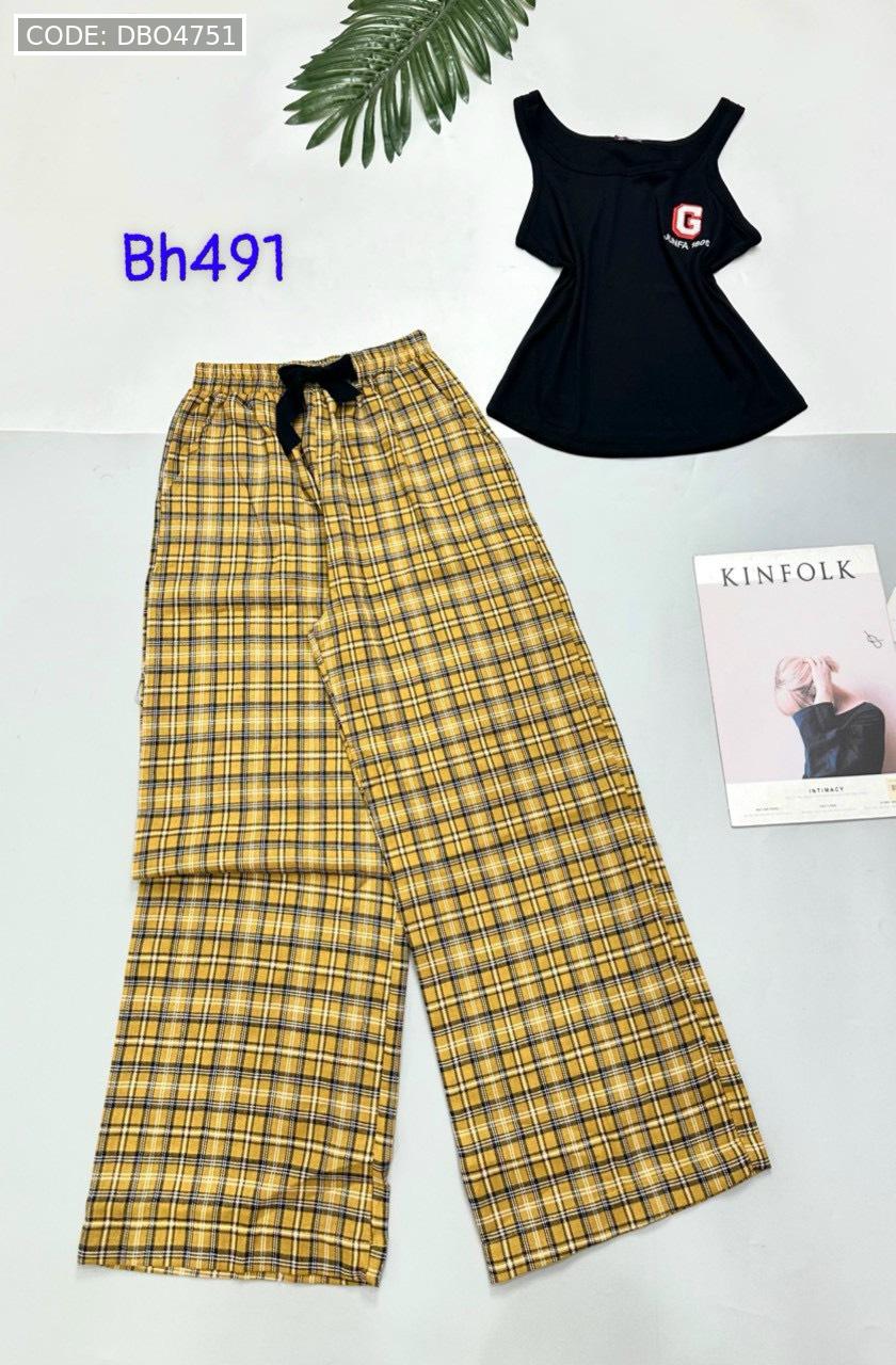 Đồ bộ mặc nhà quần dài carô và sọc áo ba lỗ