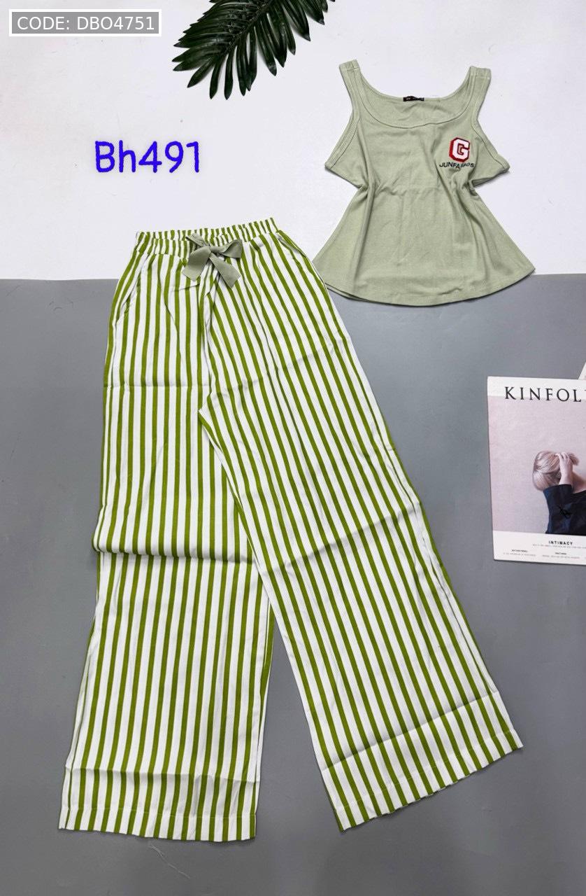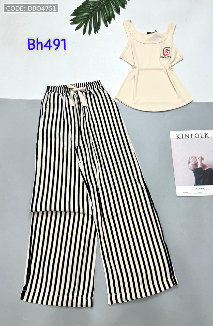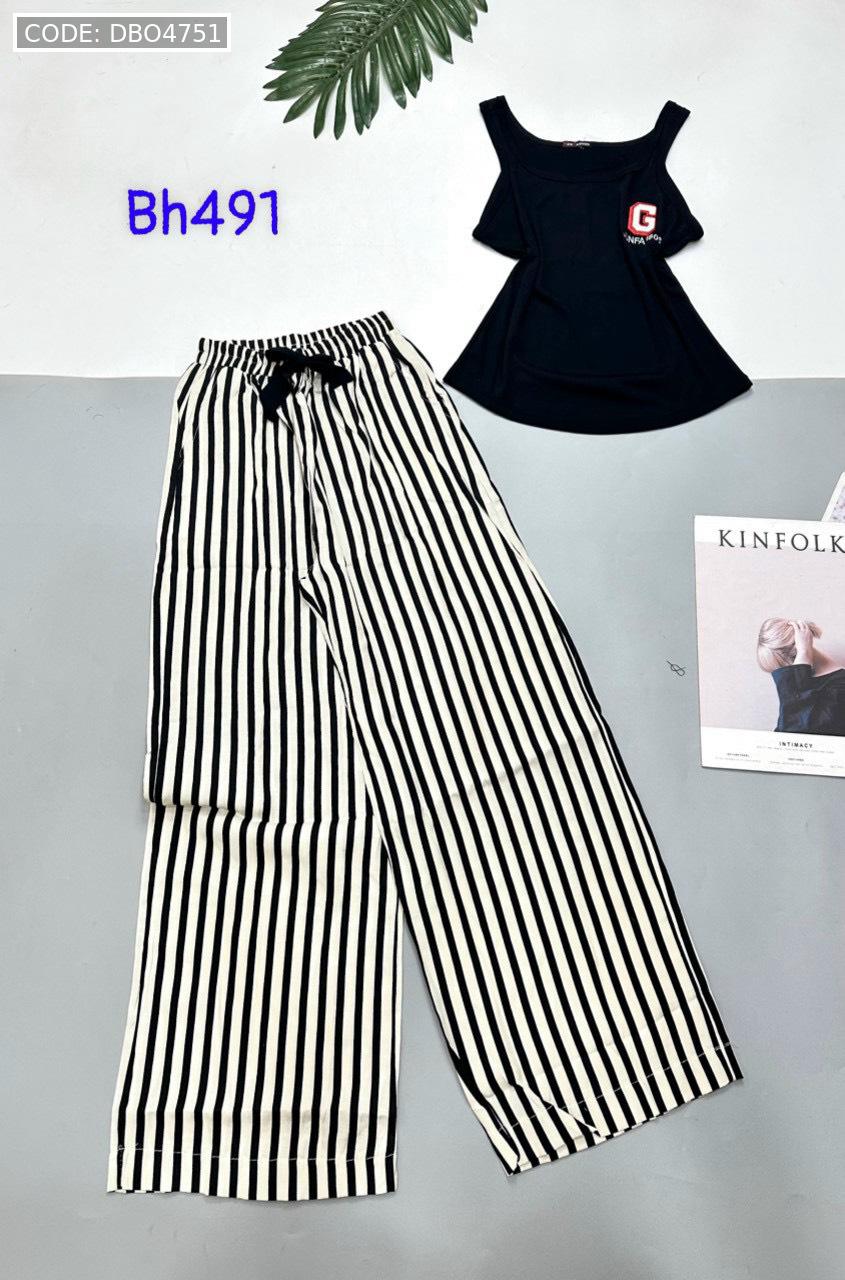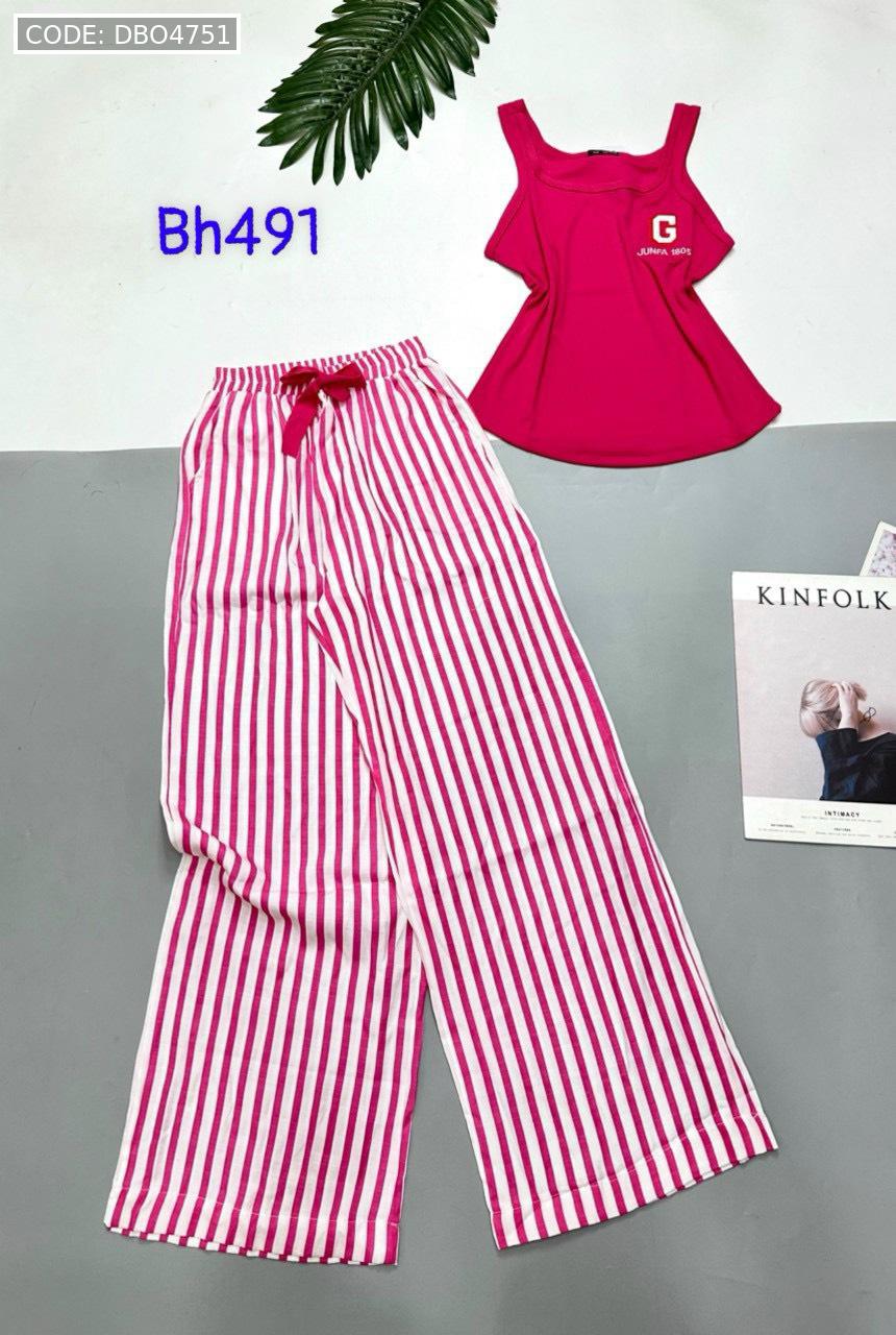 Đồ bộ mặc nhà quần dài carô và sọc áo ba lỗ