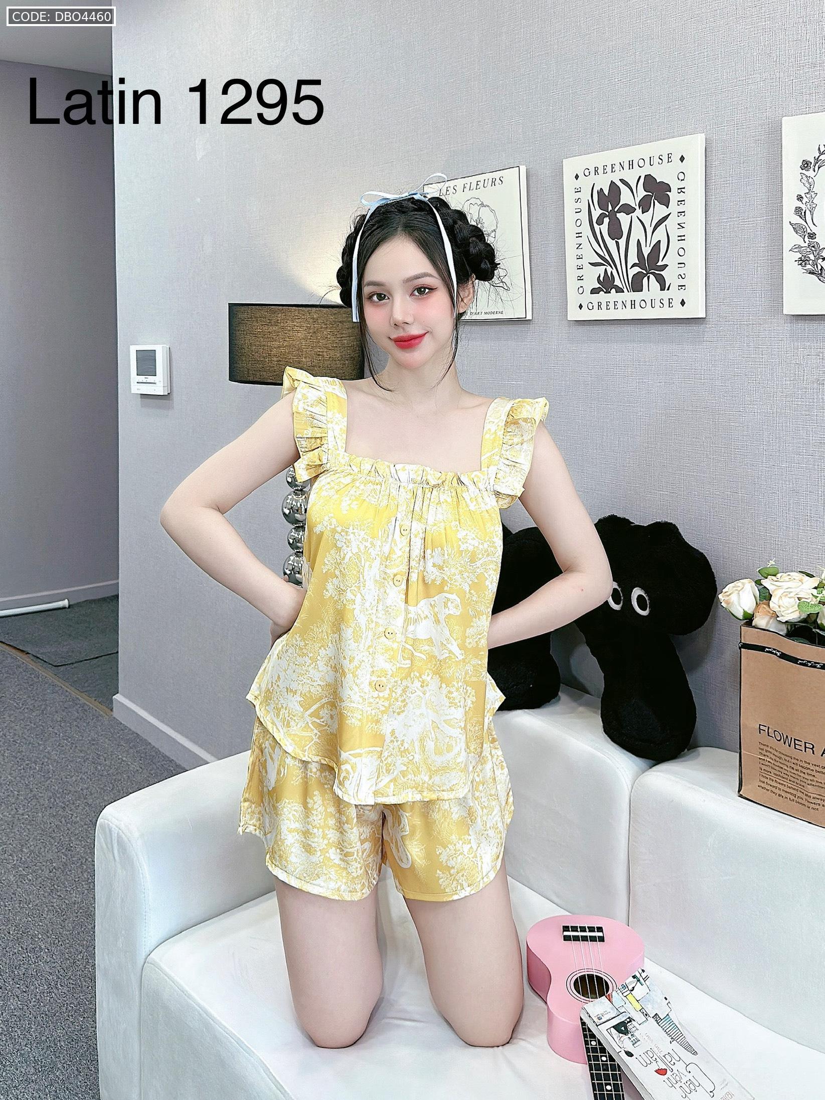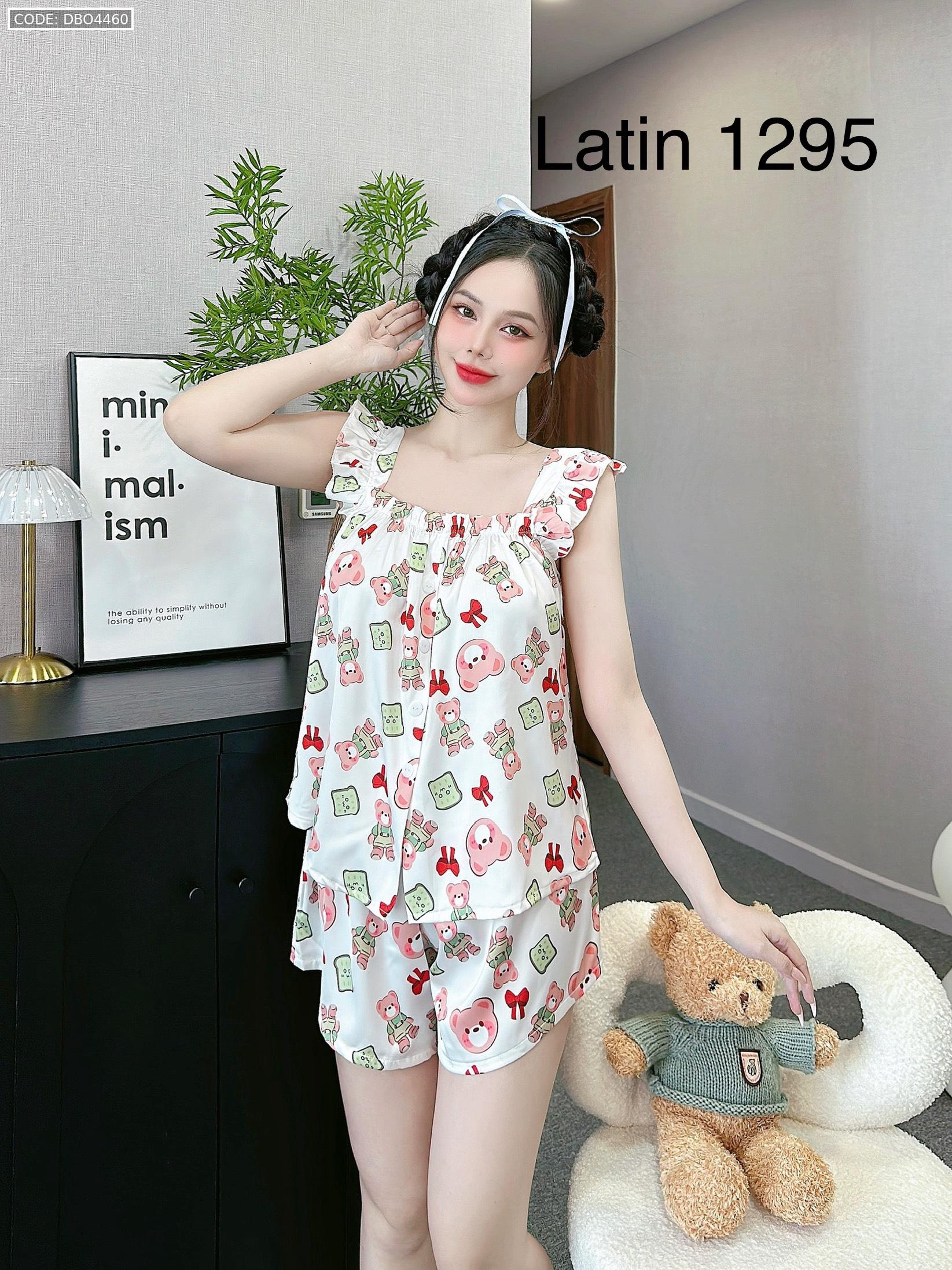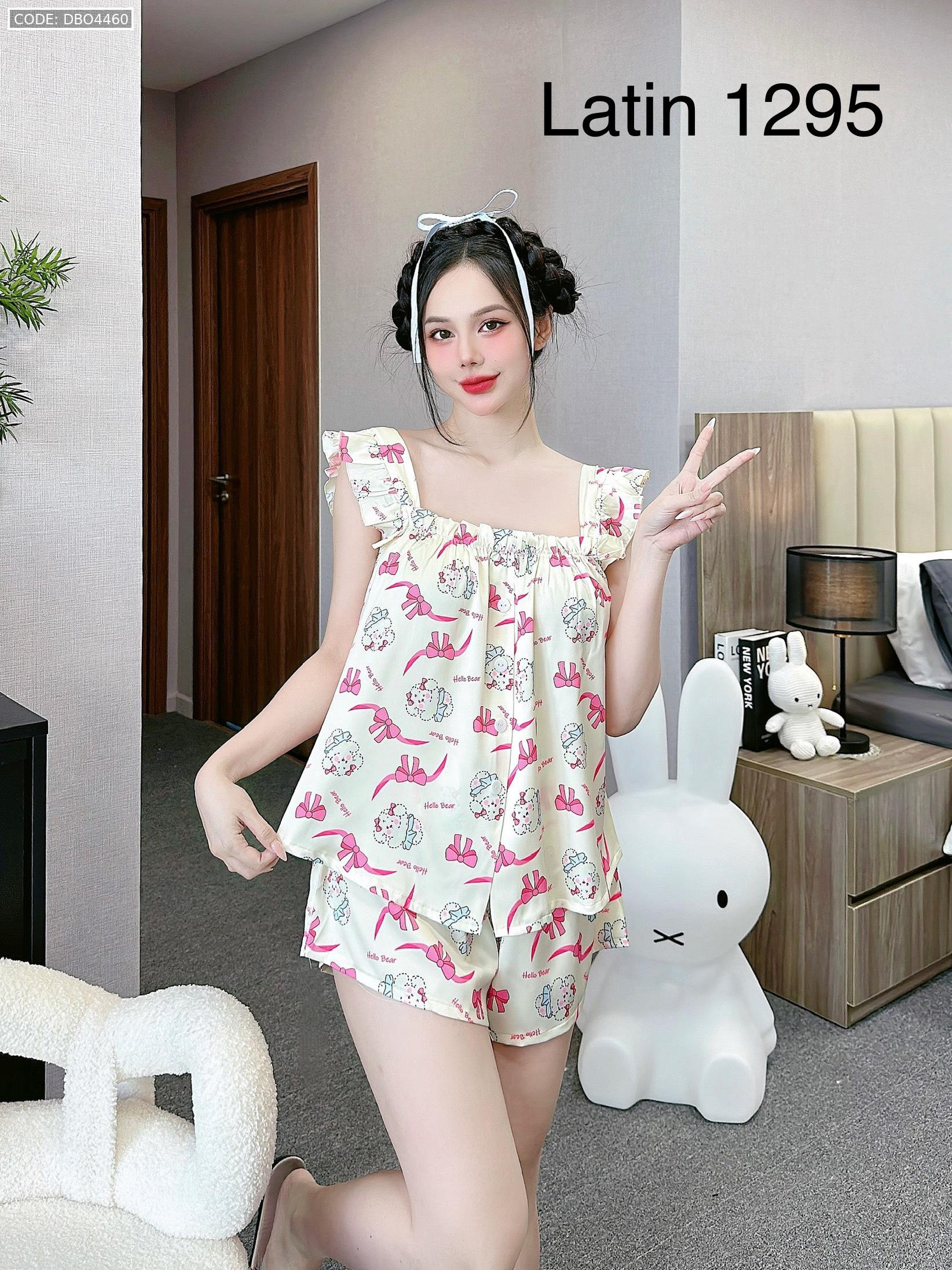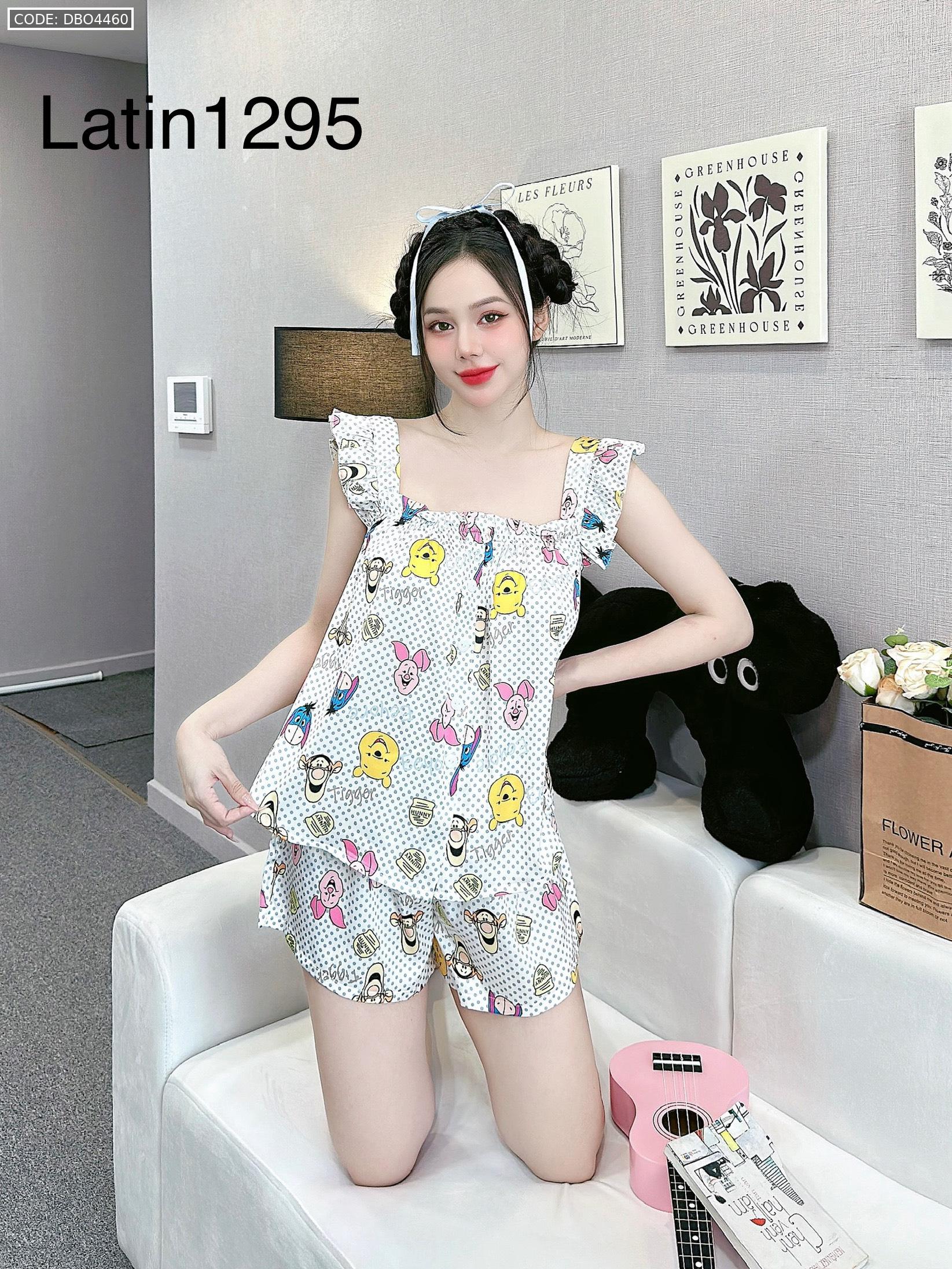 Đồ bộ mặc nhà quần đùi latin áo hai dây bèo in hình dể thương