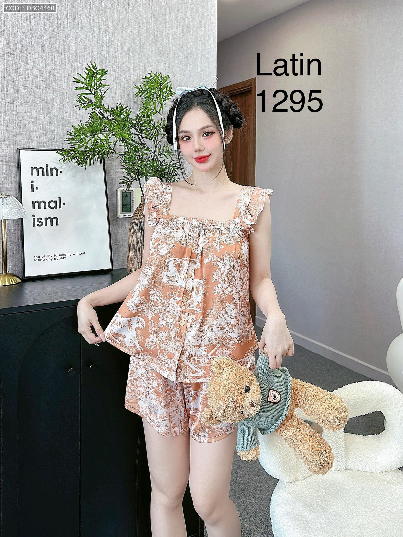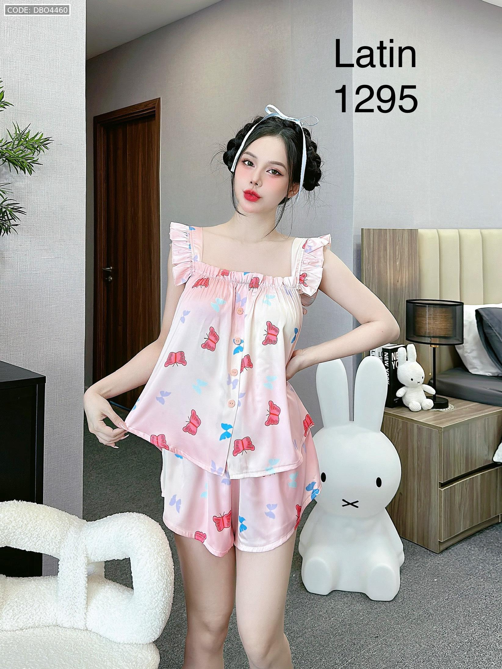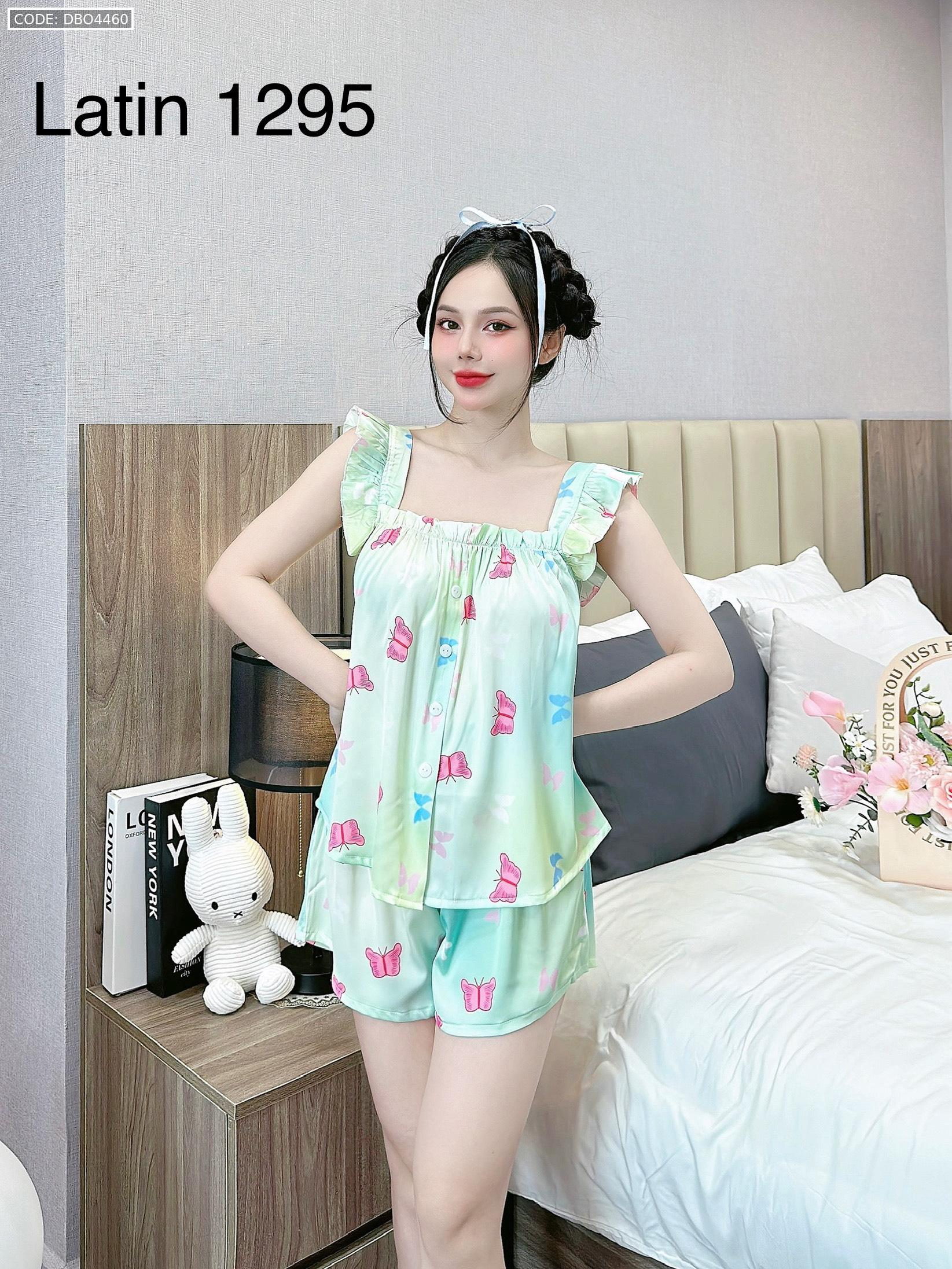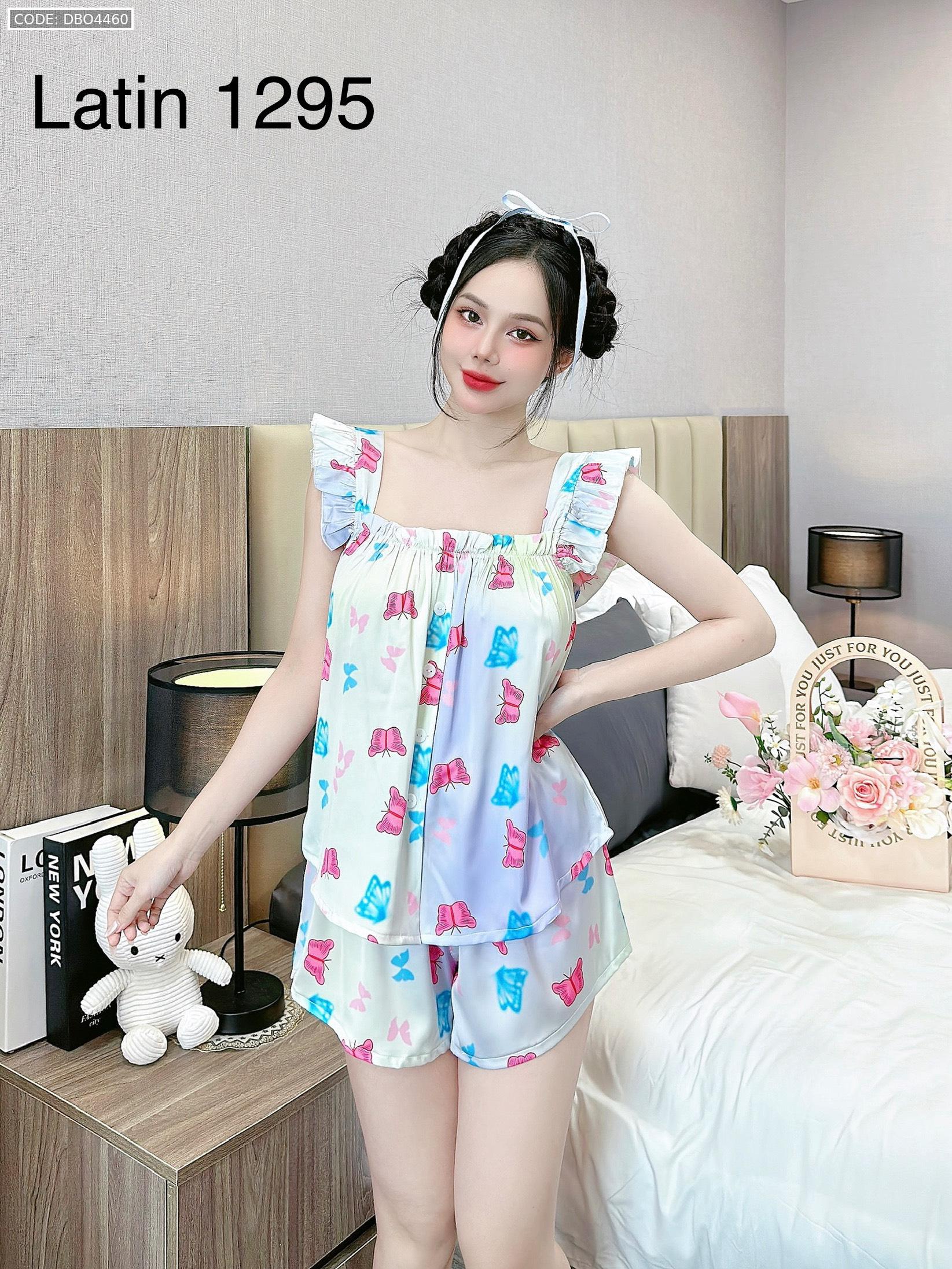 Đồ bộ mặc nhà quần đùi latin áo hai dây bèo in hình dể thương