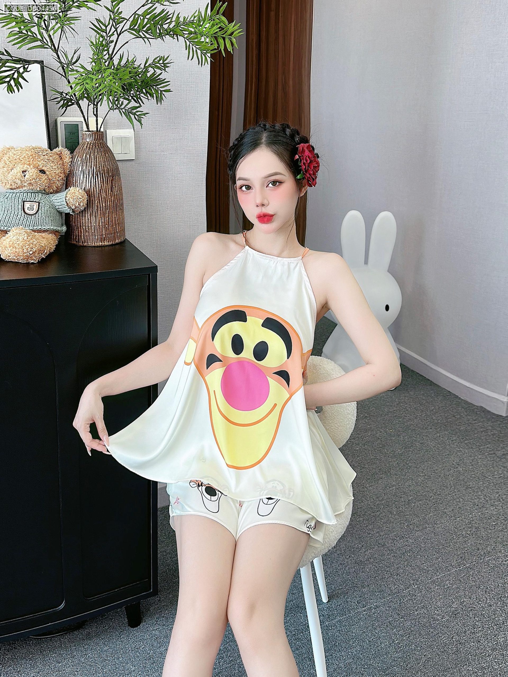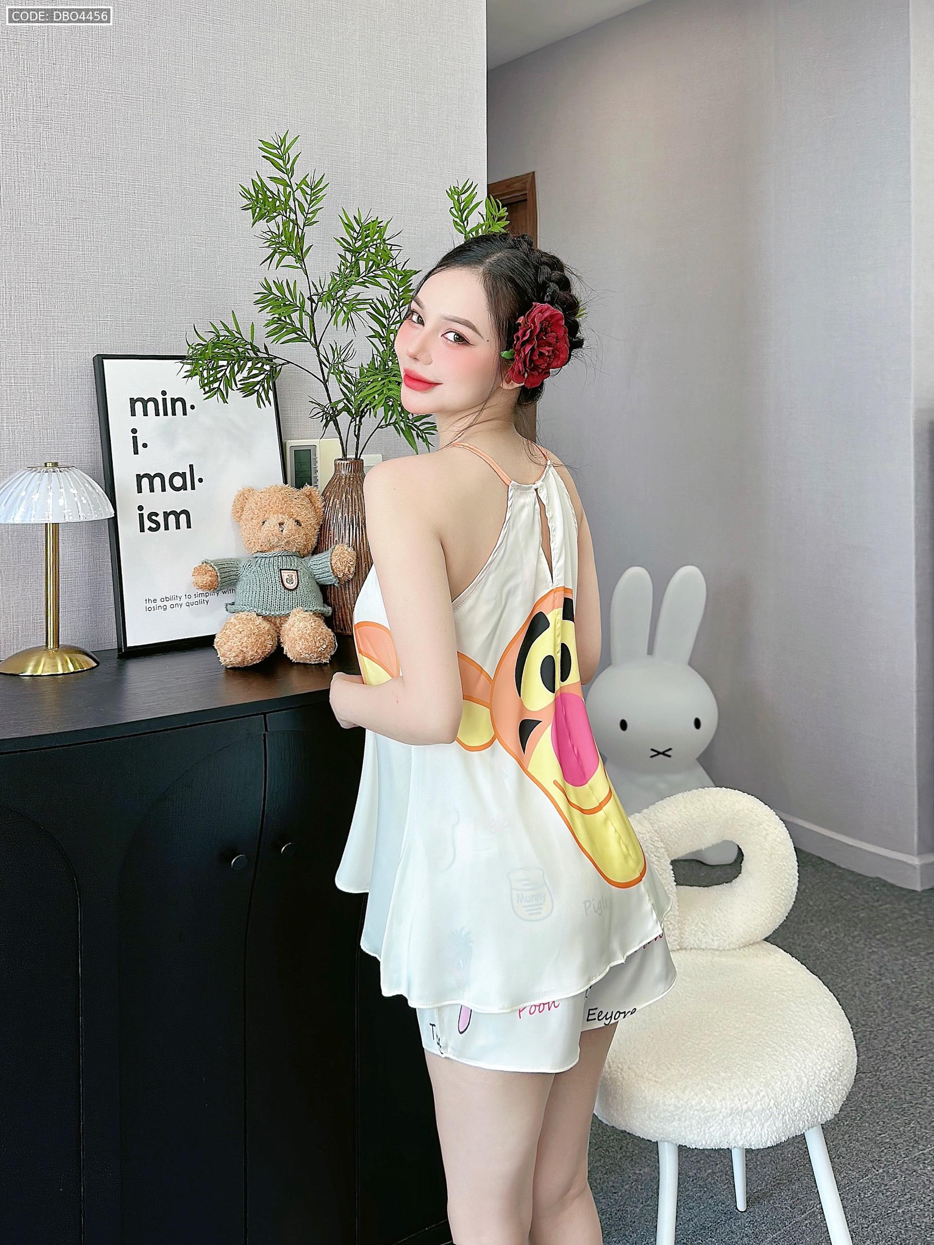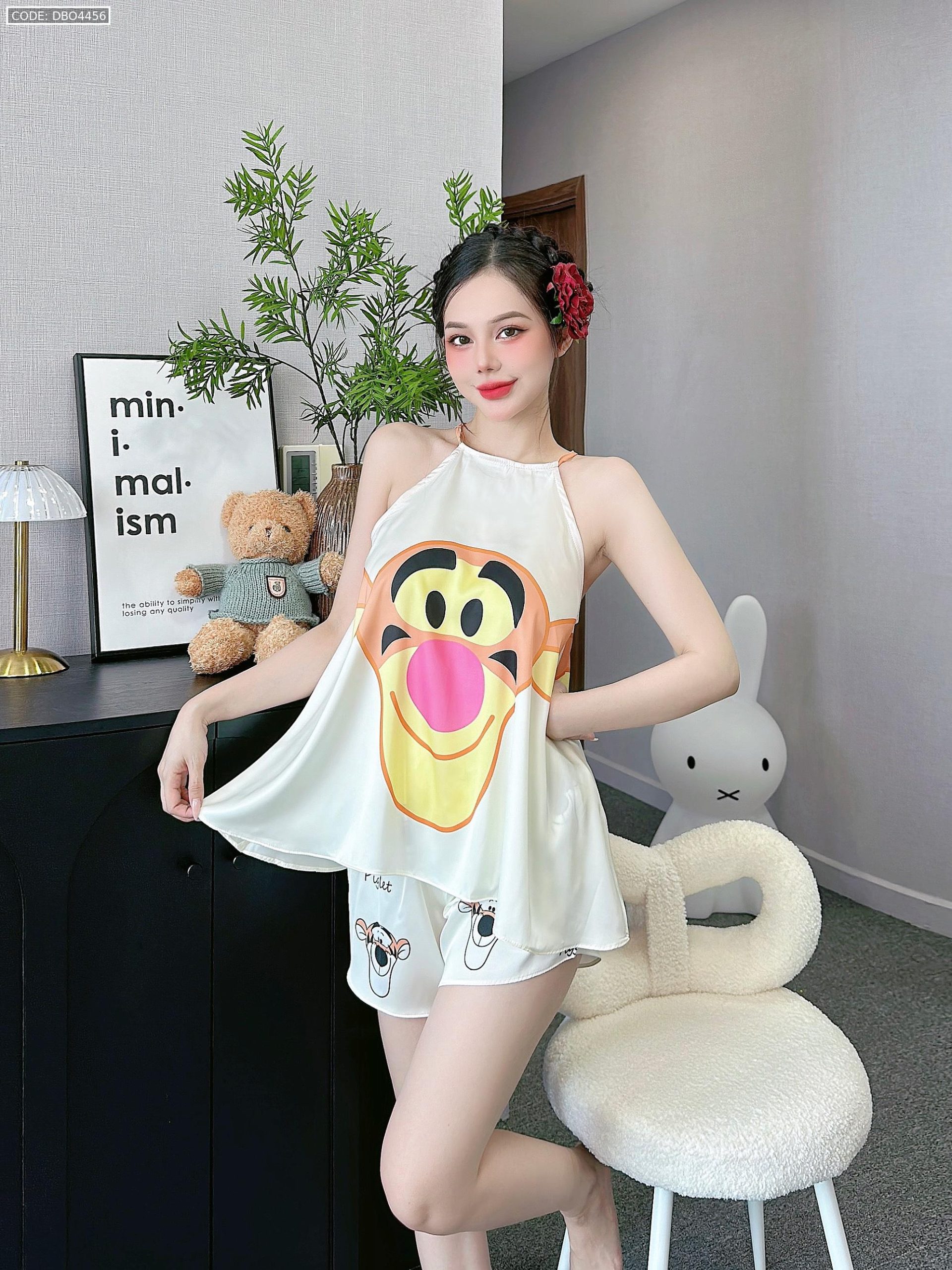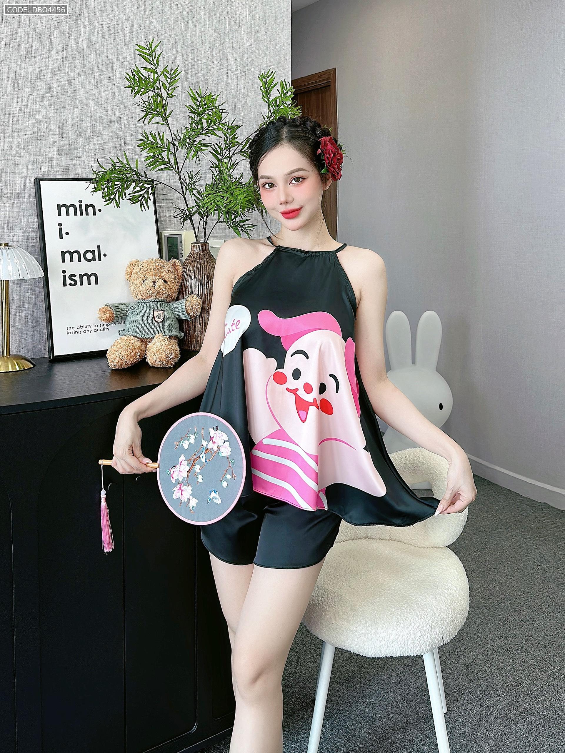 Đồ bộ mặc nhà siêu mát quần đùi latin áo yếm in hình